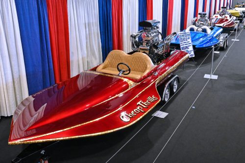 Inside the 2026 Grand National Roadster Show, the thunder didn’t stop at the hot rods. Tucked among the country’s finest customs and street machines was a killer lineup of vintage ski hydros, circle boats, and heirloom river runners that brought serious waterborne attitude to the show floor. Blown big-blocks, hand-laid