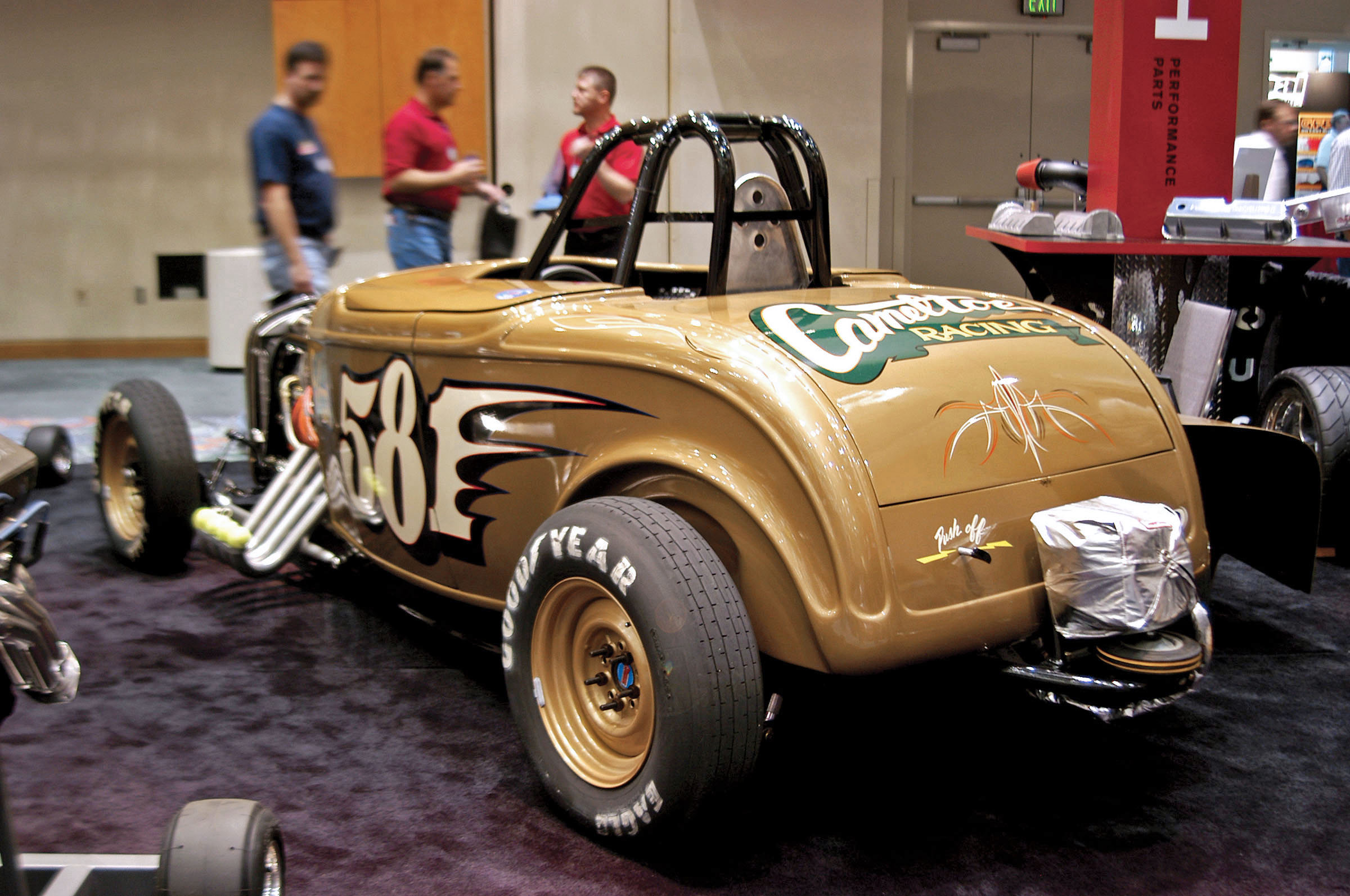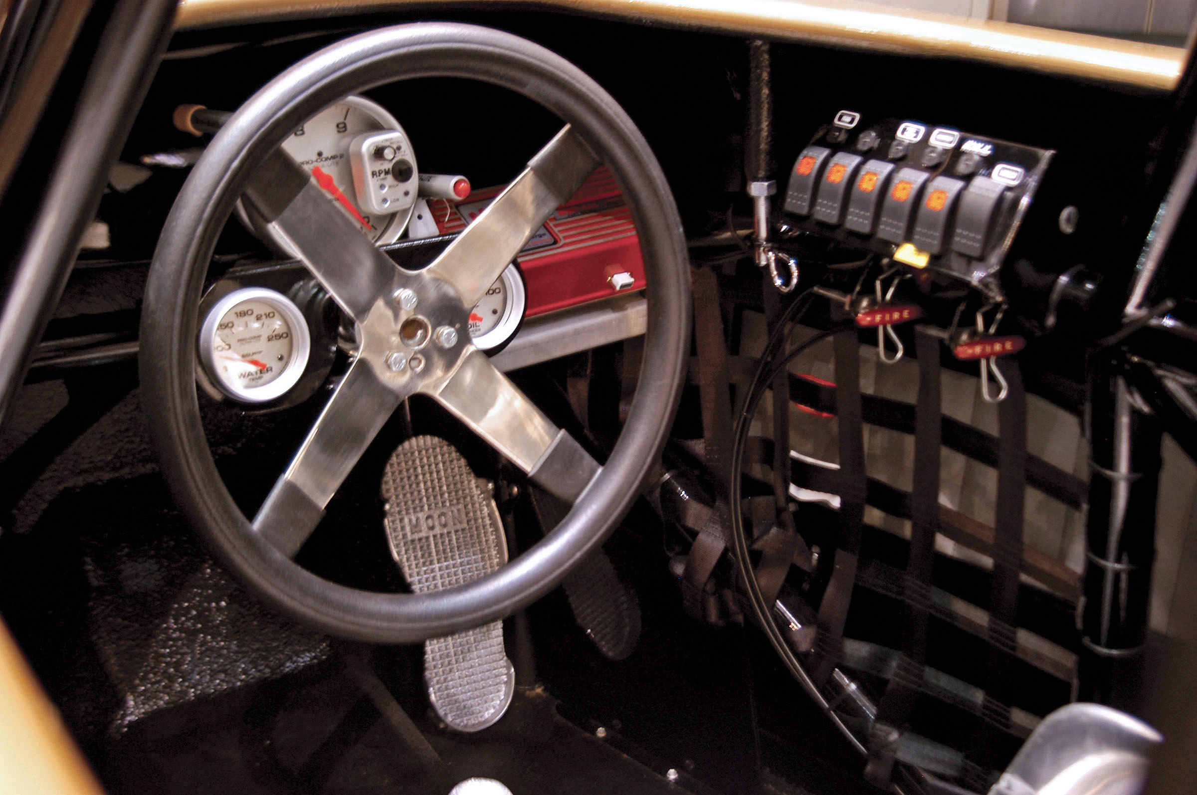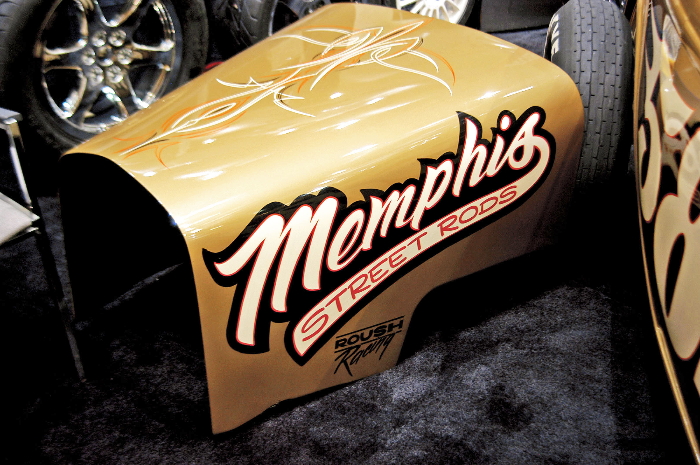 Poteet had expert stripper Josh Shaw hand-letter the graphics over the gold paint. In the finest old-school tradition, Shaw applied signage that included the car number, the class designation, the Camel Toe Racing Team logo and Poteet’s home club, Memphis Street Rods. In this day and age of computer graphics, Shaw’s work is a throwback to the good old days.