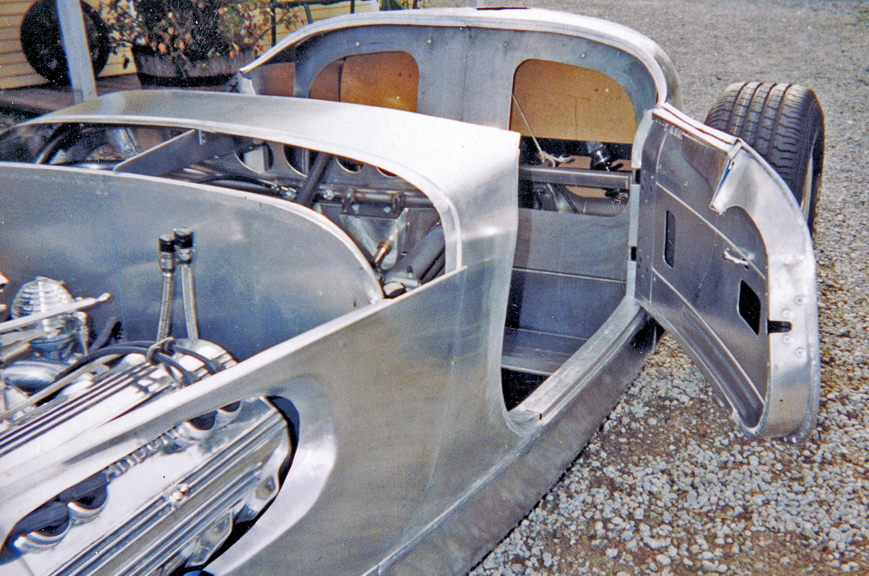 The first segment to take shape was the firewall, which was formed from 5052 H-14 aluminum 0.063-thick. This was located between the transmission adapter and the engine using a stanchion constructed of 1-inch round tubing for support. With this in place, the cowl and rocker panels were shaped along with the doorjambs, and it was at this point that Kinney decided the tail buck should be extended slightly. From there, the sleek tail design began coming together, with considerable care taken to keep the lines flowing, still more proof of Kinney’s considerable skills.