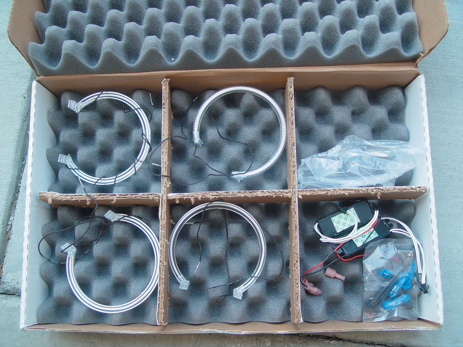Now, enterprising builders may be wondering how to install a set of these cool-looking units in a non-BMW. If you are able to modify your front headlight buckets and fender surrounds to accommodate these very trick lights, you can get this wicked BMW look on any vehicle. Angel Eye kits are also available for several other models of BMW, Lexus and Volvo. HCI