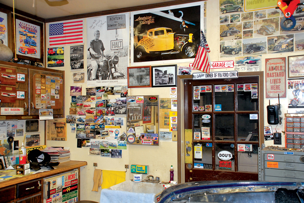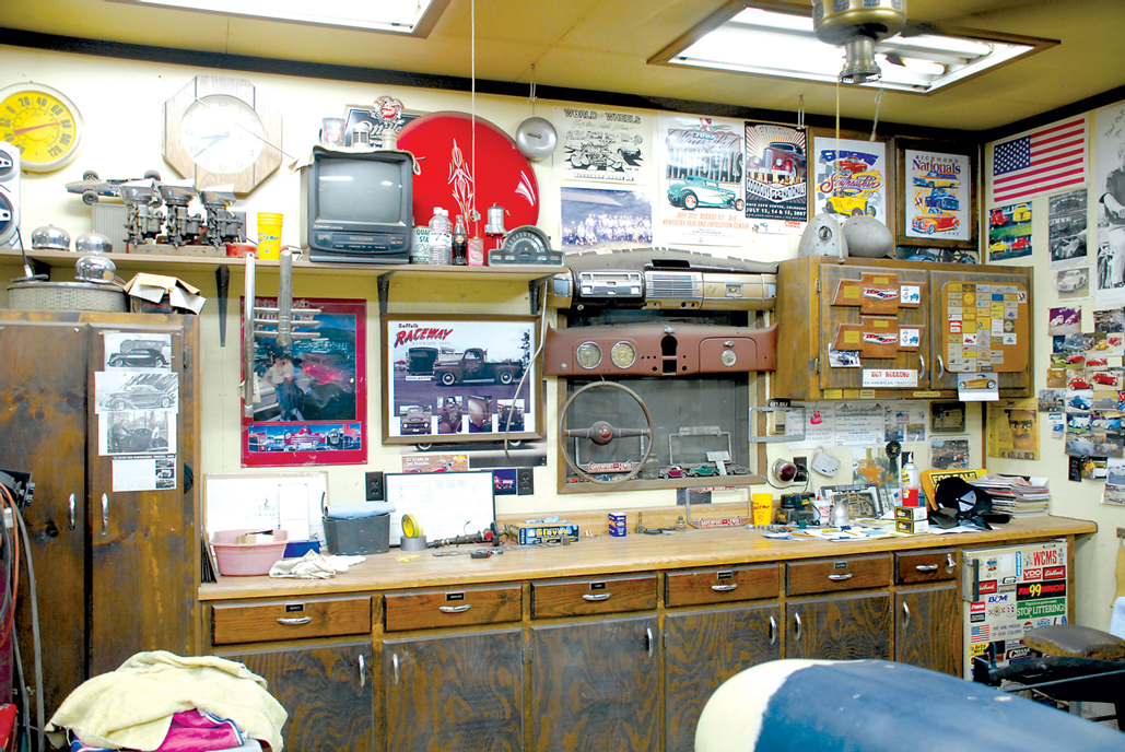 Until he gets his own project going, there’s a Ford woody in the shop that belongs to Steve Fink, and Bobby is helping out by installing a Fat Man Fabrications front clip and a new rearend with disc brakes all around. Like we said, there always seems to be something going on in this shop. After the quick tour, we spent some time scouring the photos on the walls and talked about everything from old Fords to starring in a hot rod movie that was never released. Yeah, bench racing at Bobby’s is almost as good as the work done in the shop. Then Big Al rang the bell, “Time’s up boys. Let’s head to the next garage.” And just like that, we were gone.
