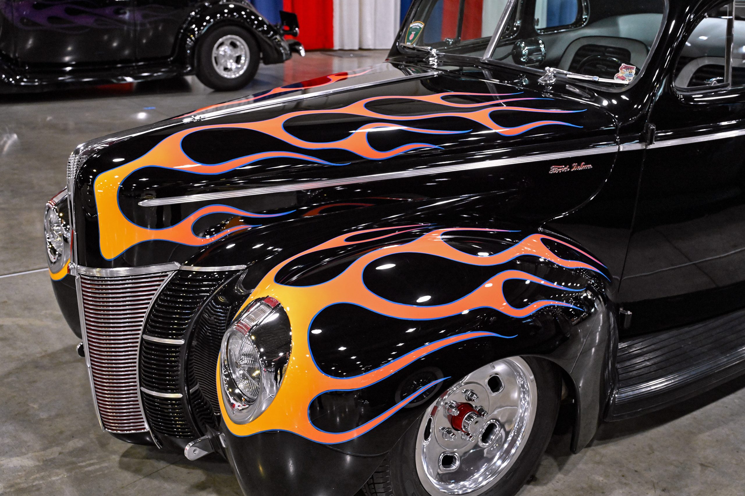 The Feature Building brought together the largest collection of 1935–1948 fat-fender cars and trucks ever seen under one roof. Highlights popped off the floor: the “Project 40” 1940 Ford Sedan, “Big John” Mazmanian’s 1940 Willys Gasser, John D’Agostino’s 1940 Merc Kustom “Stardust,” and jaw-dropping builds from legends like Chip Foose, Boyd Coddington, and Gene Winfield. Some were street-ready beasts primed to roar, while others were immaculate showpieces meant to stun. Every car carried the fat-fendered DNA — precision, craftsmanship, and the kind of hot rod swagger you can’t fake.
