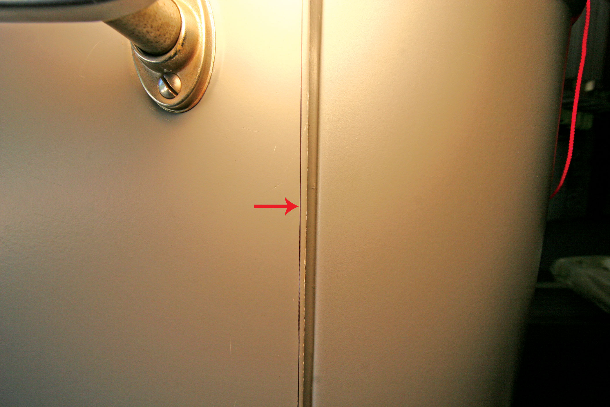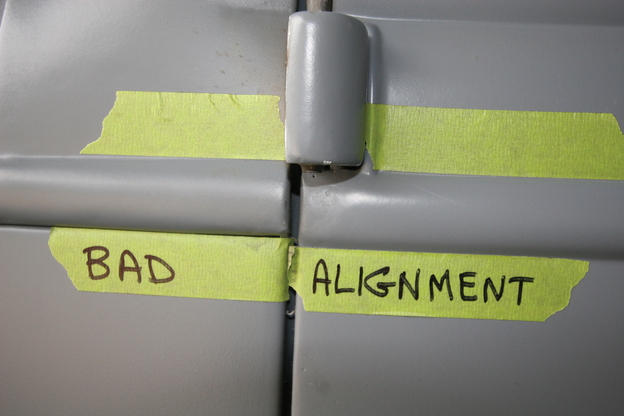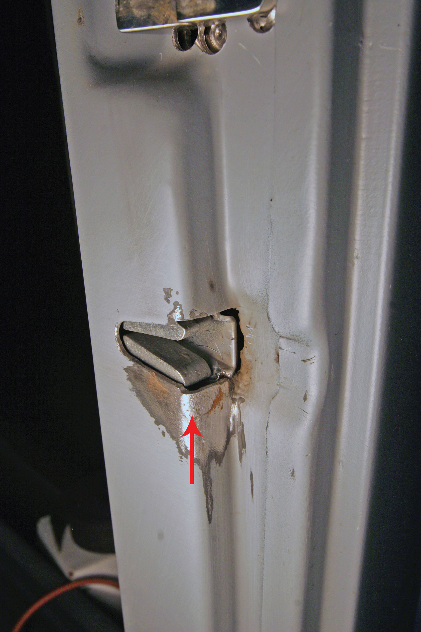 Now that we have aligned the door as closely as the tolerances will allow, we can remove it and start making our improvements. Judging by the dip where it previously buckled, it is obvious that the door will need strengthening in this area.