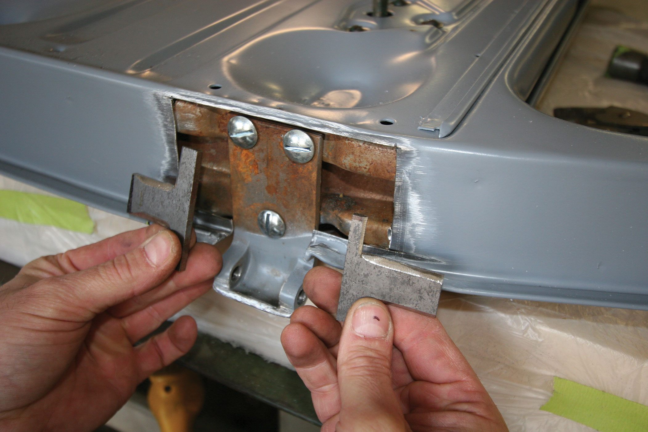 Typical of a ’30s pickup, the door-to-cab gap is wide at the top and narrow at the bottom, with only 5/32 inch of clearance. Whether you’re building a truck with hidden hinges or the original units, the idea is to make the new gaps permanent, so extra care was taken to strengthen the hinge plates and doorposts.