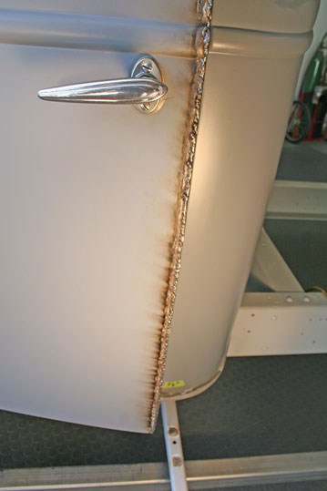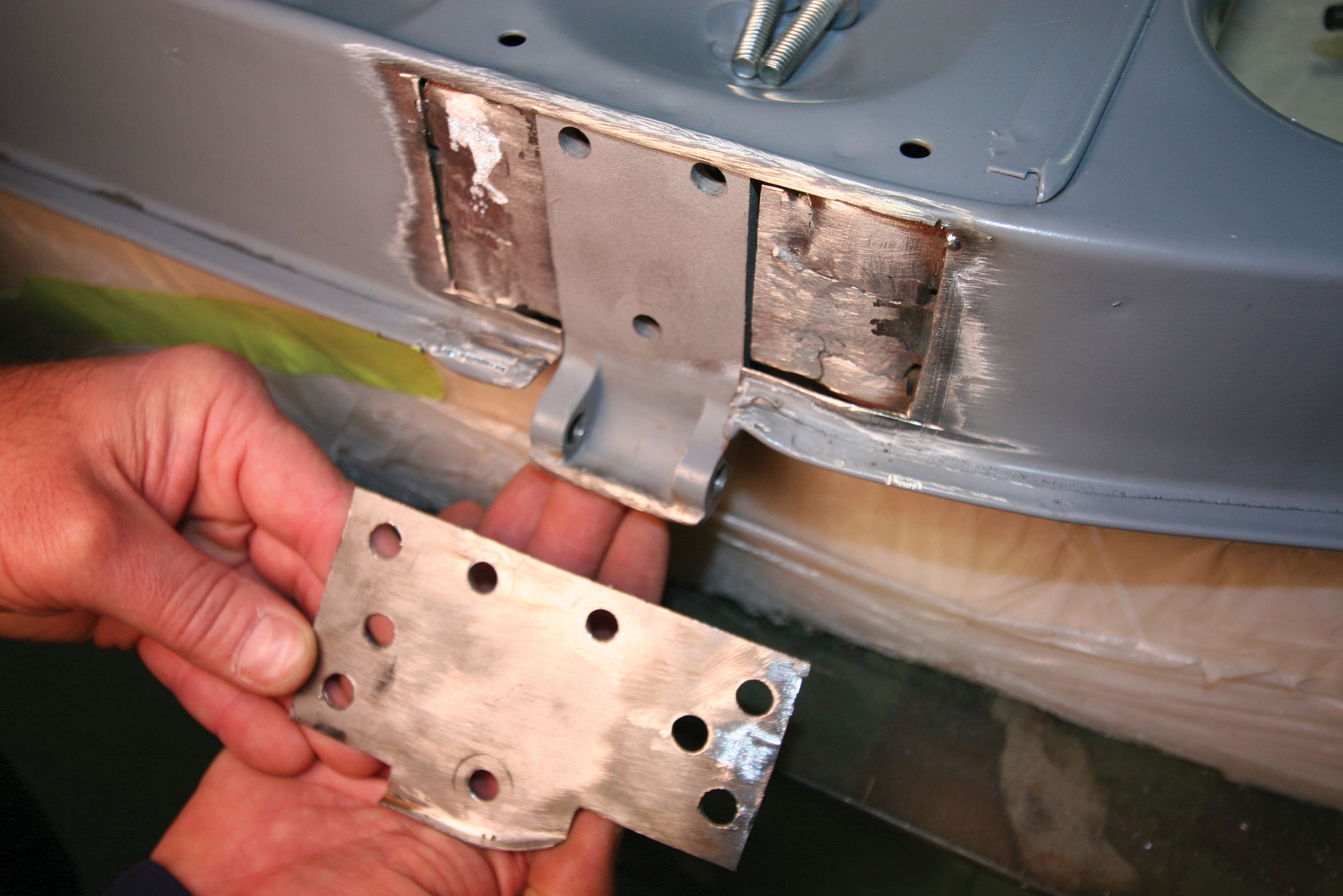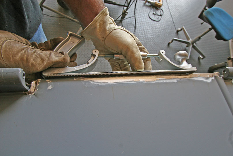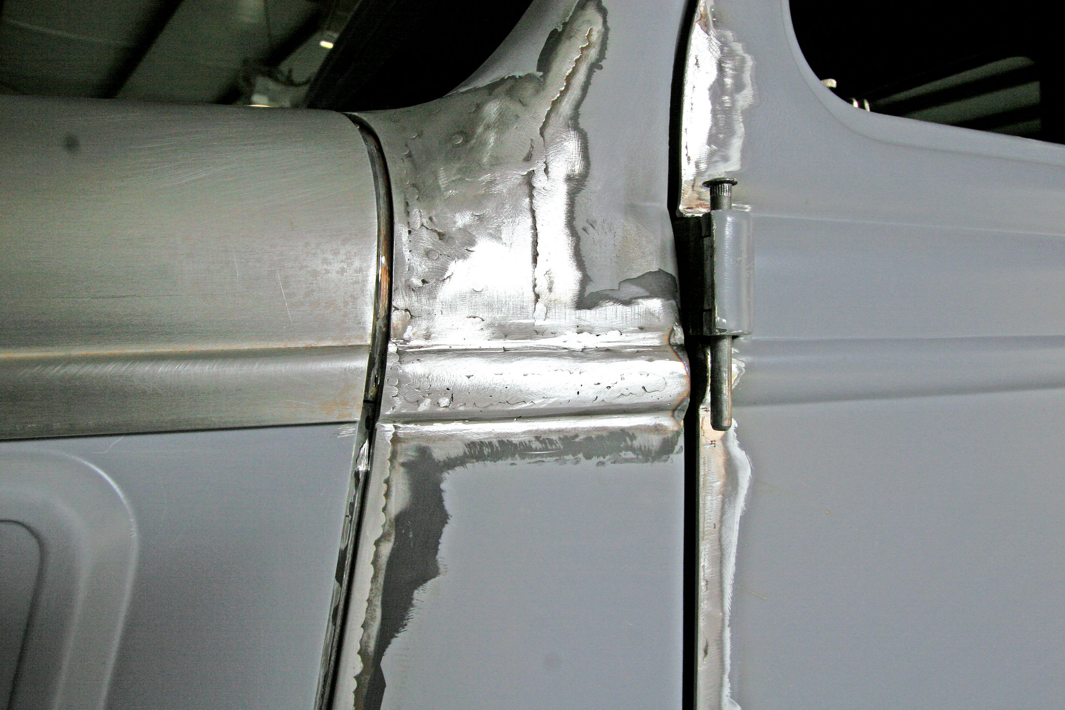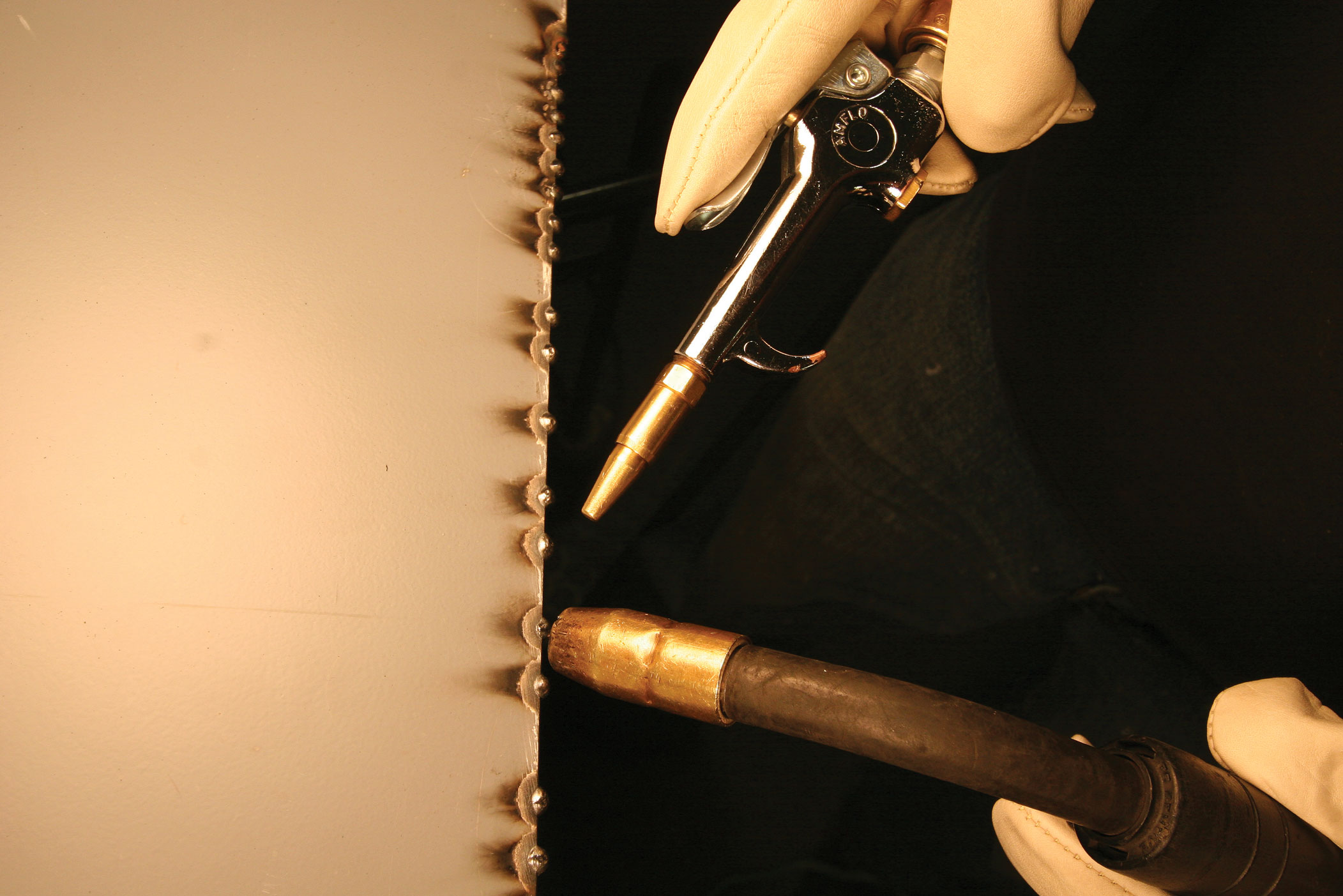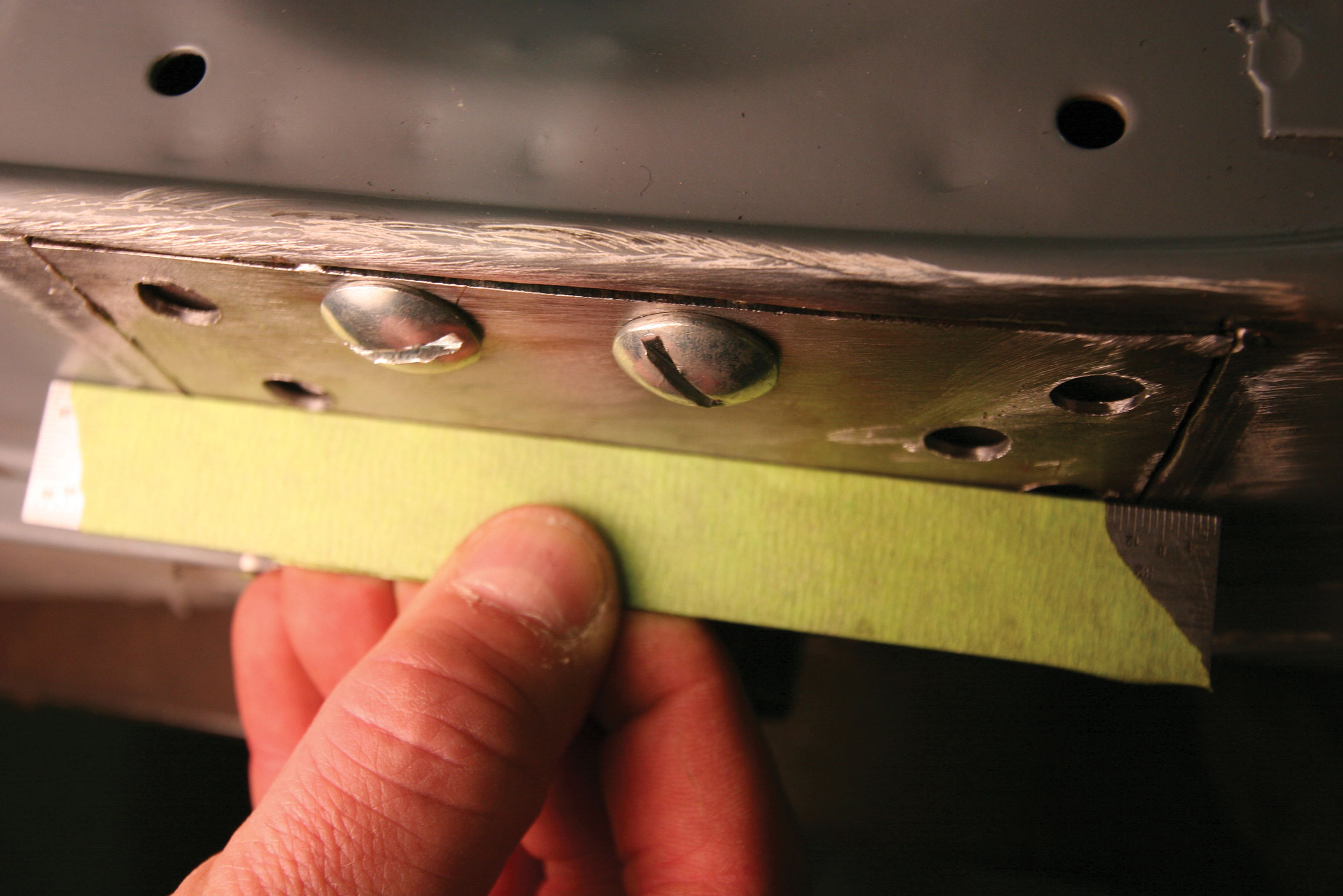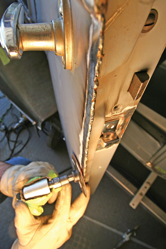 We clamped the door skin very lightly to prevent a change in shape and welded in 1-inch increments. The welding should be done a little at a time to prevent warping and a cause for more bodywork.