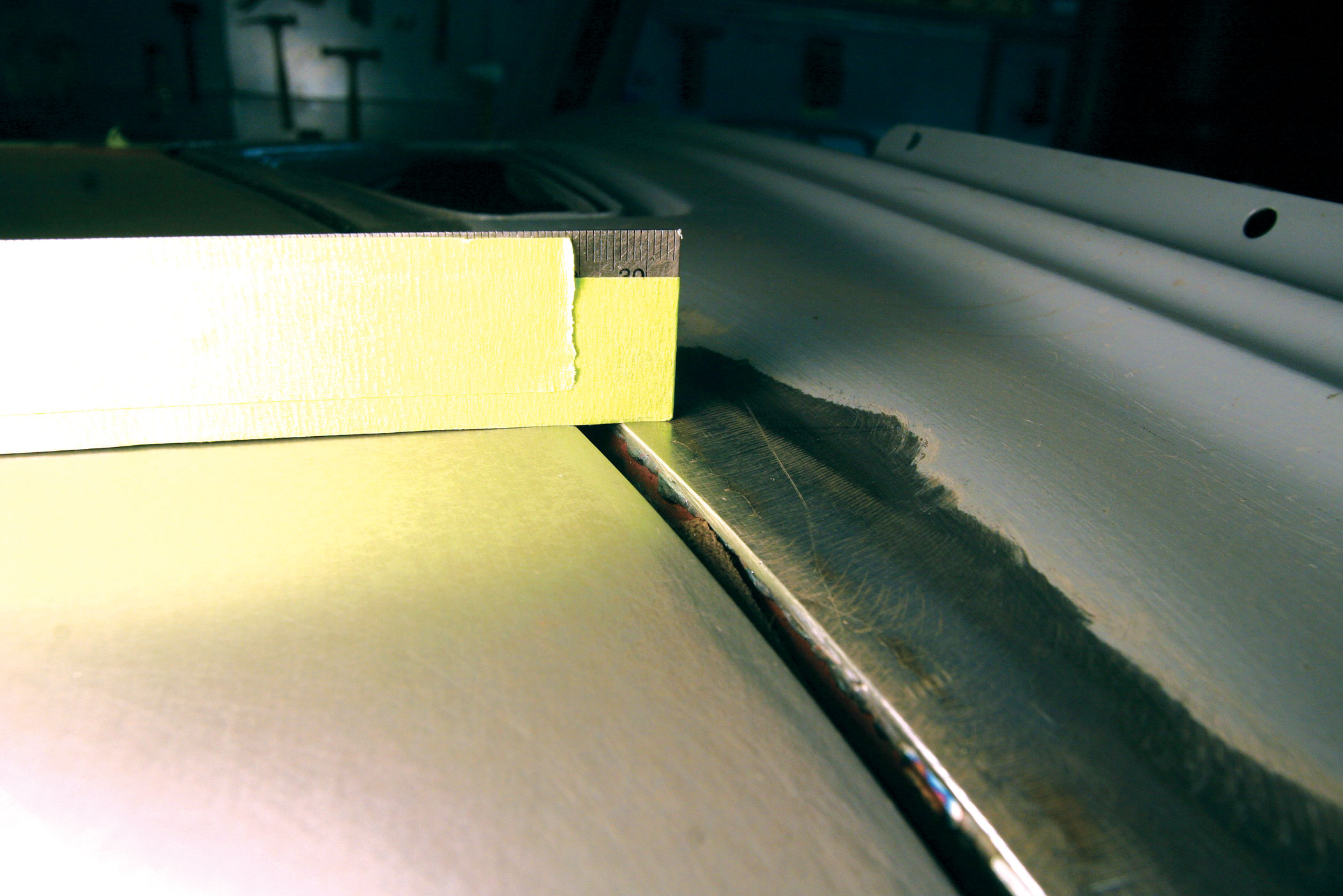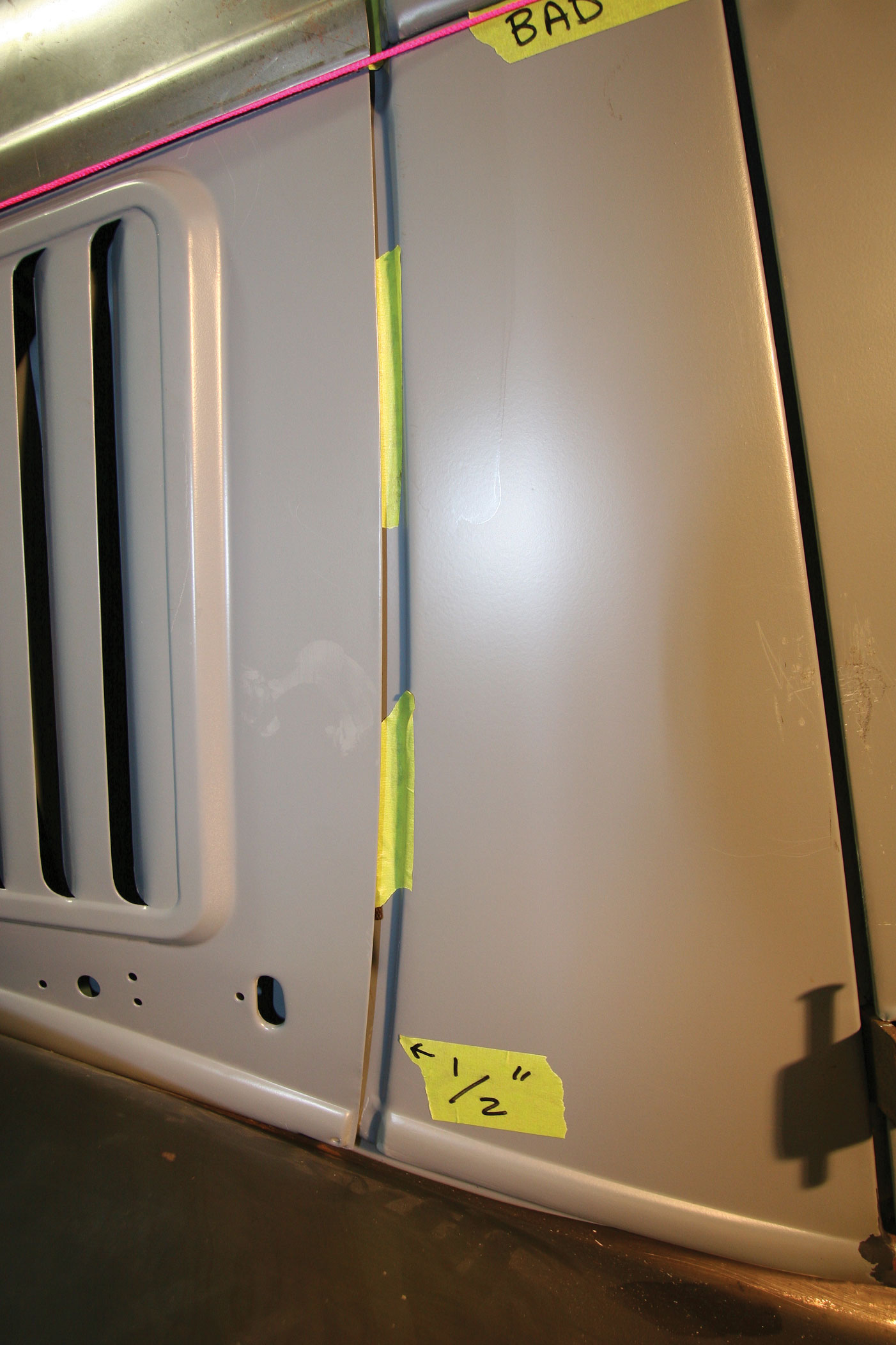 An easy way to reveal a bad alignment is to stretch tape along the top and bottom of the beltline. Obviously, the panels do not align properly, but we’re saving this one for later and moving on to other portions of the pickup.