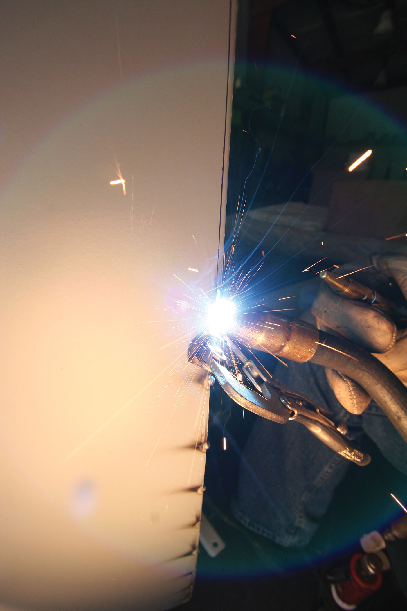 After the metal cools, we can continue to weld, but it should only be small tack welds. We can’t take a chance on warping this door, so great care was taken to keep it cool. We used an air blower to cool the welds, and we advise that you do the same.