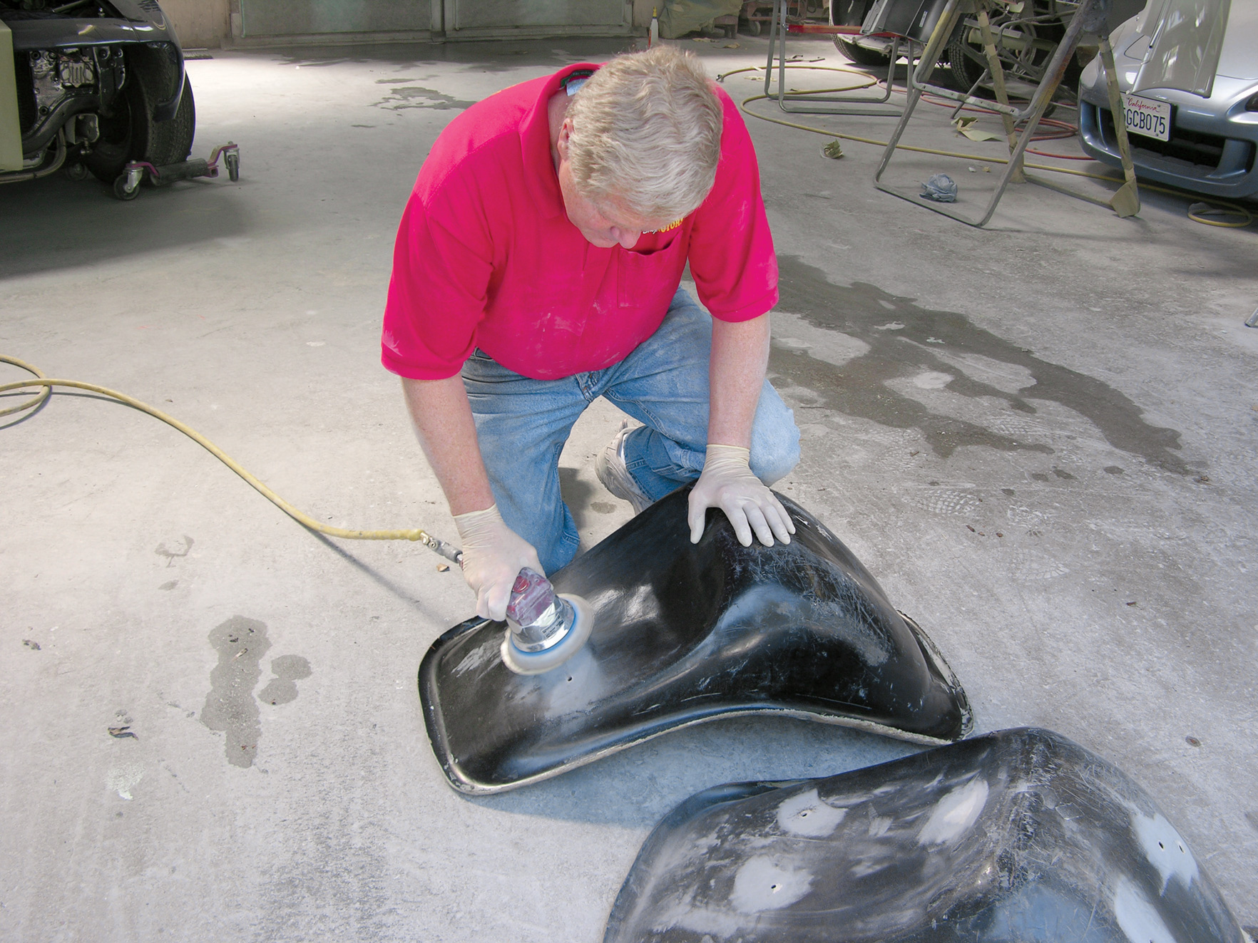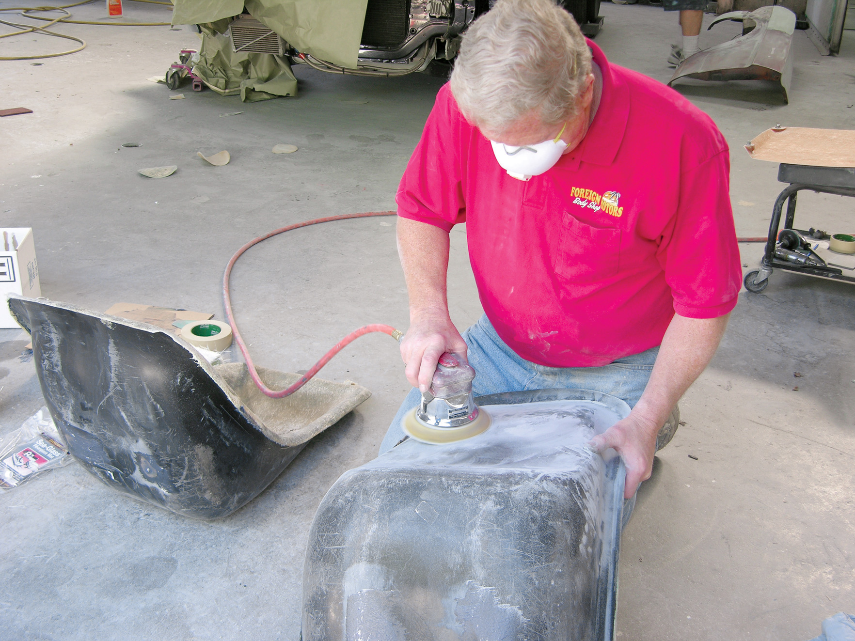 Once the seats were cleaned up, they didn’t look too bad. We asked the guys at our local auto body supply store to recommend a fiberglass expert. They referred us to Dennis Rummens at Foreign Motors in Temple City, California. Rummens has been working with fiberglass for over 30 years. In fact, he was restoring the body of a ’57 fuelie Corvette factory racecar (one of approximately 45 built) when we arrived.