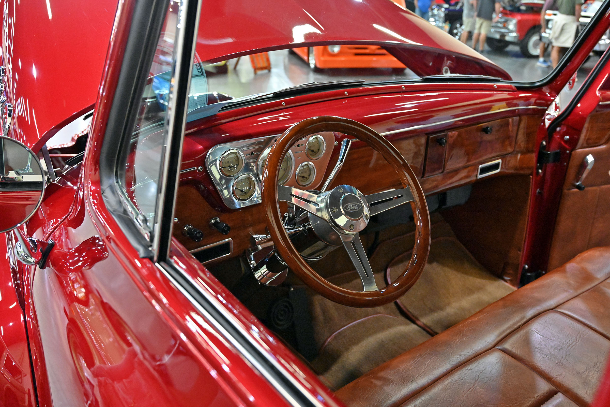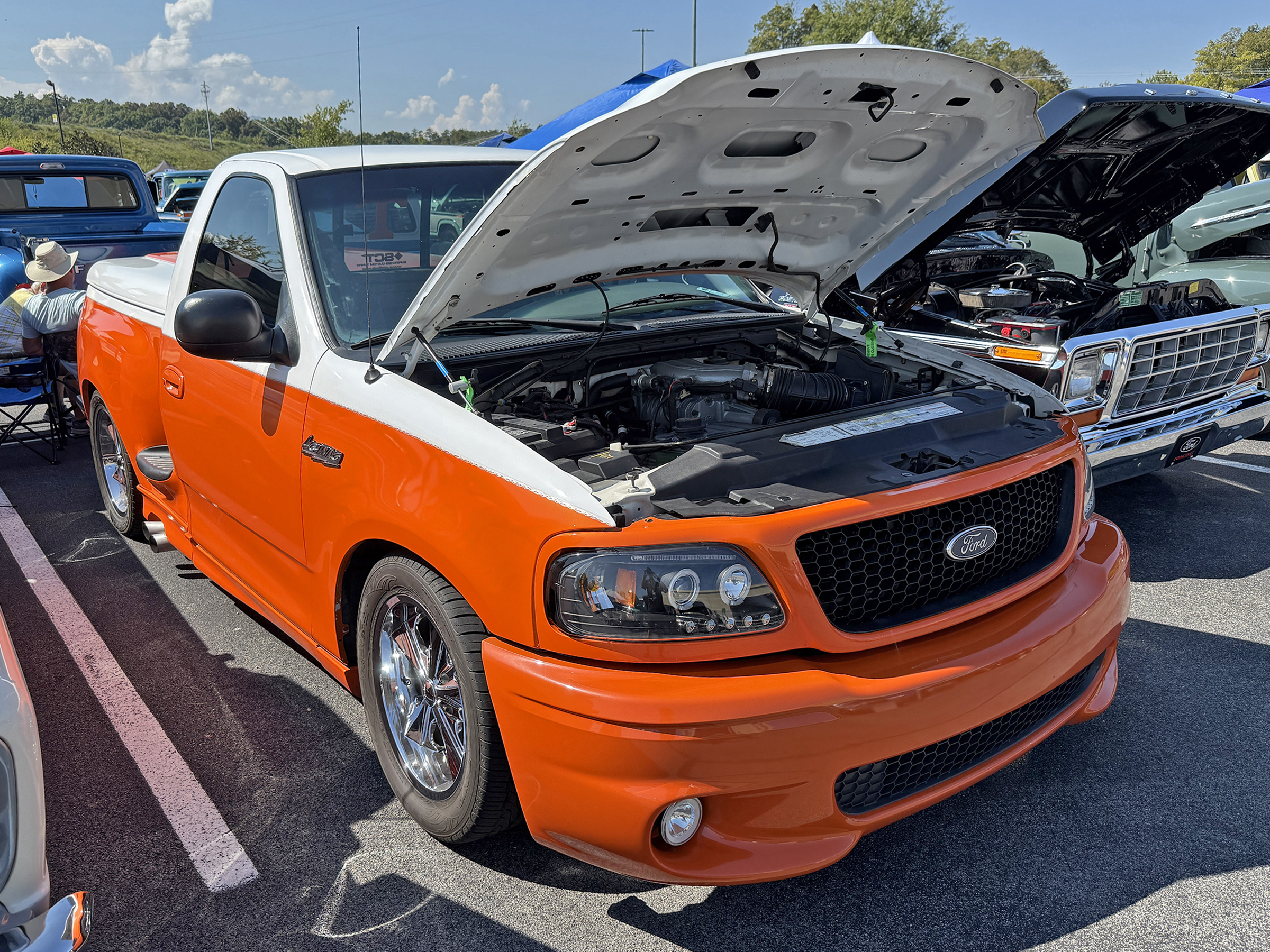 But the real chaos of the Supernationals lives outside—hundreds of Fords under the Smoky Mountain sky, stretching row after row with every generation represented. It’s part open-air museum, part rolling car corral, with patina’d workhorses parked beside flawless restorations and wild customs. Add in the swap meet buzzing with parts hunters and project dreamers, and the outdoor lot becomes the beating heart of the show.