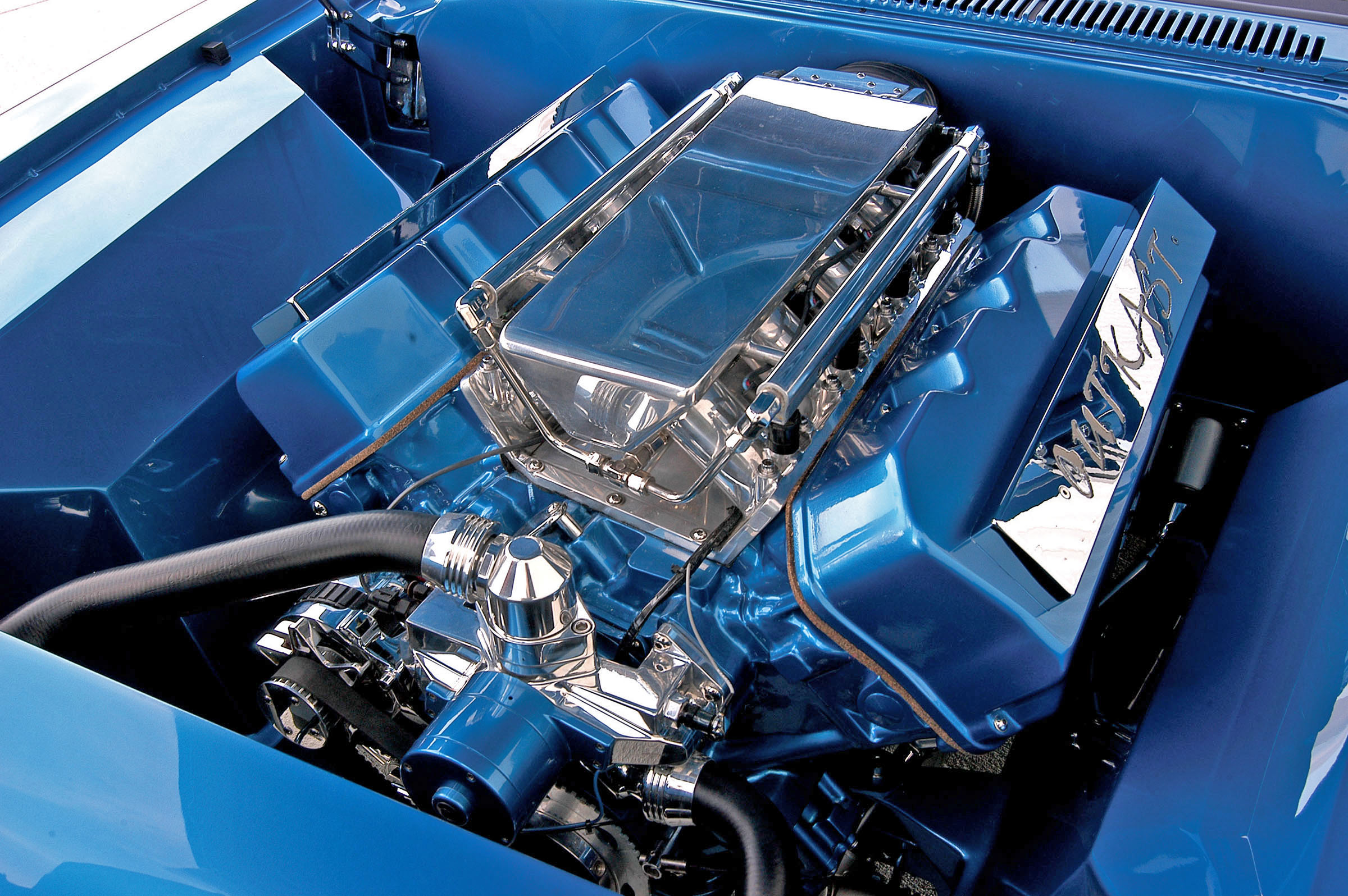 Motivation for this Plymouth comes from a 426ci Hemi. Buzzello had the Hemi at his shop and thought there was no better place to use it, so he chose Ostrich Racing Engines in Nevada, Iowa, to refresh the Hemi with all-new parts. A 10.5:1 compression ratio is created by a set of TRW pistons and rings. Stock heads were used, but a Reed roller cam was installed to move the valves a little more quickly. Induction comes from a one-off intake manifold made by Street & Performance. The air inlet is ducted into the firewall, where it draws in cool air from the factory cowl vent into a custom air box under the dash. Ignition comes from an Electromotive crank-trigger system and features multiple coil packs to produce spark. Sanderson short-tube headers handle the exhaust gases that later travel through Turbo Tube mufflers.