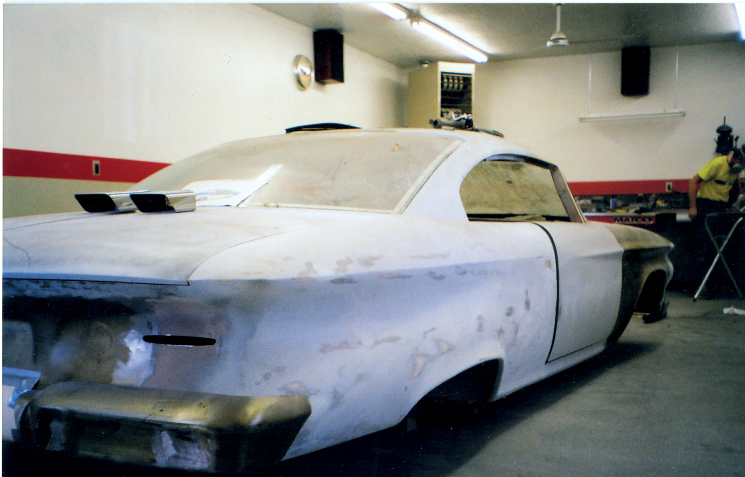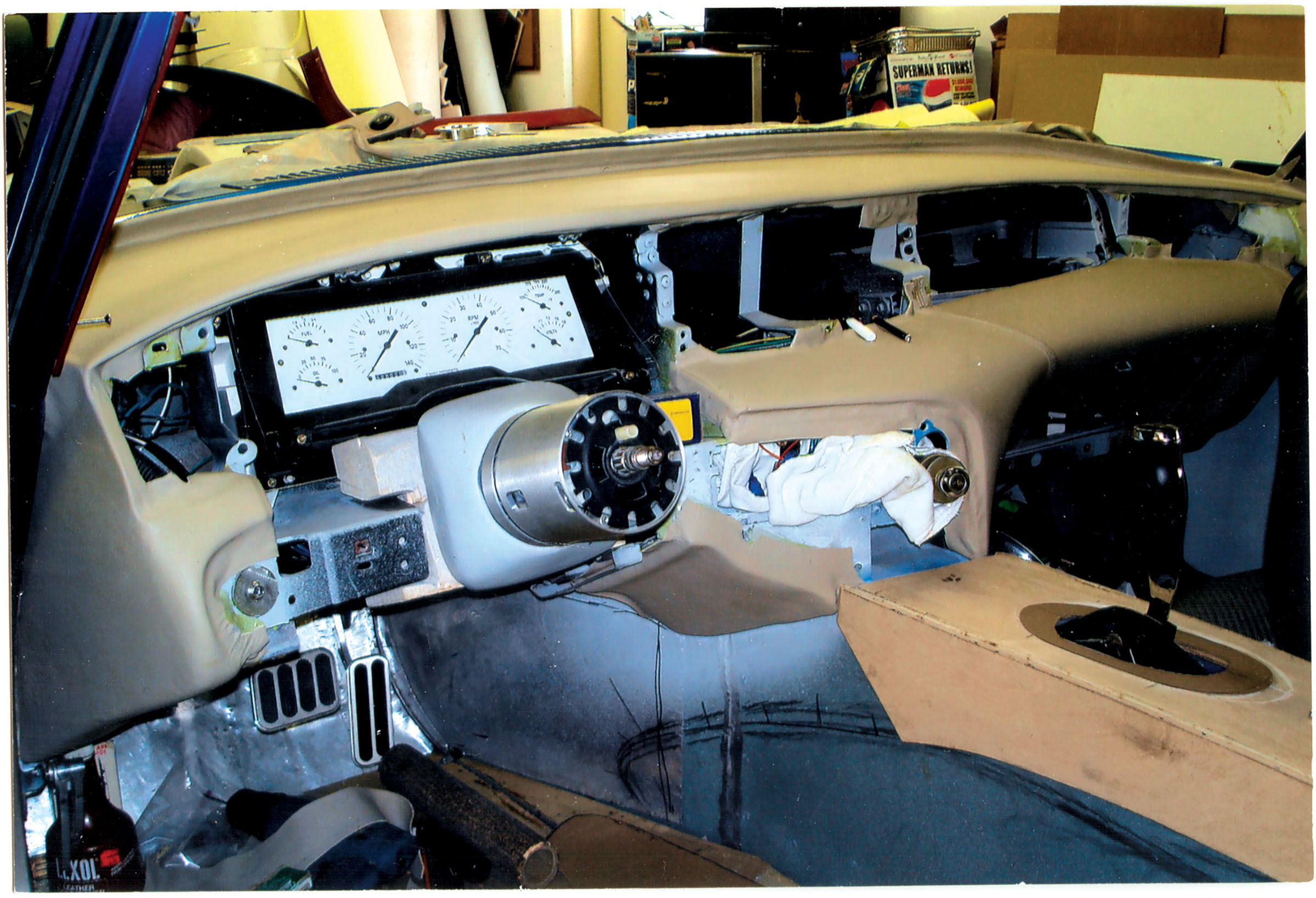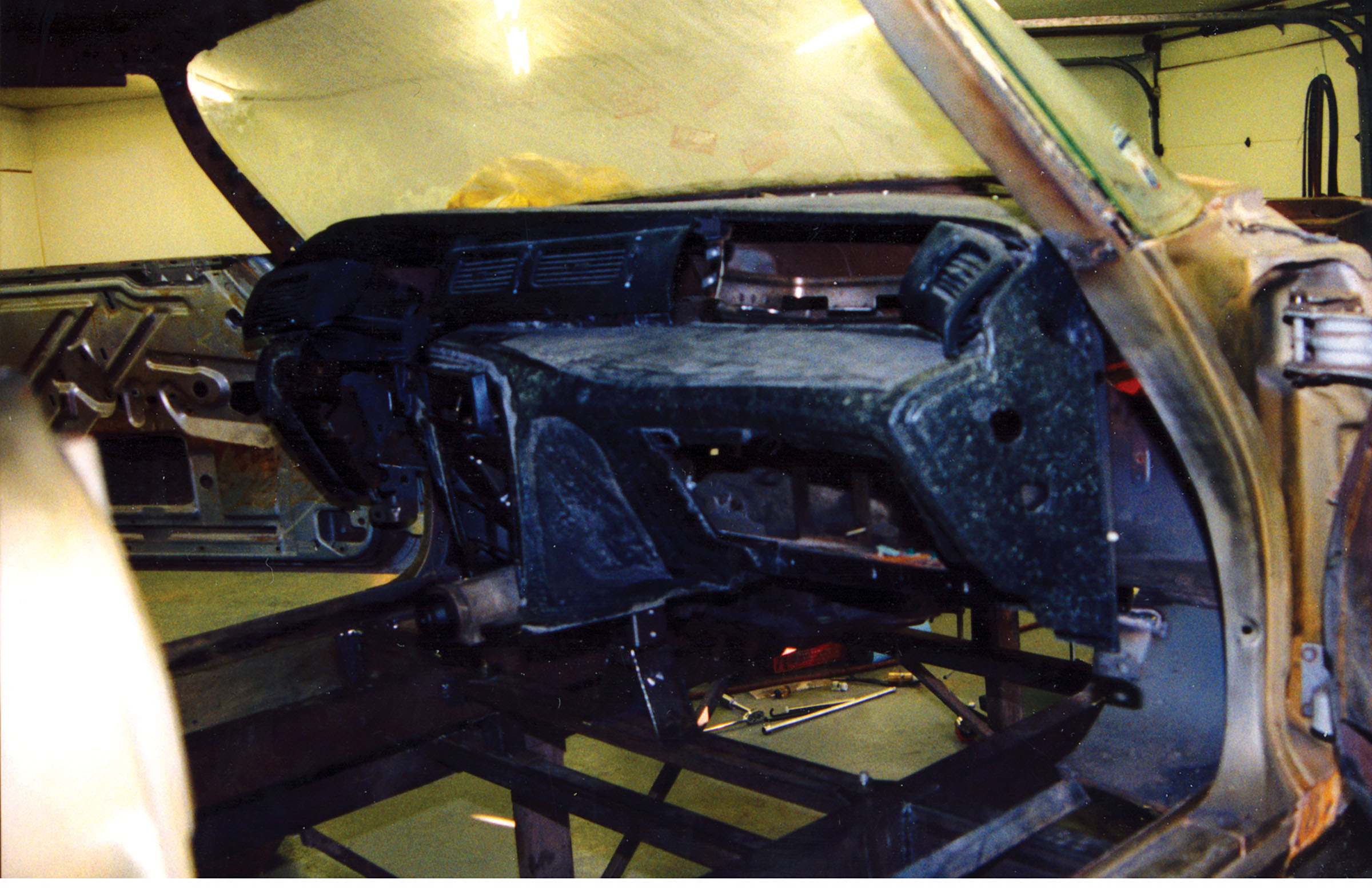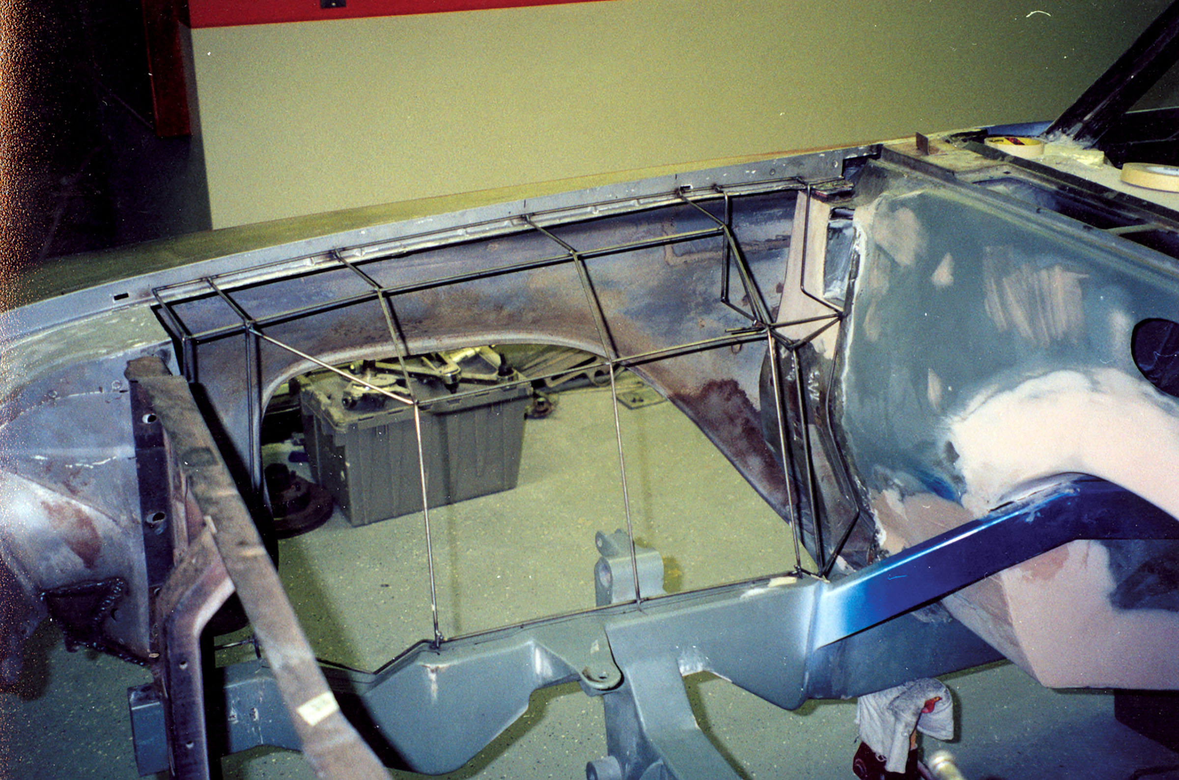 Along with all that metalwork, the guys spent many hours blocking and priming the body to make sure it was straight, with all of its panels properly aligned. All the painting materials and supplies came from Ron Stazzoni and Mike Cole at D&R Auto Paint and Supply. The two-tone design features Ford Festiva Blue on top with Ferrari Champagne on the lower portion. McGrath applied the base/clear paint, which was soon sanded and buffed to a high-quality finish.