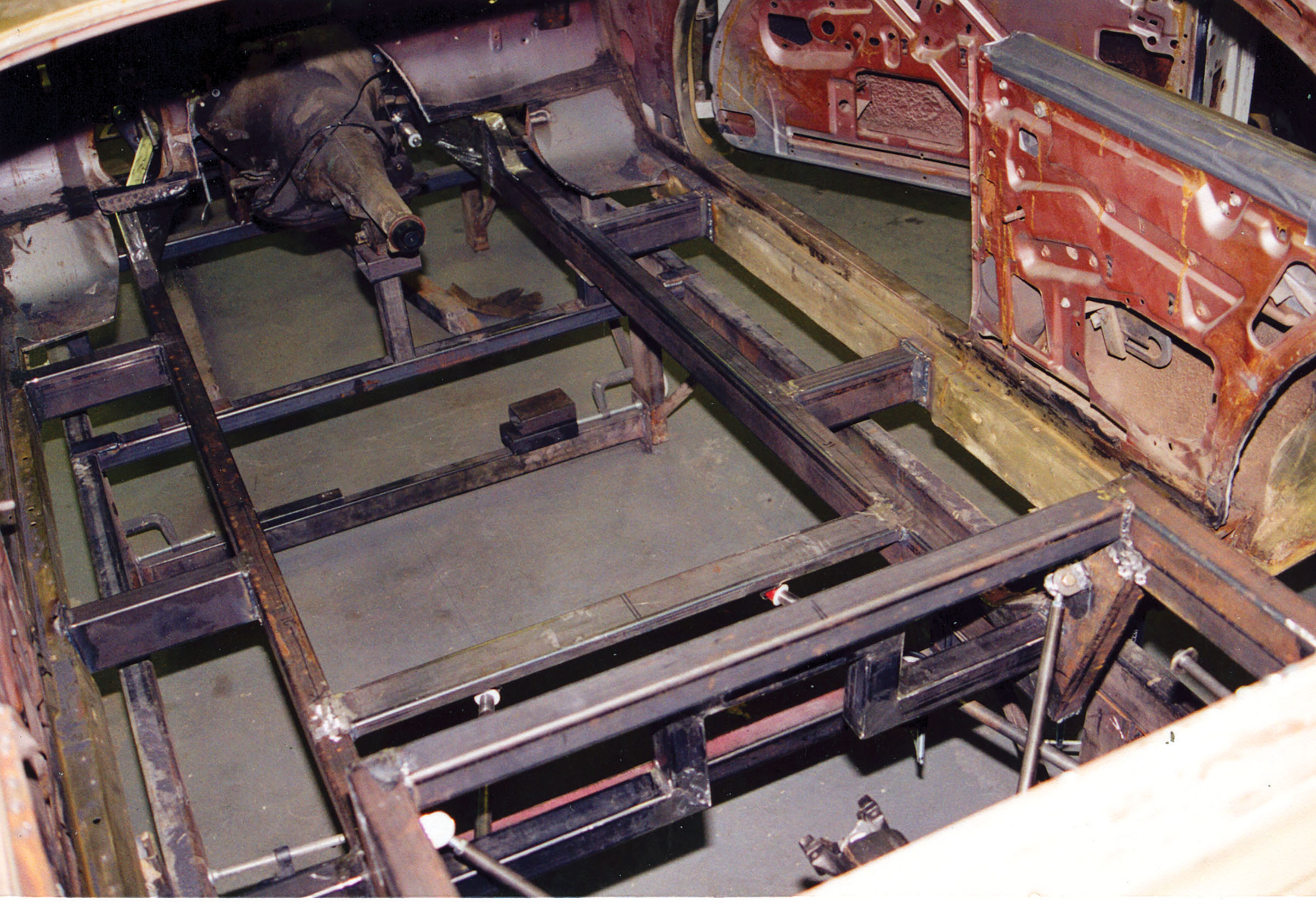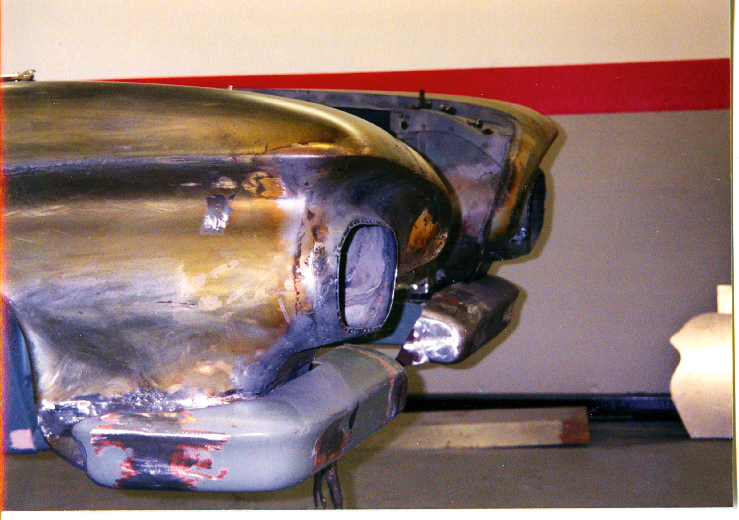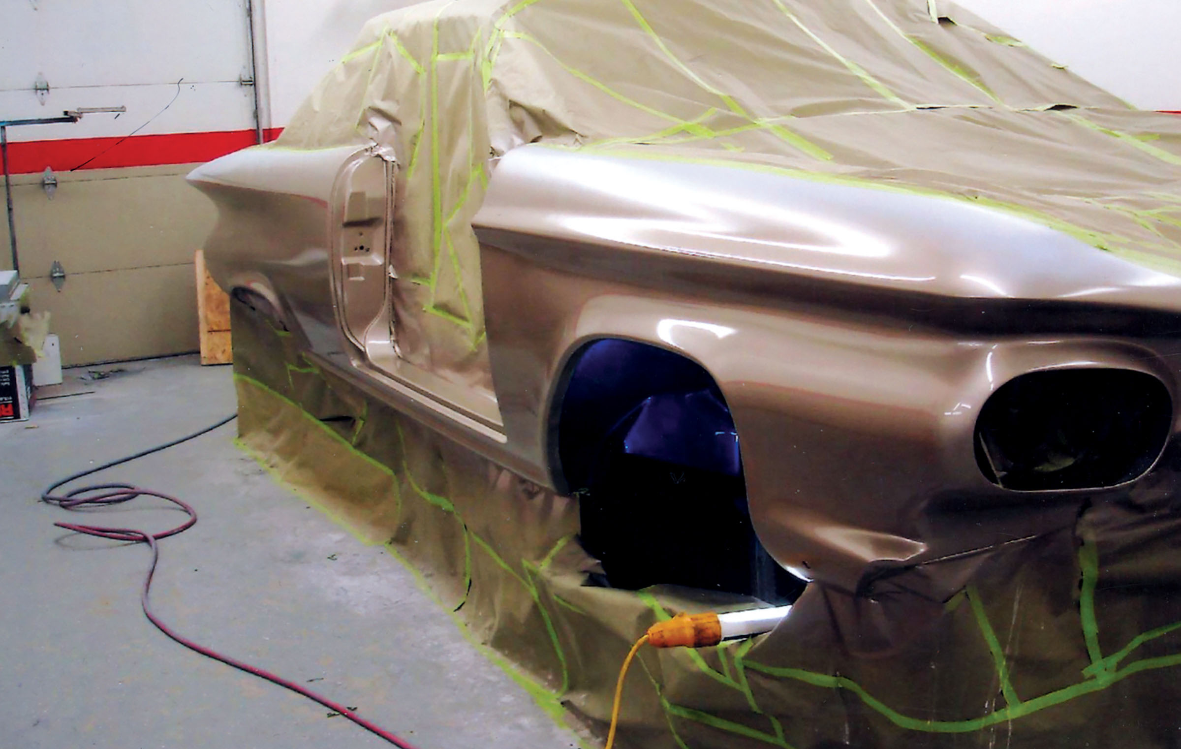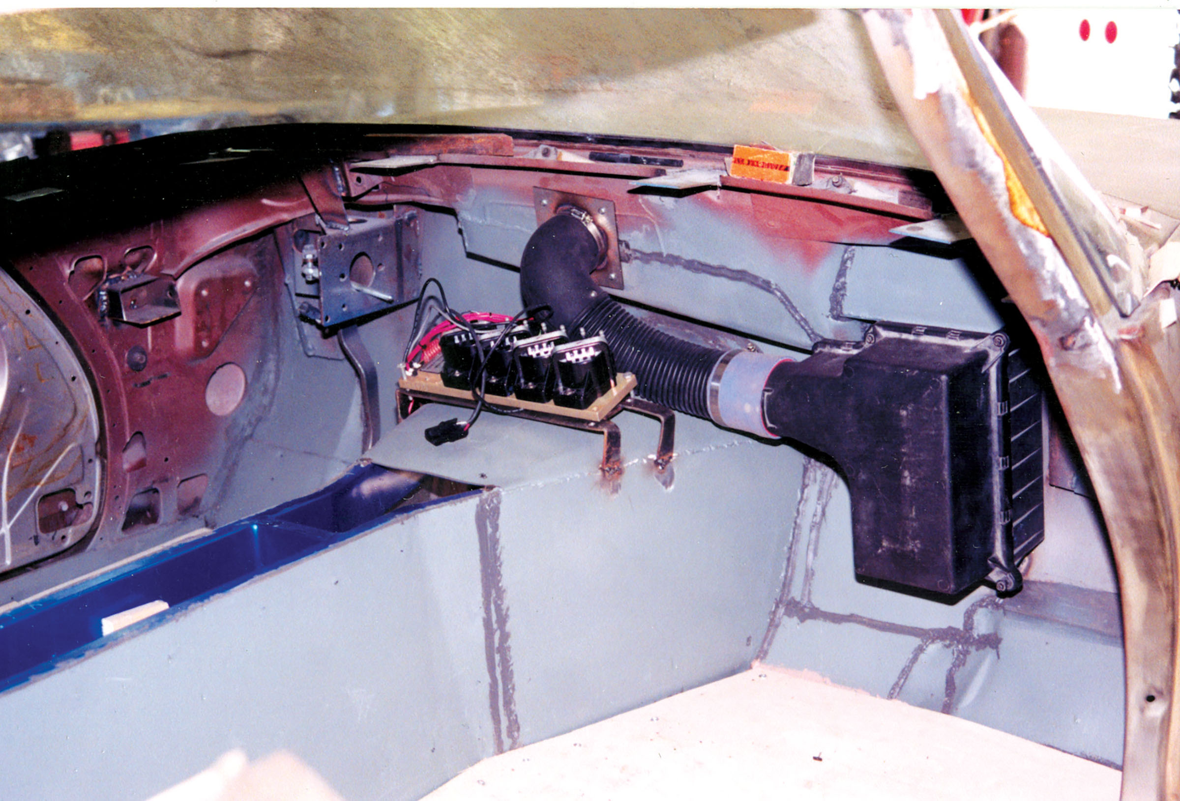 Along with all that metalwork, the guys spent many hours blocking and priming the body to make sure it was straight, with all of its panels properly aligned. All the painting materials and supplies came from Ron Stazzoni and Mike Cole at D&R Auto Paint and Supply. The two-tone design features Ford Festiva Blue on top with Ferrari Champagne on the lower portion. McGrath applied the base/clear paint, which was soon sanded and buffed to a high-quality finish.
