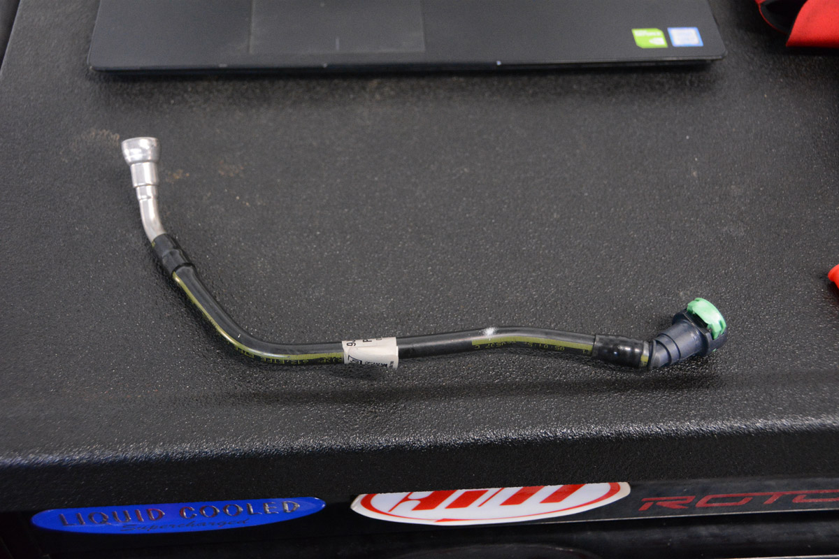 The original fuel line is removed and can be discarded. The PROFLEX system features two new fuel lines with factory-style locking connections. One line runs from the firewall bulkhead to the fuel content sensor, and the second line runs from the sensor to the engine.