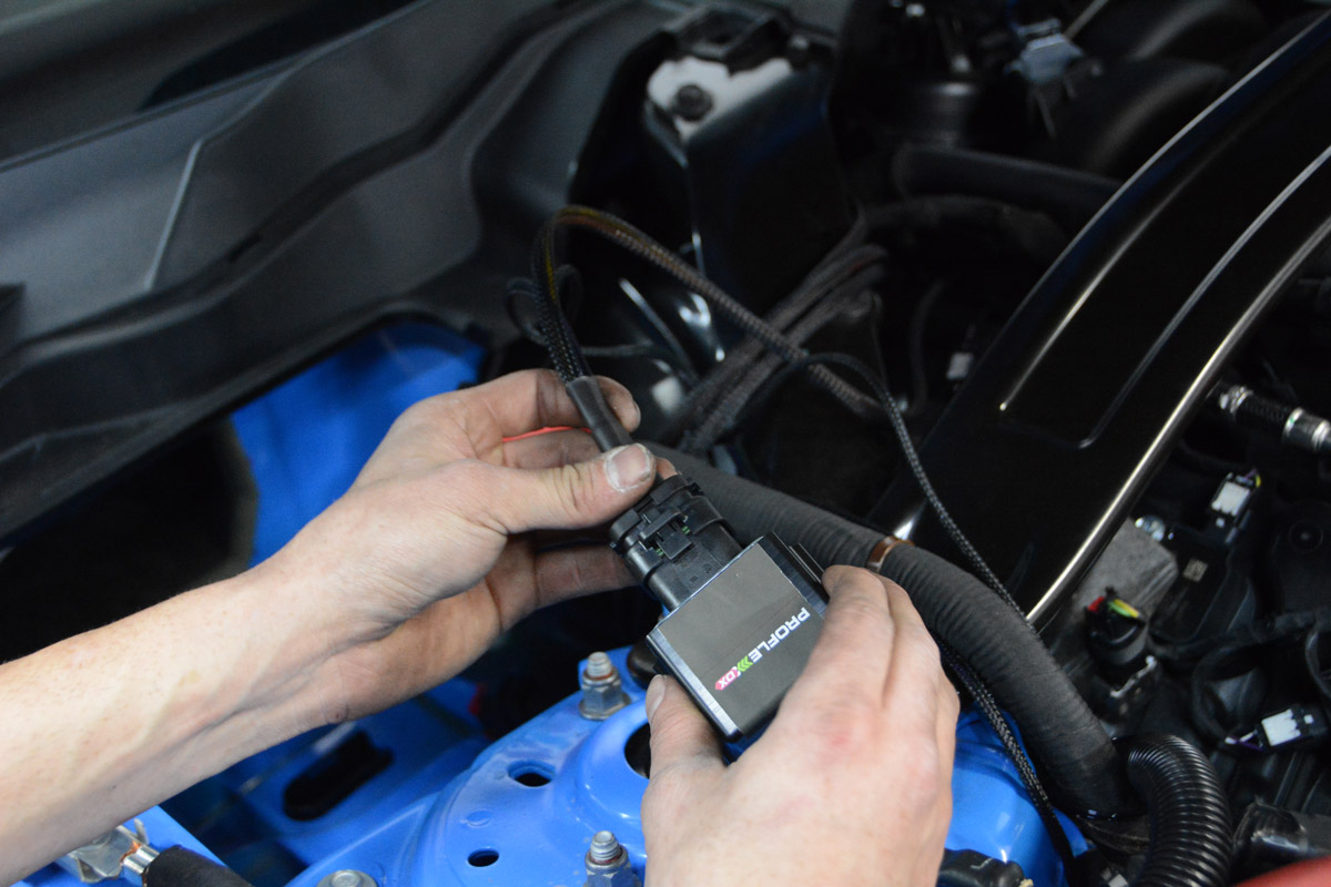 A new piece that’s included in the PROFLEX DX system is this Direct Commander Module. Since this Mustang features a port fuel injection system and direct injection, this secondary module is necessary for proper fuel delivery.