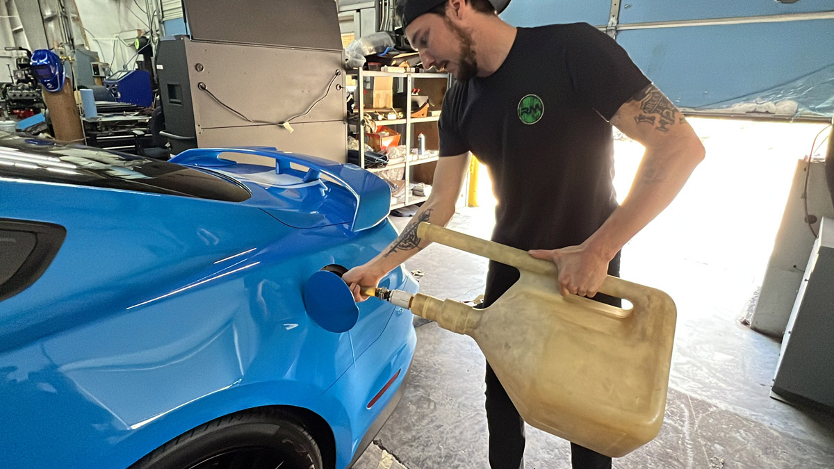 With the Advanced Fuel Dynamics PROFLEX kit installed, all that’s left to do is add some E85 fuel to the tank. This car already had a few gallons of 93-octane gas in the tank, but the good news is that this adaptive flex fuel system constantly adjusts for any amount of ethanol.