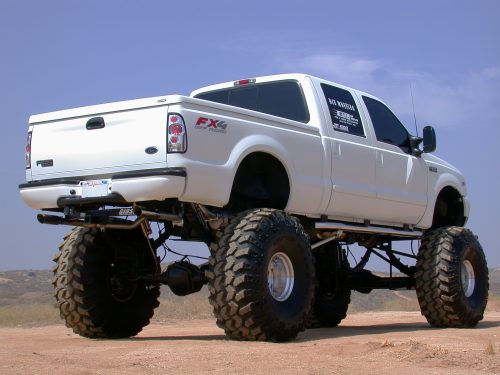 Stan Belcher didn’t start out like a man possessed when he bought his ’03 Ford F-250 Super Duty Crew Cab truck. But it didn’t take long for him to turn into one. Initially, the plan was to lift the truck enough to run a set of 44-inch tires. Stan liked the Super Duty trucks because of the straight axle, which made lifting it 12 inches a snap. Three weeks later he had the body lifted three inches. He actually drove the truck with the 15-inch (total) lift and the stock wheel and 30-inch tires for about a month and a half. After installing the 44-inch tires the truck looked perfect. Everything was great, and Stan loved the truck… and then Swamper comes out with a set of 49-inch Irok tires!