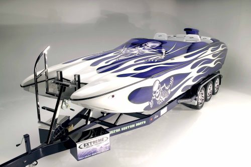 Ever see those boats on the TV show Fear Factor? Those are Ultra Custom Boats built by John West and his team in El Cajon, California. Ever watch Monster Garage? That is Jesse James from West Coast Choppers, which is based in Long Beach, California. What happens when these two guys get together to build a boat and a bike is what we have here.