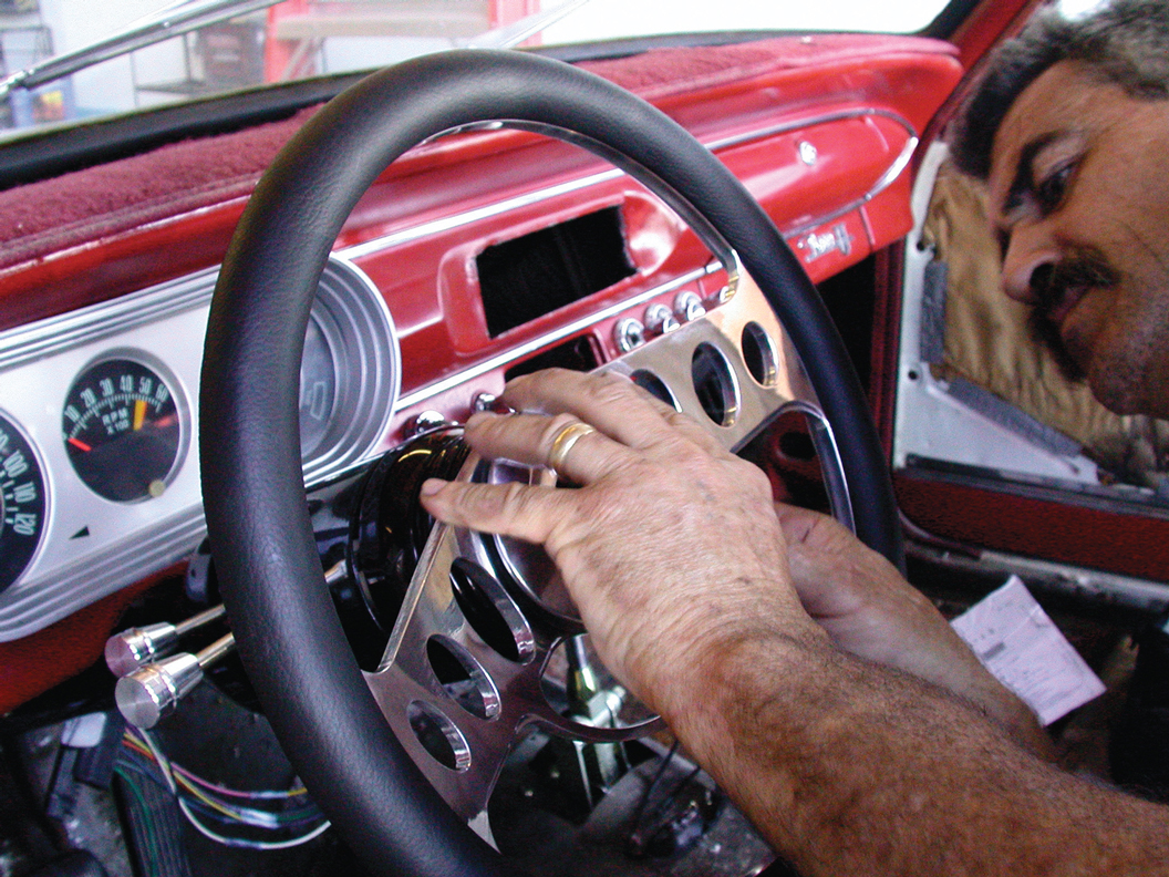 Although this install is not too hard, the owner wisely chose to have the job professionally done. Concerned with his own safety as well as those of his passengers, he had the pros at D&P Classic Chevrolet in Huntington Beach, California, do the job for him. Known for its award-winning tri-5 Chevy cars and wagons, D&P also dabbles in Novas, Chevelles and vintage pickups. We were on hand as the D&P crew quickly did the deed in a few hours, slowing down occasionally so we could snap these shots.