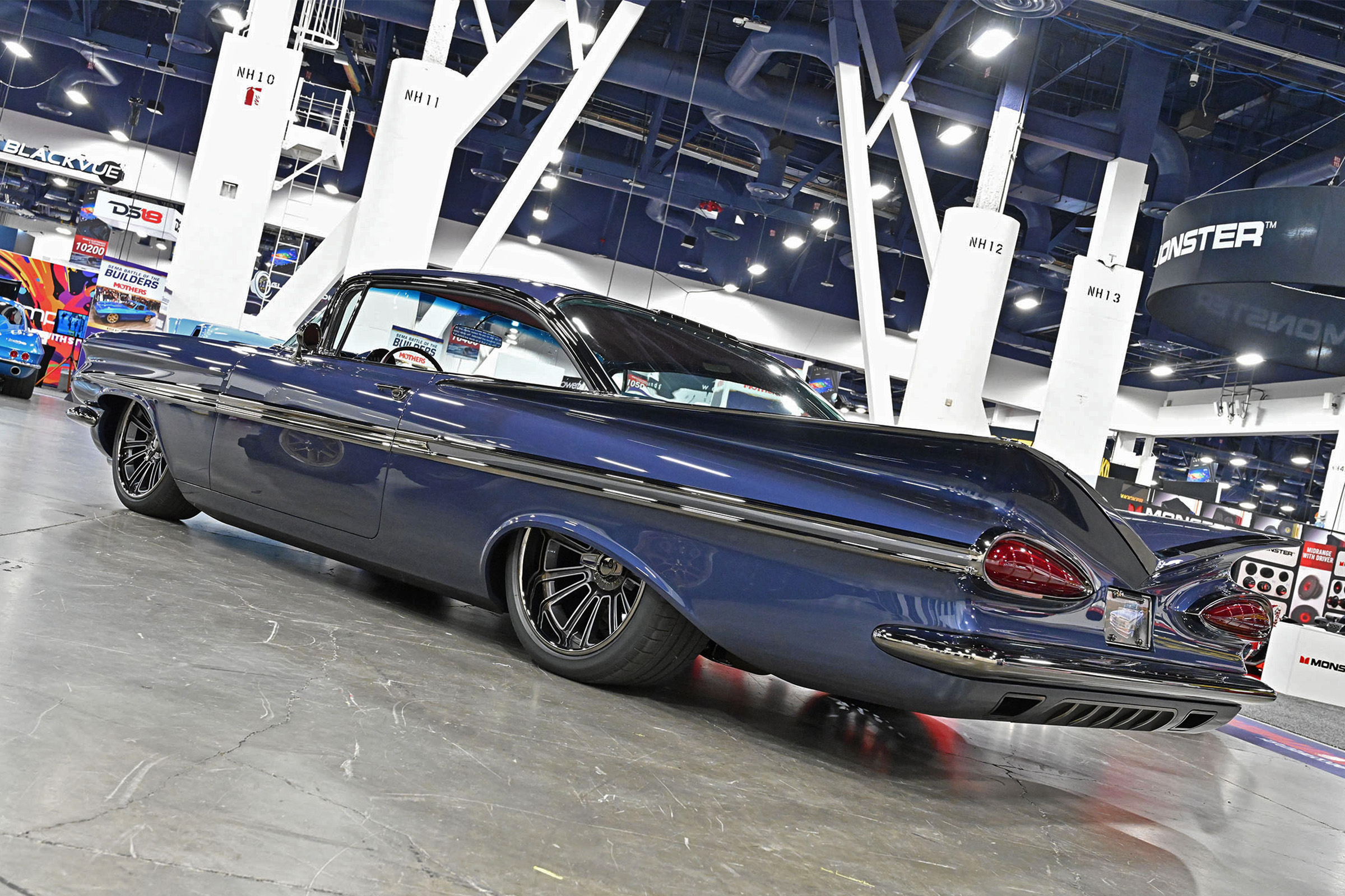 Troy Gudgel has taken the iconic 1959 Chevrolet Impala and transformed it into a show-stopping work of custom refinement. Every panel, every line, every surface has been meticulously reimagined—custom sheetmetal modifications tighten gaps, eliminate seams, and elevate the classic design to a level of precision rarely seen. From scratch-built bumpers, grille, and rear valance to handcrafted taillights, this car is a rolling showcase of artistry and engineering.