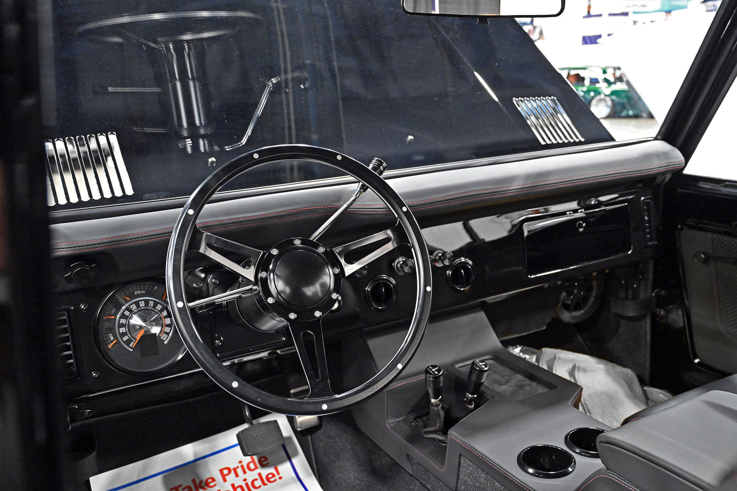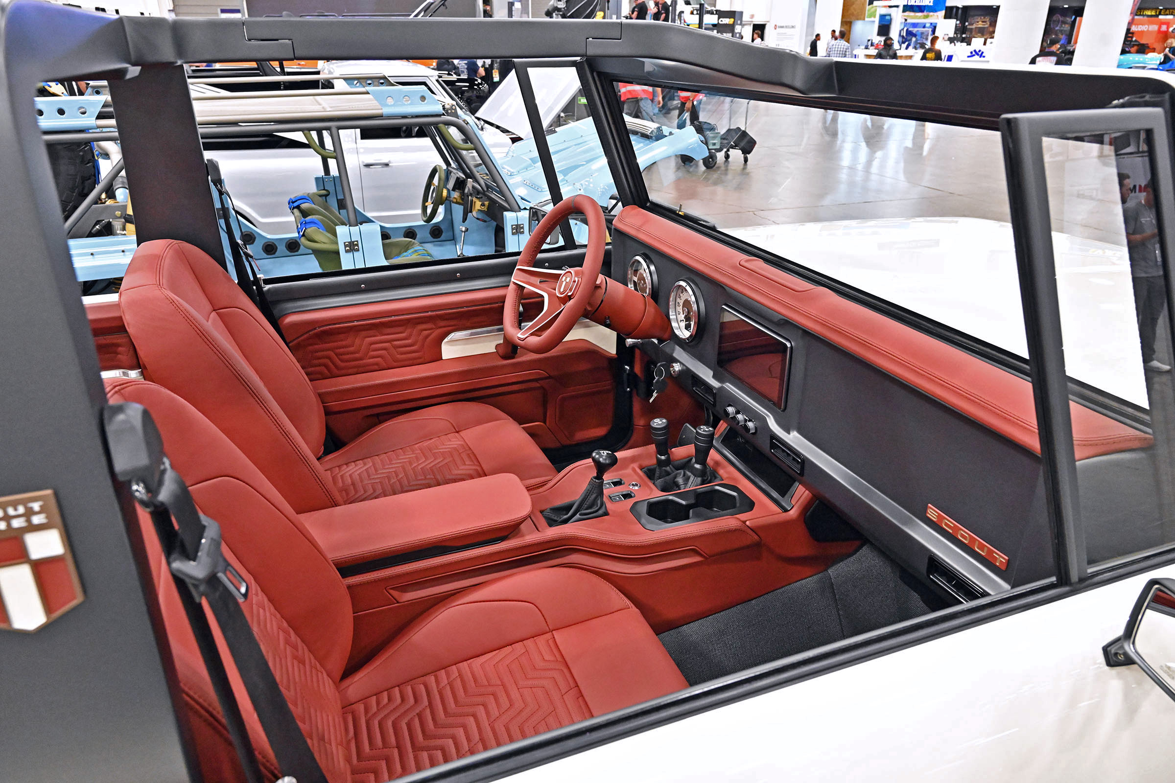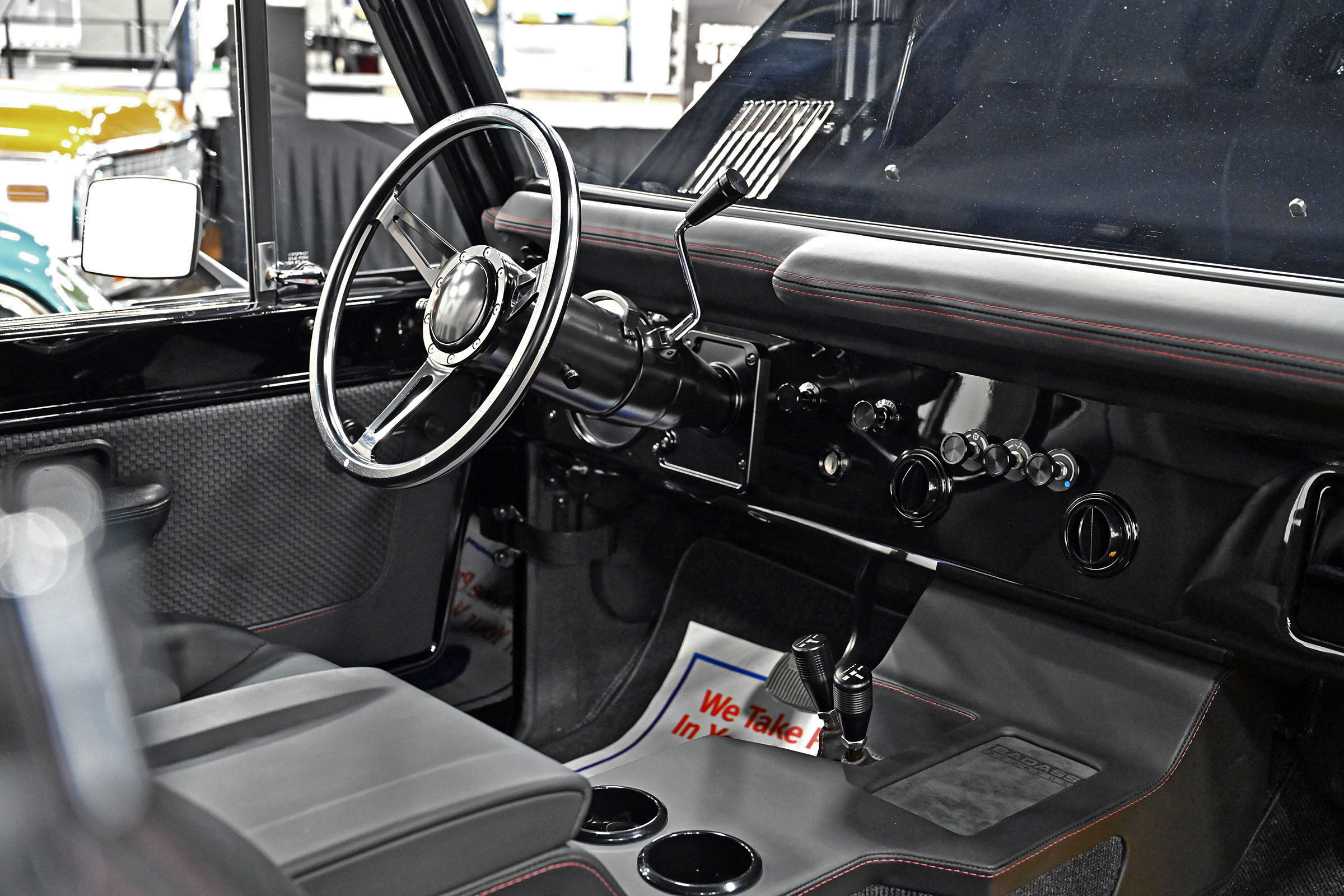 Power comes from a Ford Racing Gen 4X Coyote engine, supercharged by Whipple to produce 810 hp, paired with a Ford F-150 10R80 transmission and an Atlas two-speed transfer case. The electrical system is fully integrated with an American Autowire harness, Dakota Digital RTX gauges, and an ididit tilt column, while the interior features Relicate custom Ferrari black leather with woven insets and a 10k Custom JL audio system. Every detail showcases precision craftsmanship, performance engineering, and Badass Broncos’ signature attention to style, making this Bronco a true standout at the SEMA Battle of the Builders.