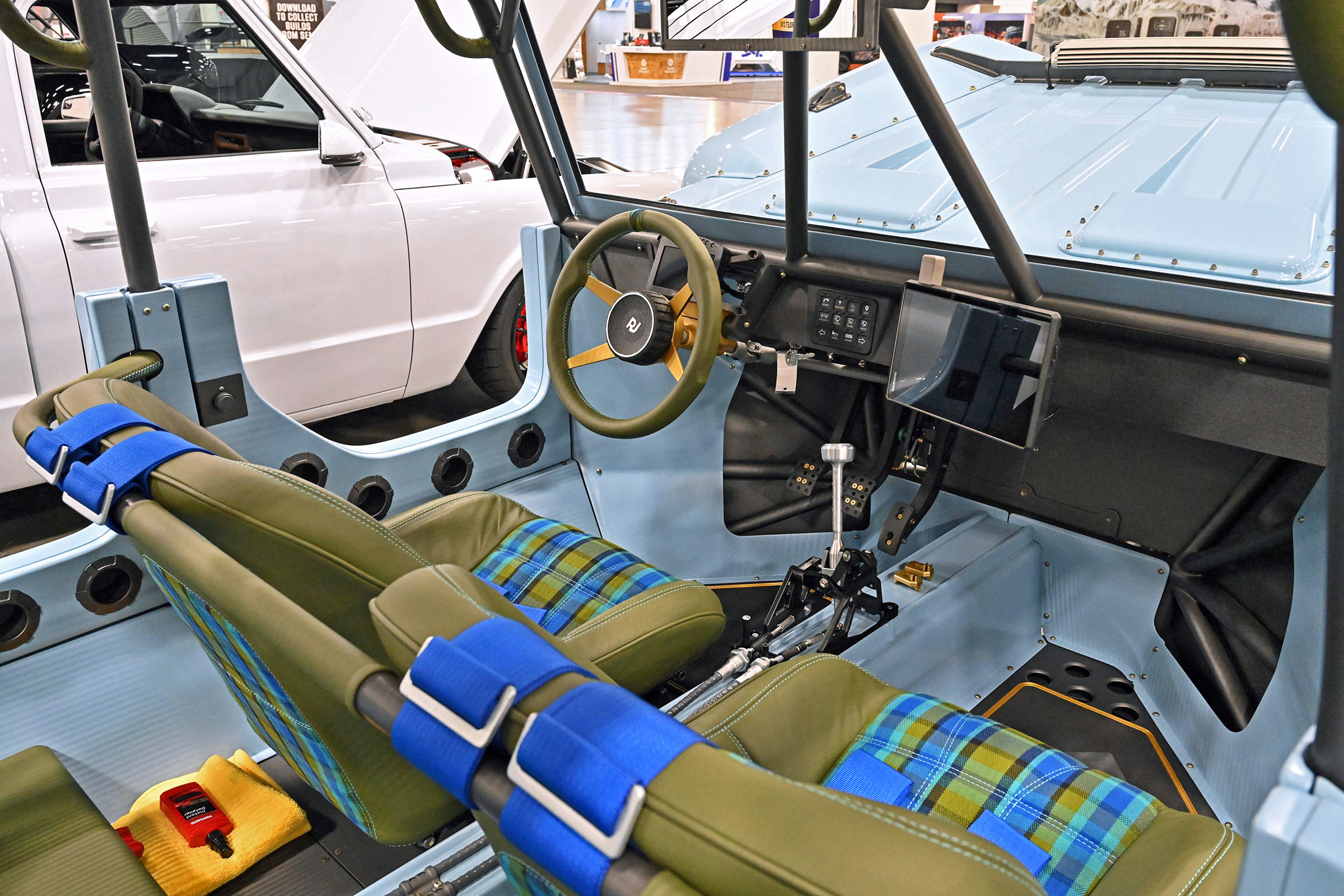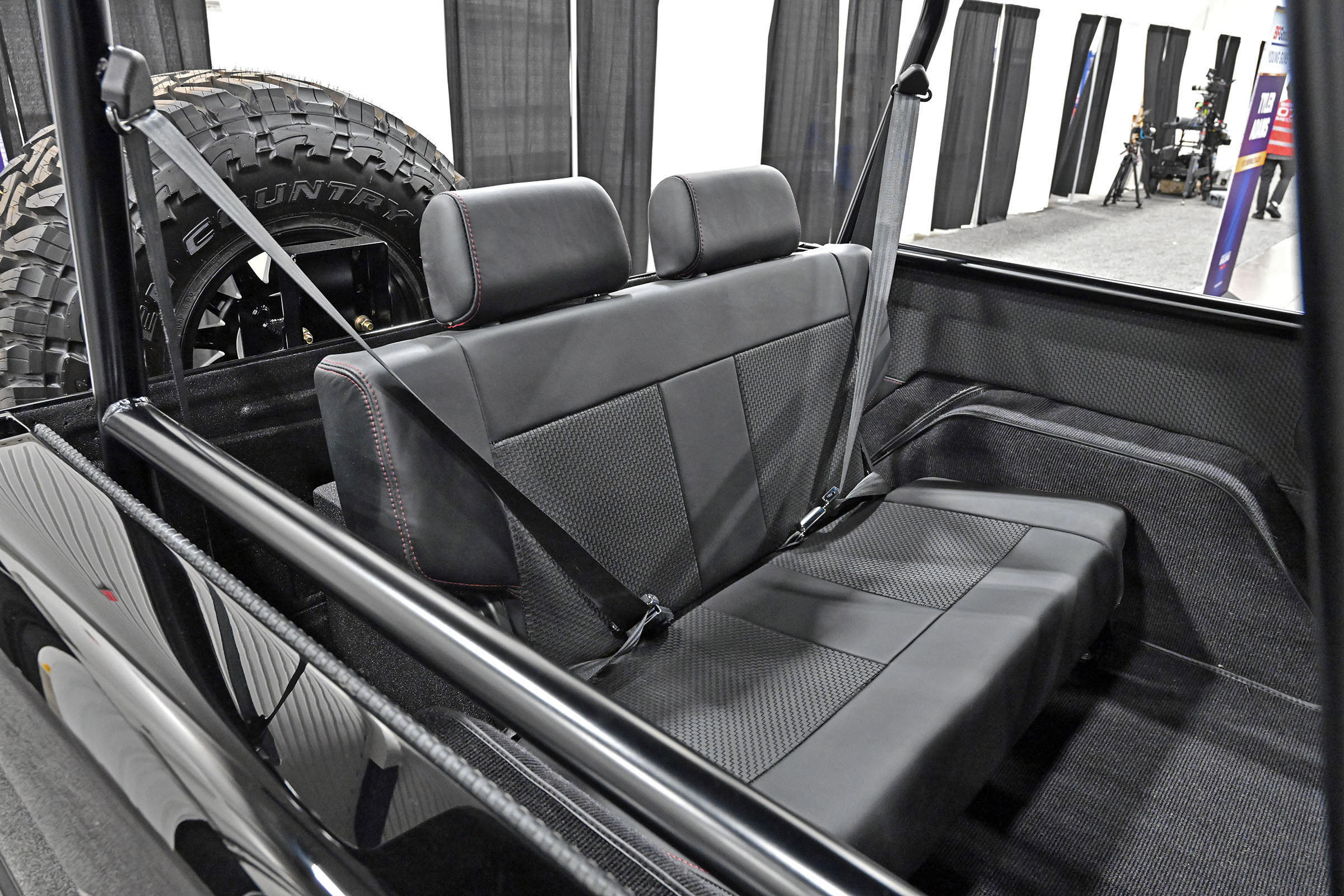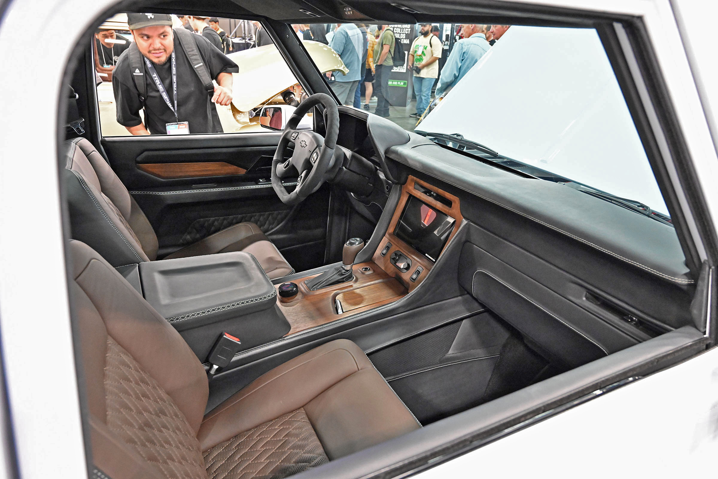Power comes from a Ford Racing Gen 4X Coyote engine, supercharged by Whipple to produce 810 hp, paired with a Ford F-150 10R80 transmission and an Atlas two-speed transfer case. The electrical system is fully integrated with an American Autowire harness, Dakota Digital RTX gauges, and an ididit tilt column, while the interior features Relicate custom Ferrari black leather with woven insets and a 10k Custom JL audio system. Every detail showcases precision craftsmanship, performance engineering, and Badass Broncos’ signature attention to style, making this Bronco a true standout at the SEMA Battle of the Builders.