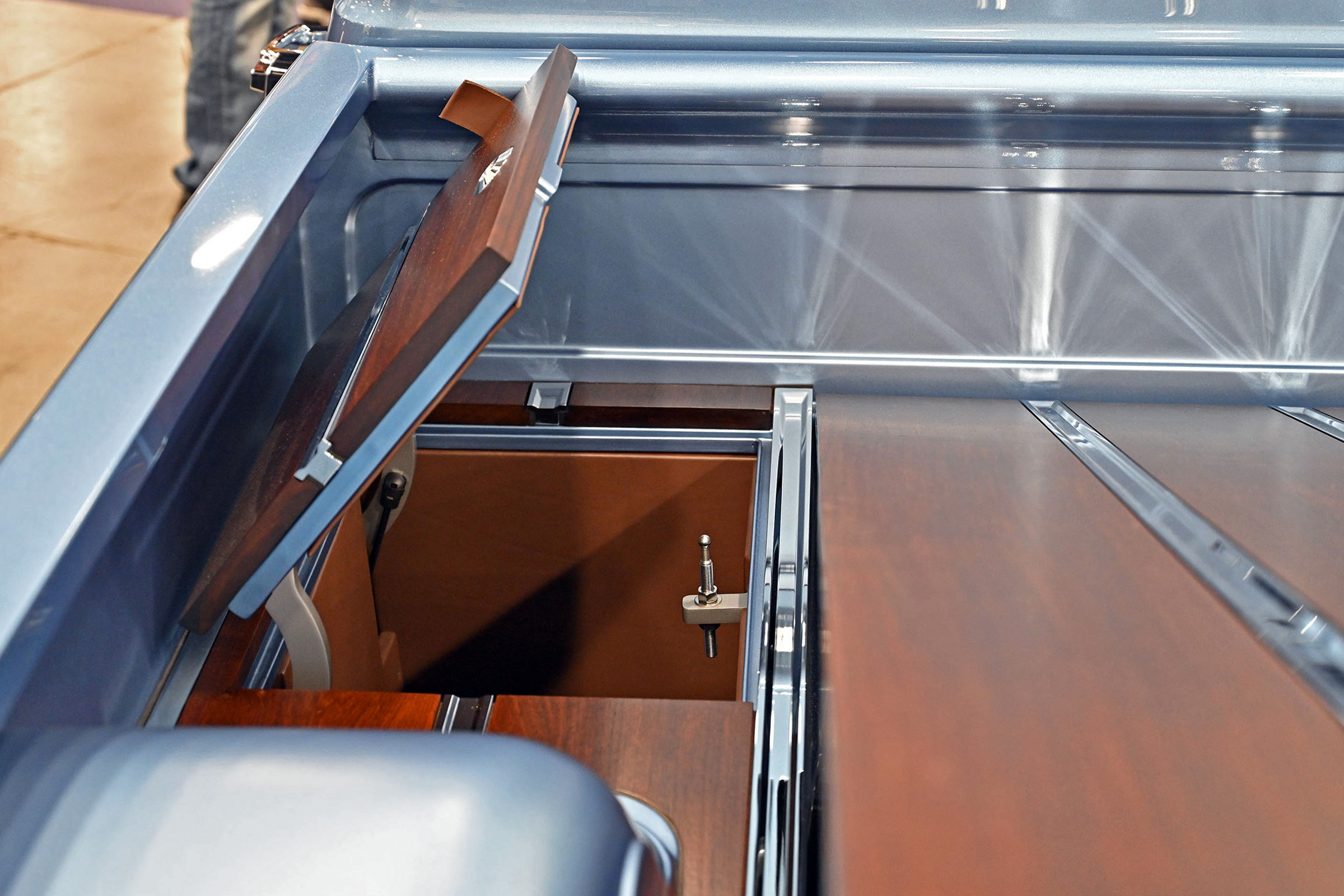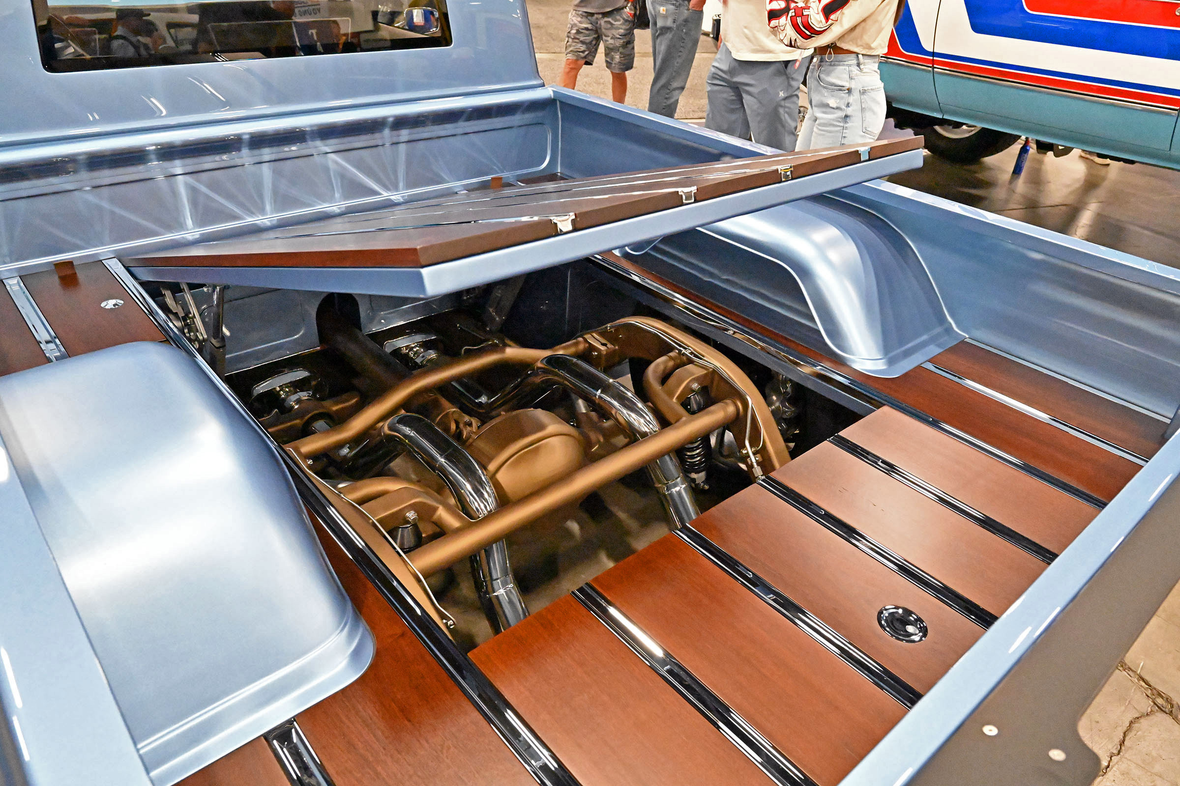 When Thomas Dickerson unveiled his 1967 Chevrolet C10, it was clear this wasn’t just a restomod—it was a ground-up custom creation executed with obsessive precision. Every detail, from the engine bay and underside to the flush-mounted custom glass and one-off headlights, reflects his dedication to originality and craftsmanship. The fabricated bed, finished with Brazilian ironwood and set between machined runners, balances beauty with modern utility, complemented by a custom electric bed door that adds functionality without compromising style.