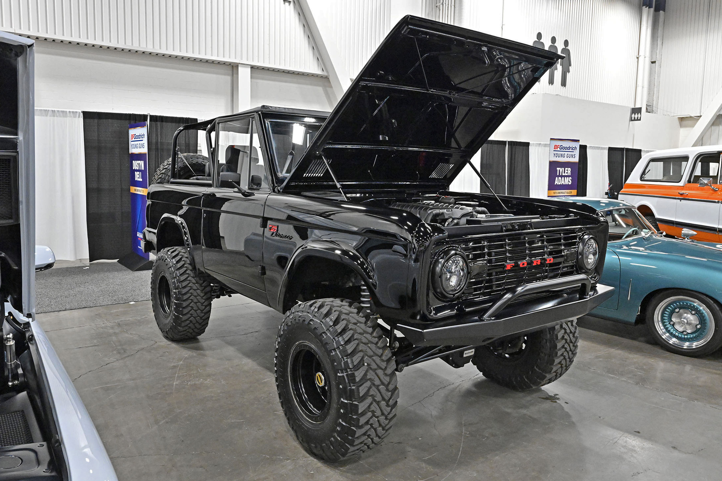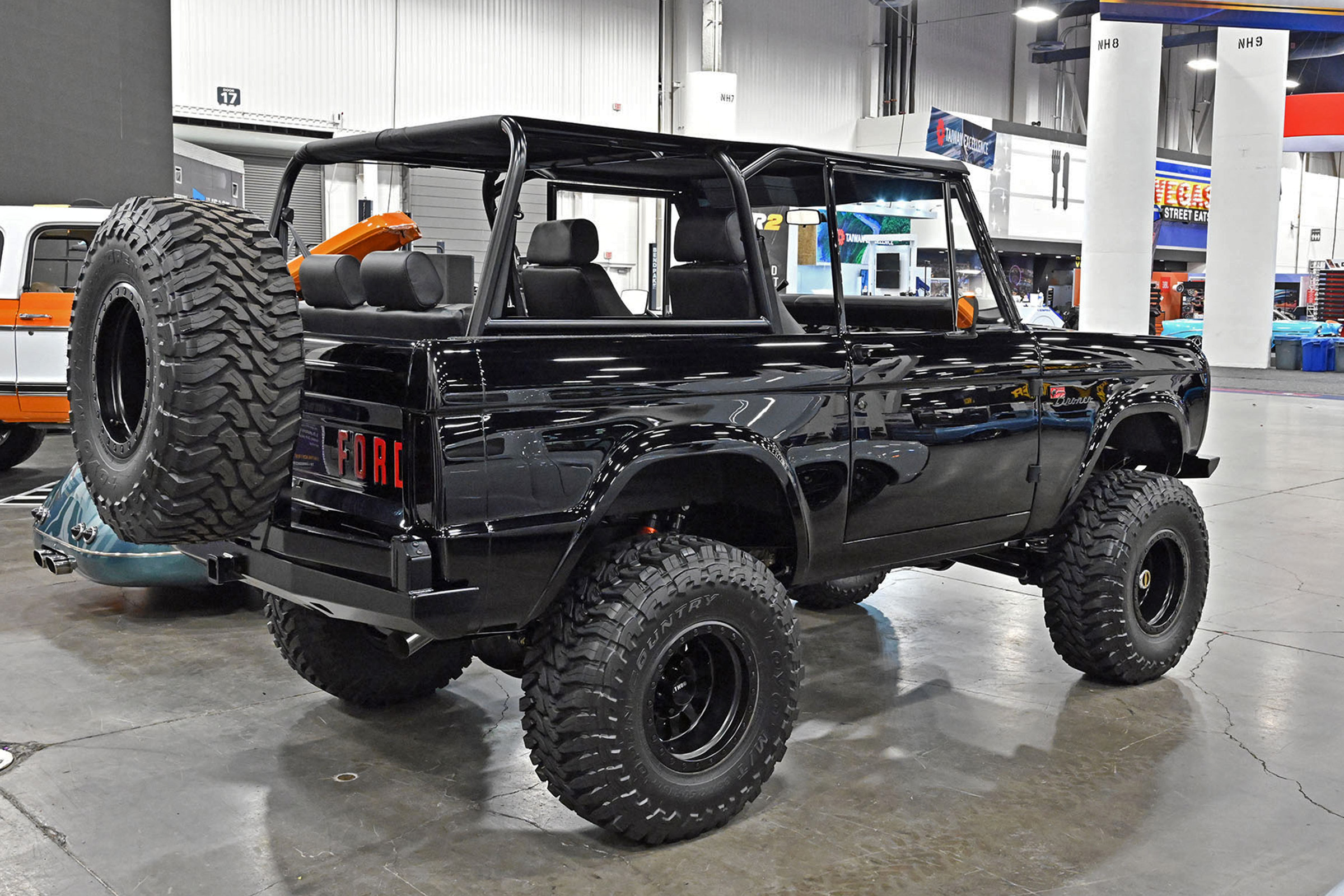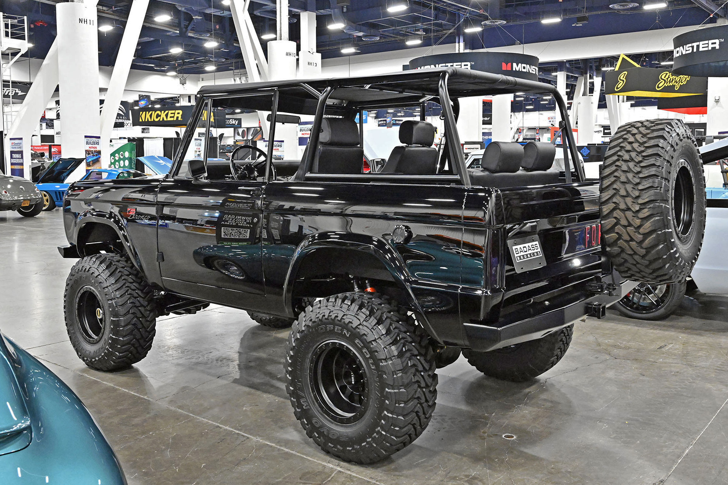Woody Ferrebee and Badass Broncos have transformed the classic 1966 Ford Bronco into a modern off-road monster that commands attention. Starting with a Ford-licensed Dennis Carpenter body, the truck is finished in PPG basecoat and clearcoat, protected by a Lizard Skin ceramic heat barrier and shield liner, combining style with durability. Every inch rides on a Gen 1 coilover chassis with Fox Factory coilovers, providing precise handling and off-road capability, while custom bumpers and a Kincer chassis family cage ensure the build is as safe as it is aggressive.