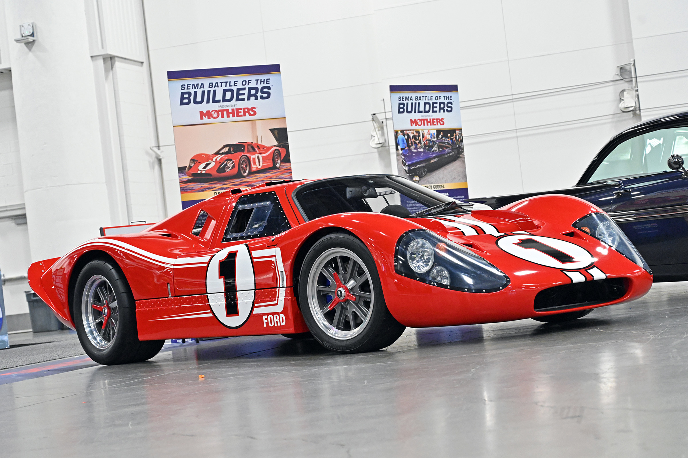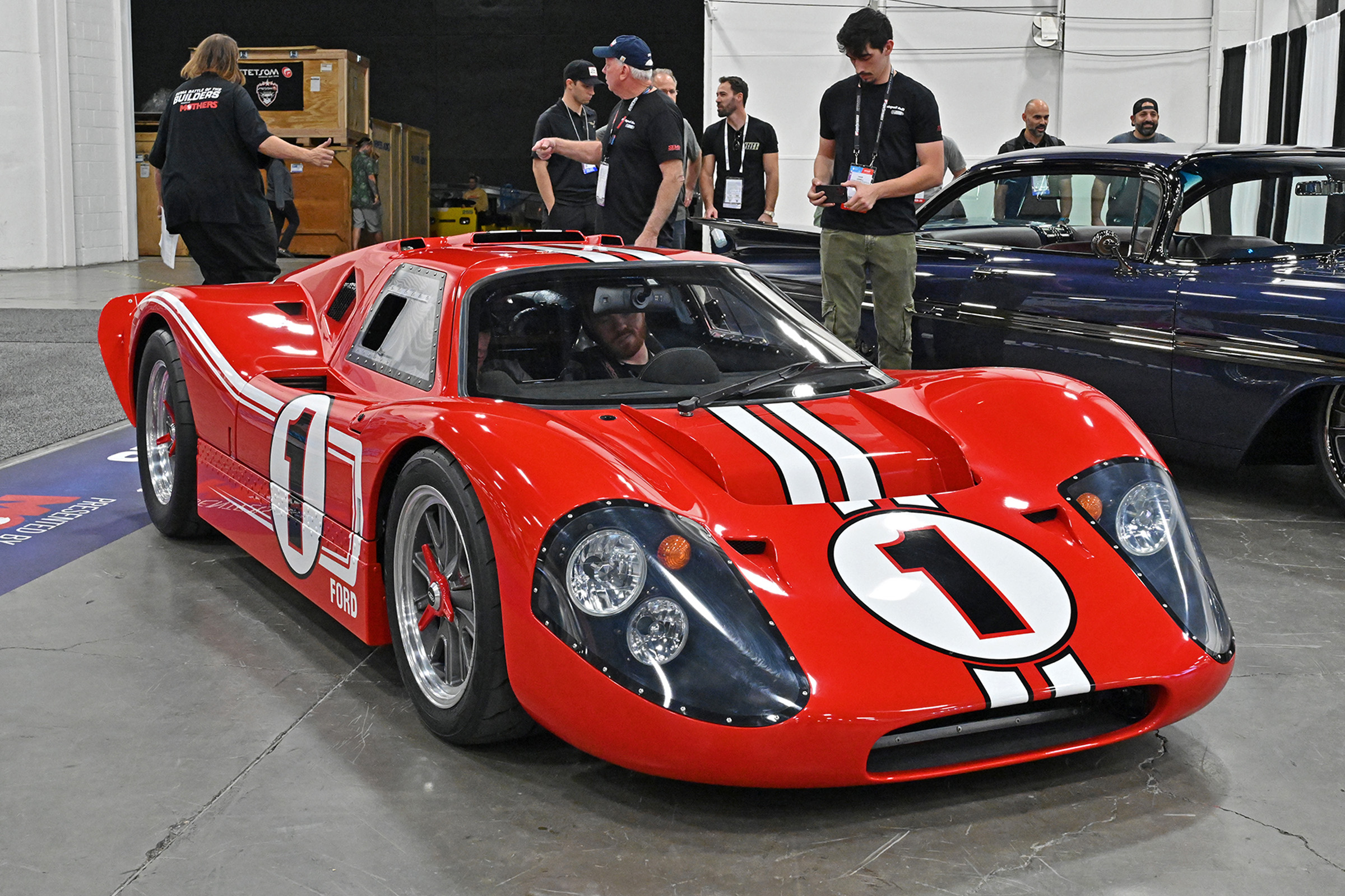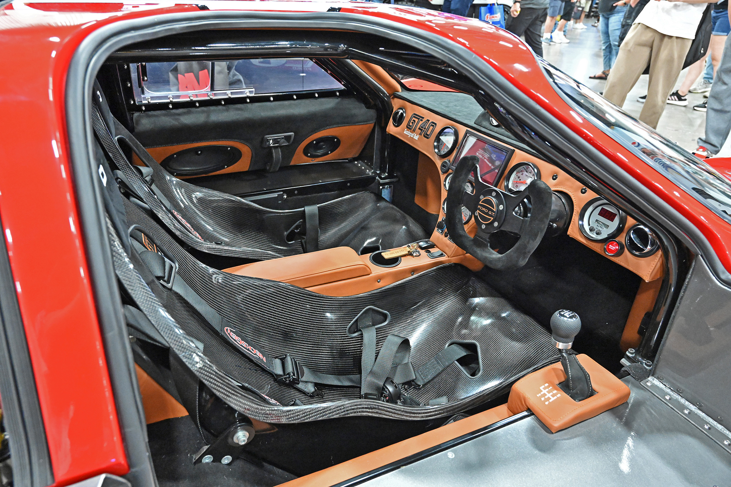 Inside, the cabin is fully custom, featuring carbon-fiber seats wrapped in leather and Alcantara, perfectly complementing the car’s race-inspired aesthetic. Every detail, from body prep to the high-gloss HC2104 clearcoat finish, reflects Guadagnoli’s artistry and dedication. The 1967 Ford GT40 MK IV isn’t just a re-creation—it’s a masterpiece of craftsmanship, performance, and eye-popping design, ready to steal the spotlight at the 2025 SEMA Show.