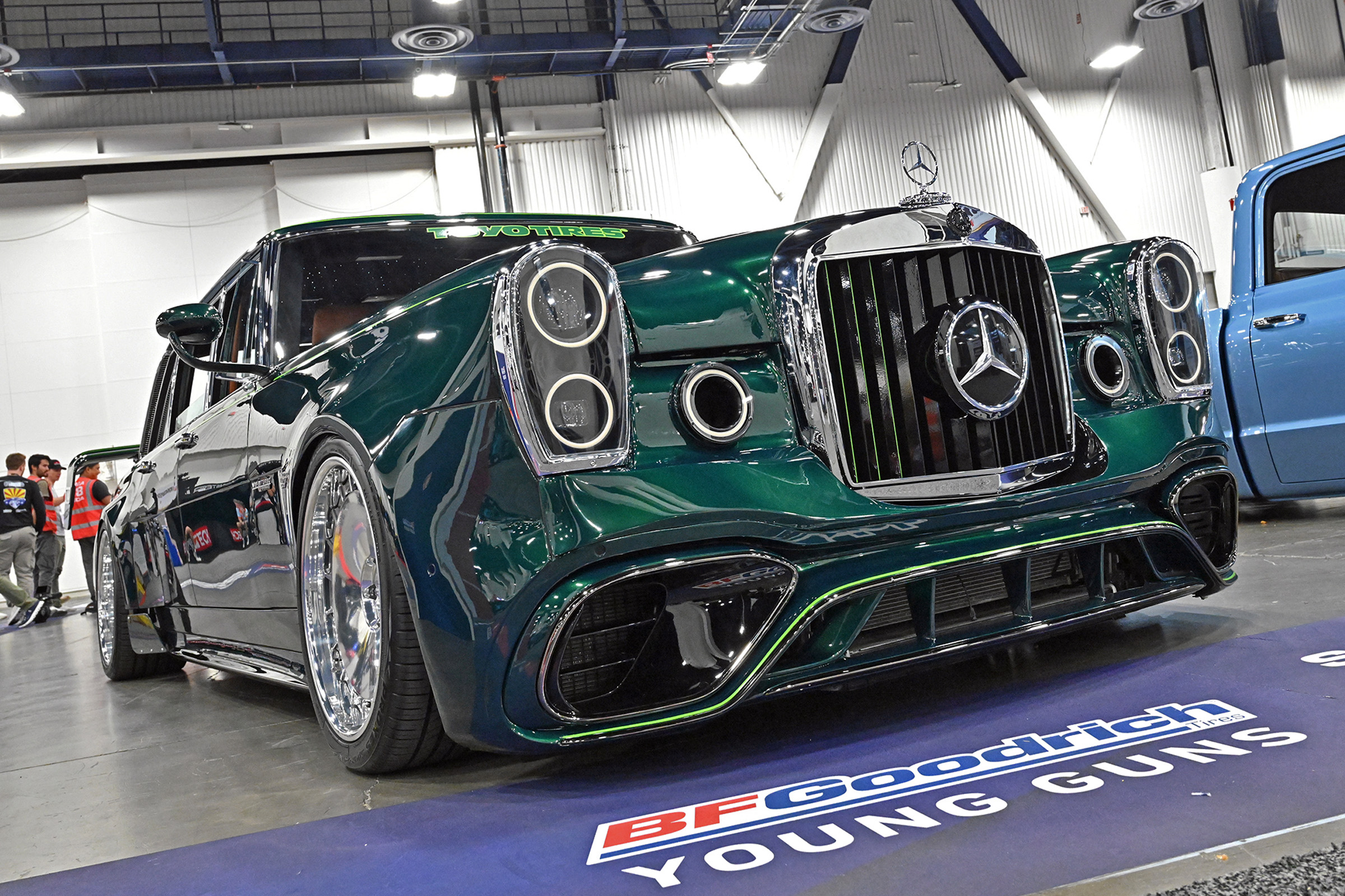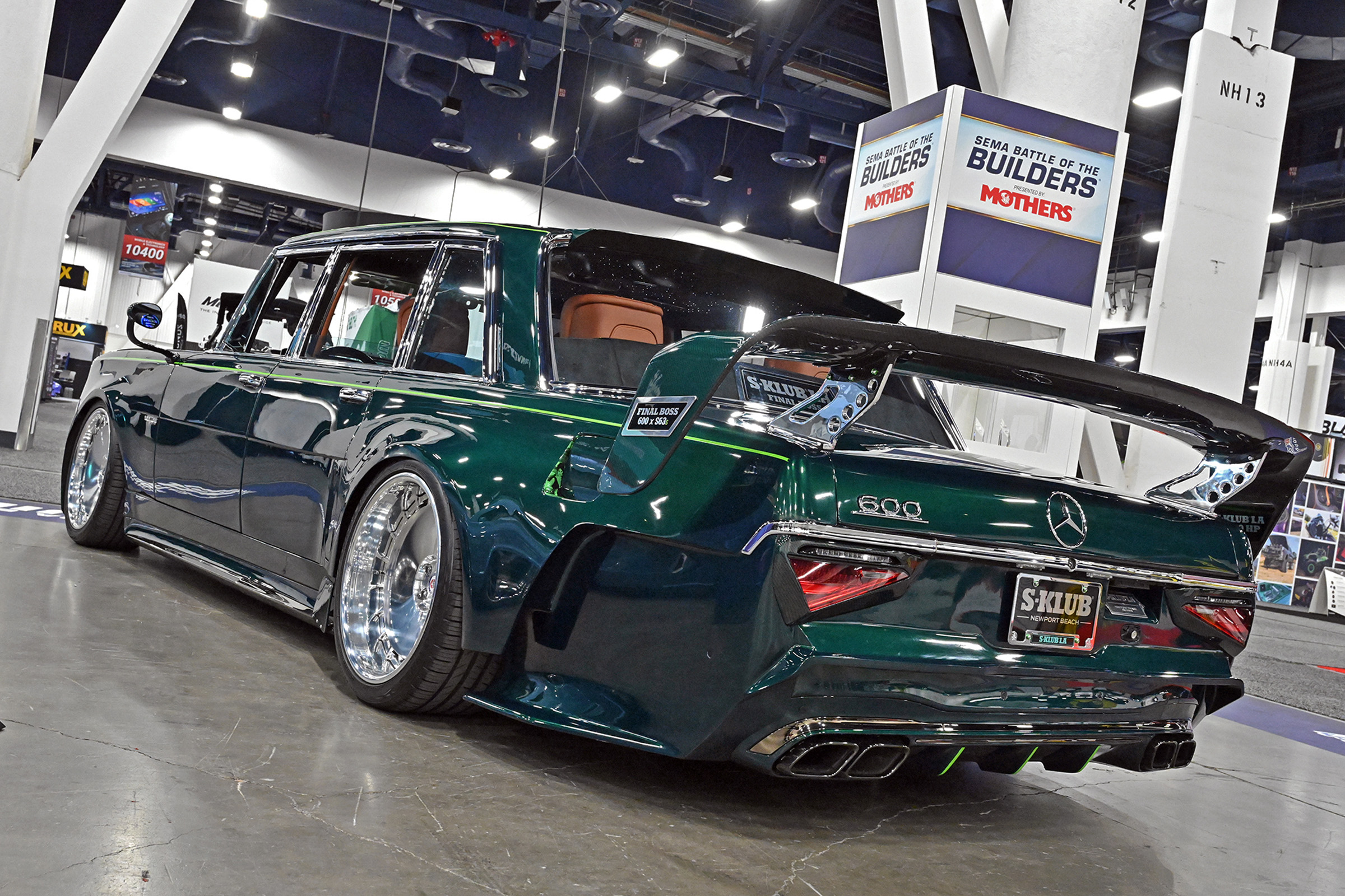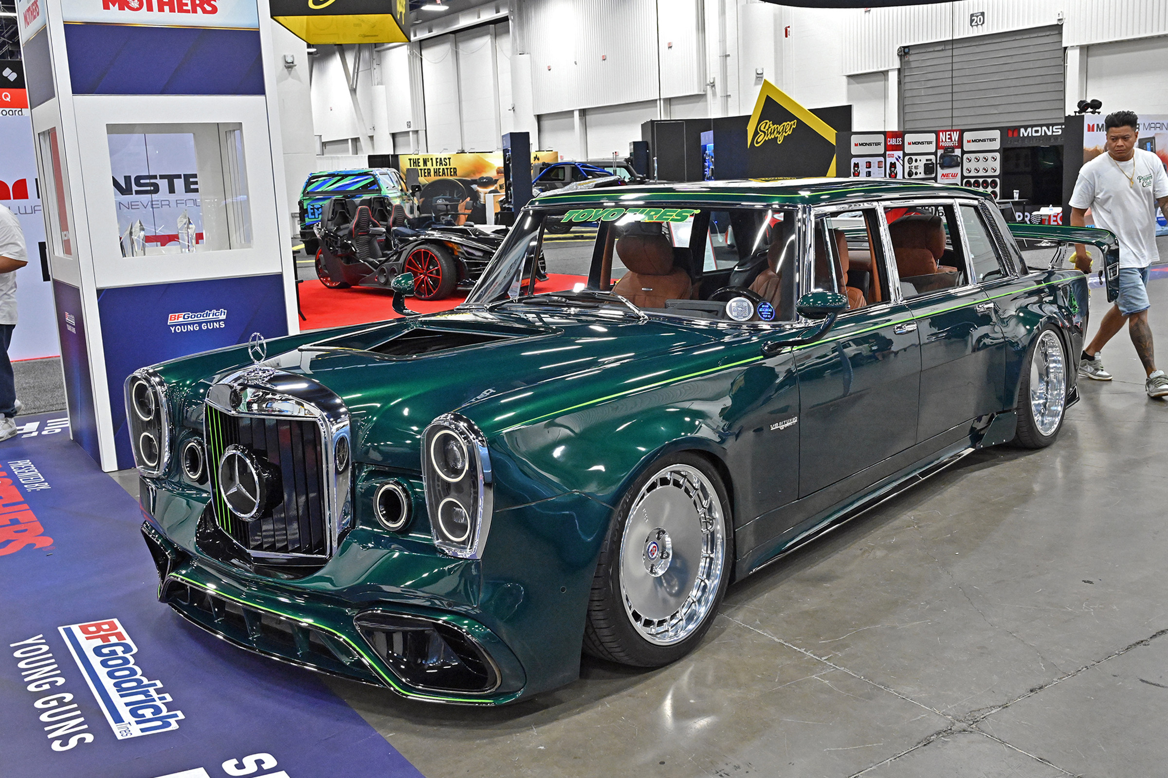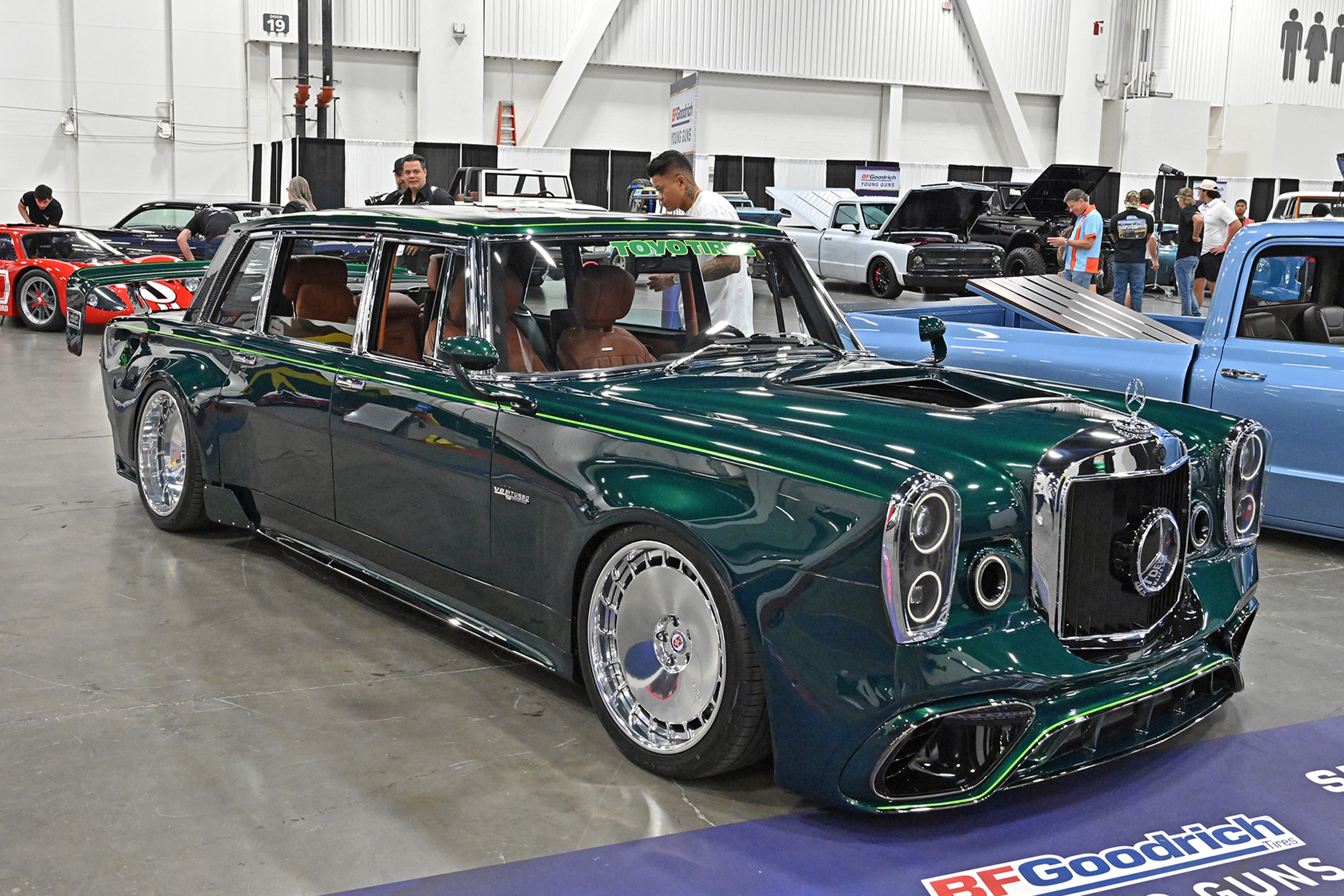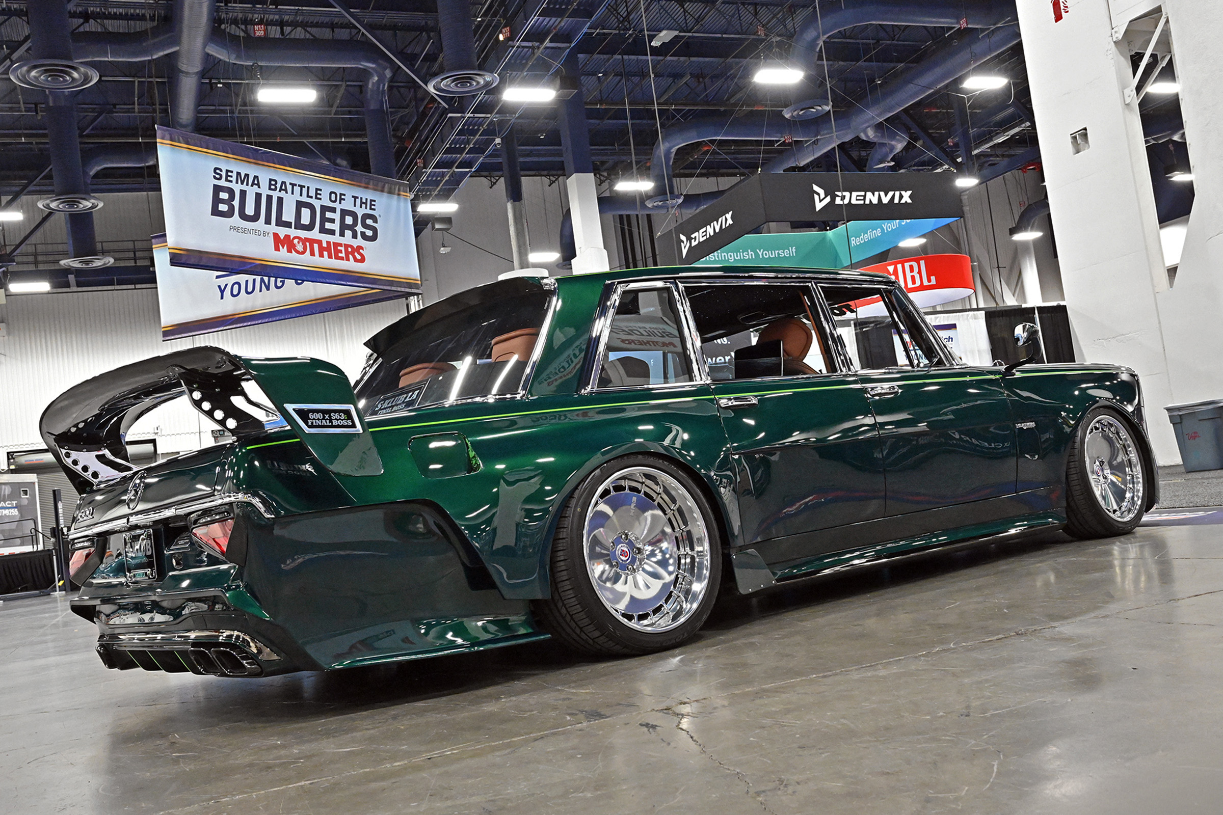 John Sarkisyan has once again pushed the boundaries of the SEMA Battle of the Builders, transforming a brand-new Mercedes-Benz S63e Performance into a one-of-a-kind 1971 Mercedes 600 Pullman. Every surface has been completely re-bodied, merging the classic proportions of the 600 with modern S63 technology. The interior was carefully preserved and reinstalled from the S63, blending contemporary luxury with a vintage silhouette.