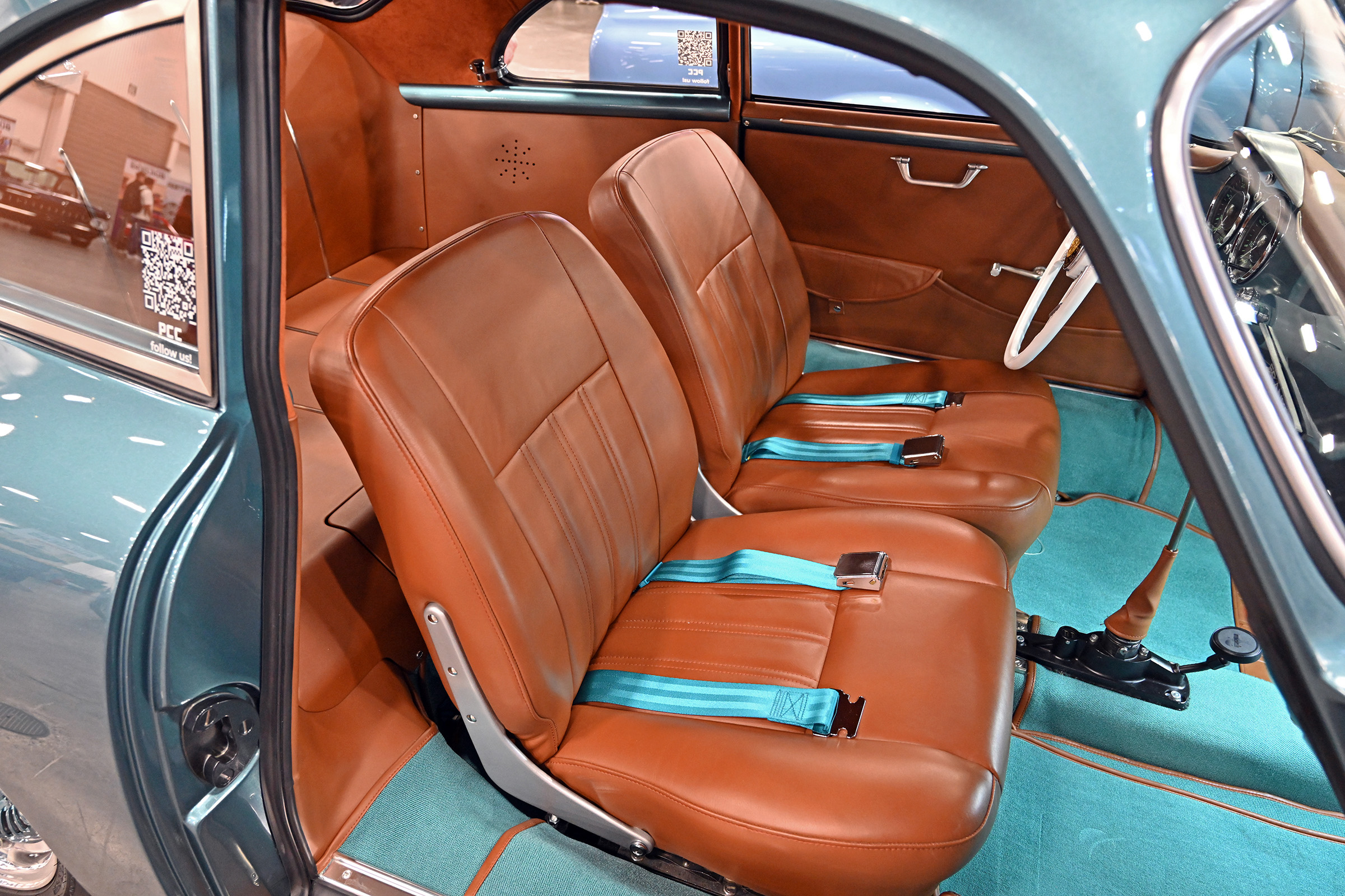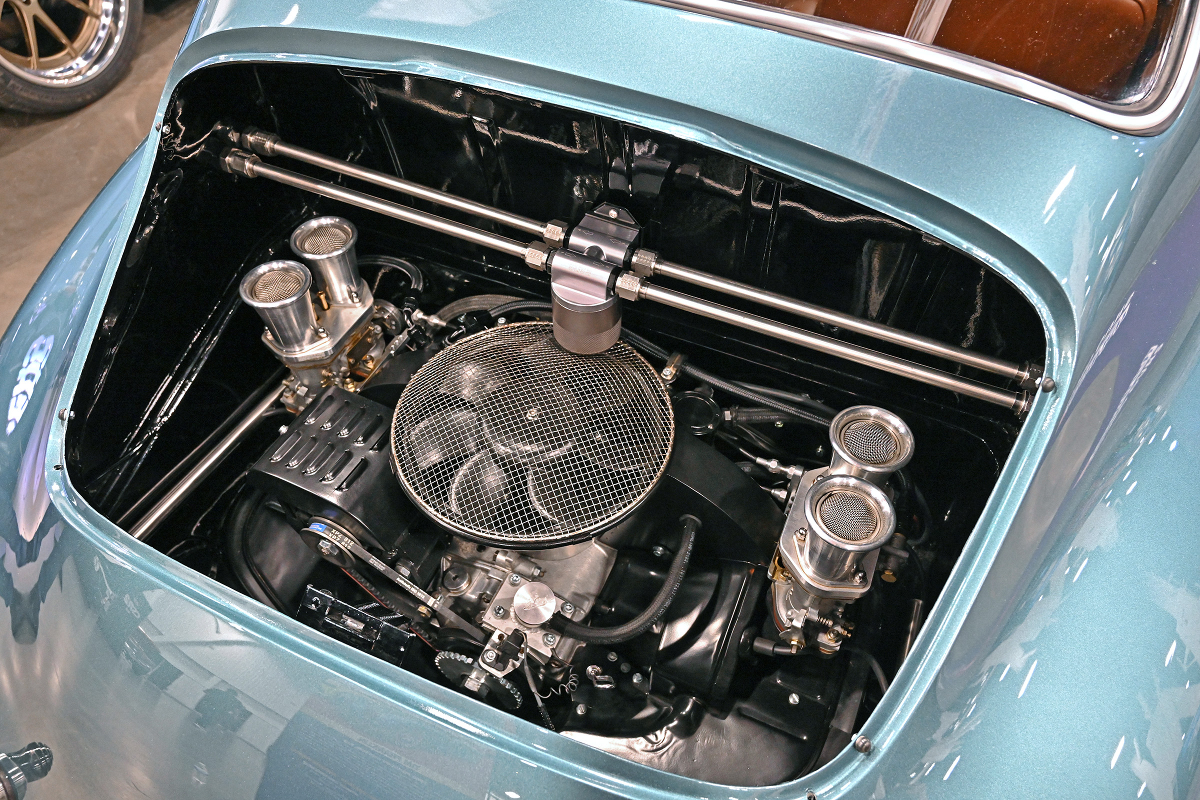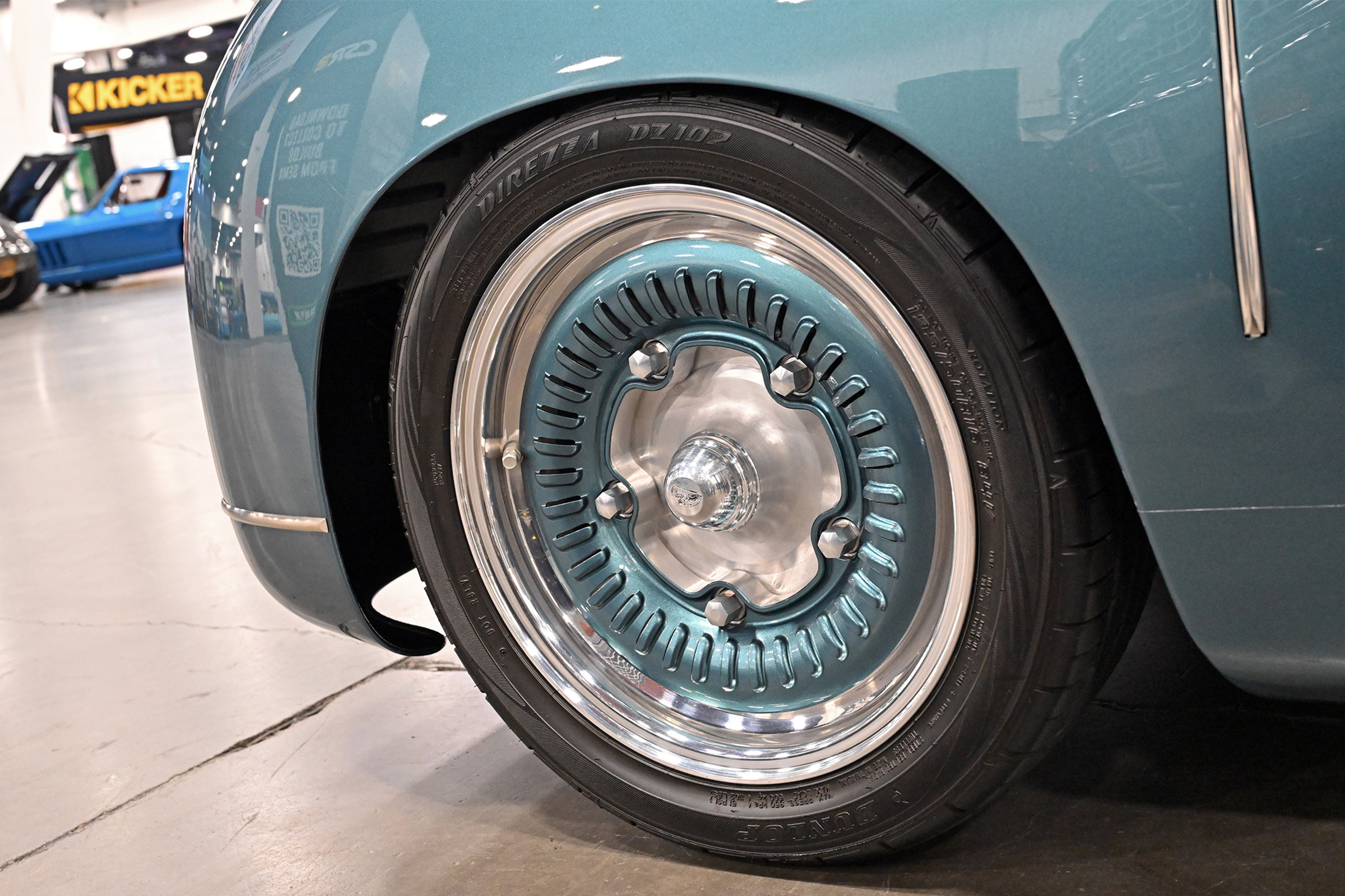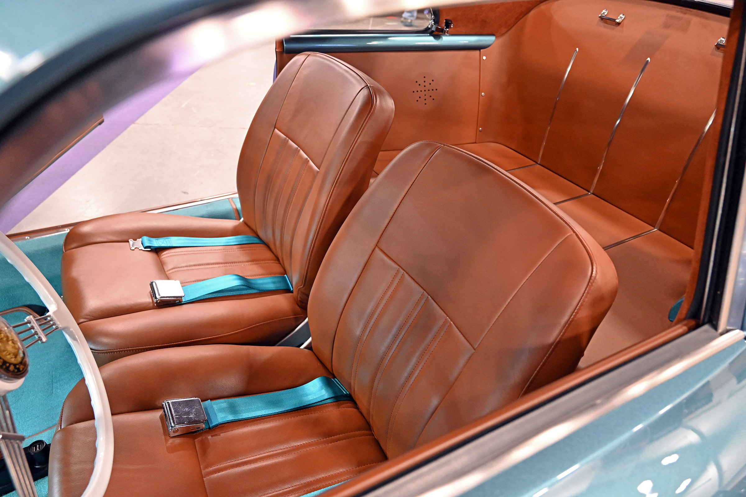 Tim Franklin and his team took a derelict 1960 Porsche 356B and transformed it into a streamlined, luxurious custom masterpiece. Every surface was reimagined, from contoured body panels and rolled rockers to a one-piece aluminum rear deck. Symmetry defines the build, with dual roof brake lights, rear deck trim sets, taillights, and exhausts meticulously balanced for both form and function. The custom wheels were designed in-house, complete with heat-extracting fins inspired by the original 356, while subtle roof slots improve safety and aesthetics.
