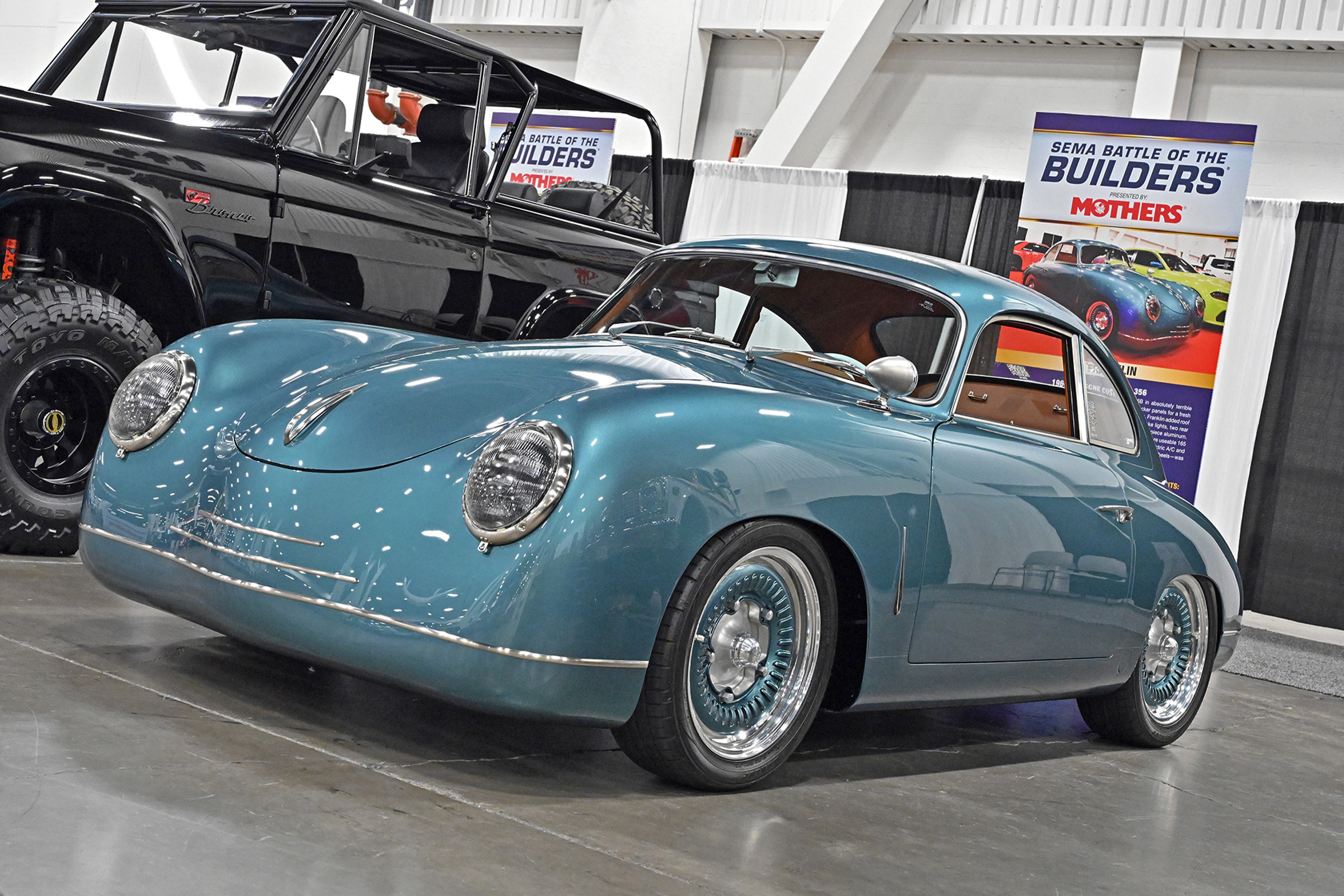 Under the hood, the original engine was modified from 70 hp to 165 hp, featuring Weber 48s and a fan housing tribute to Porsche 917 race cars. The car retains classic cues, including working semaphores, a banjo steering wheel, and a luxe interior, while integrating modern comforts like electric A/C and disc brakes. Every design and fabrication element—except the wheels—was completed in-house, making this 1960 Porsche 356 a perfect marriage of craftsmanship, heritage, and modern performance, and earning it recognition as a Best Builder creation.
