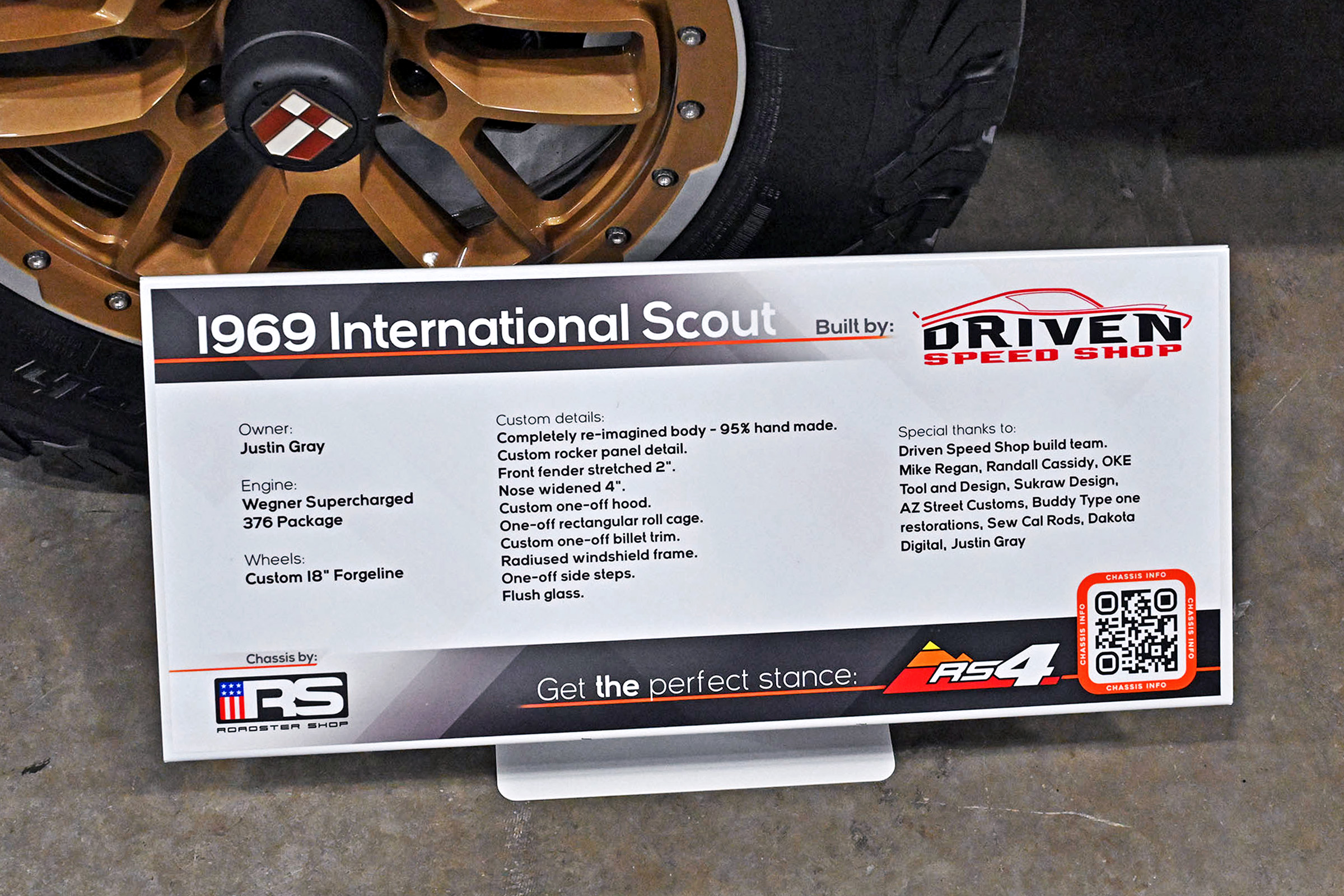 Powering the build is a Wegner Automotive 6.2L LS3 V8 with a 2.9L Whipple supercharger, delivering over 1,000 horsepower. Precision and detail run through every inch, from handsewn interior components by Sew Cal Rods to custom Forgeline wheels, unique branding by Miles McDermott, and numerous one-off handcrafted features. With more than 7,500 labor hours, a seamless mix of handcraftsmanship and advanced machining, and a fully integrated performance platform, the Scout THREE is a show-stopping testament to innovation, power, and automotive artistry, earning its place among the most ambitious builds of the year.