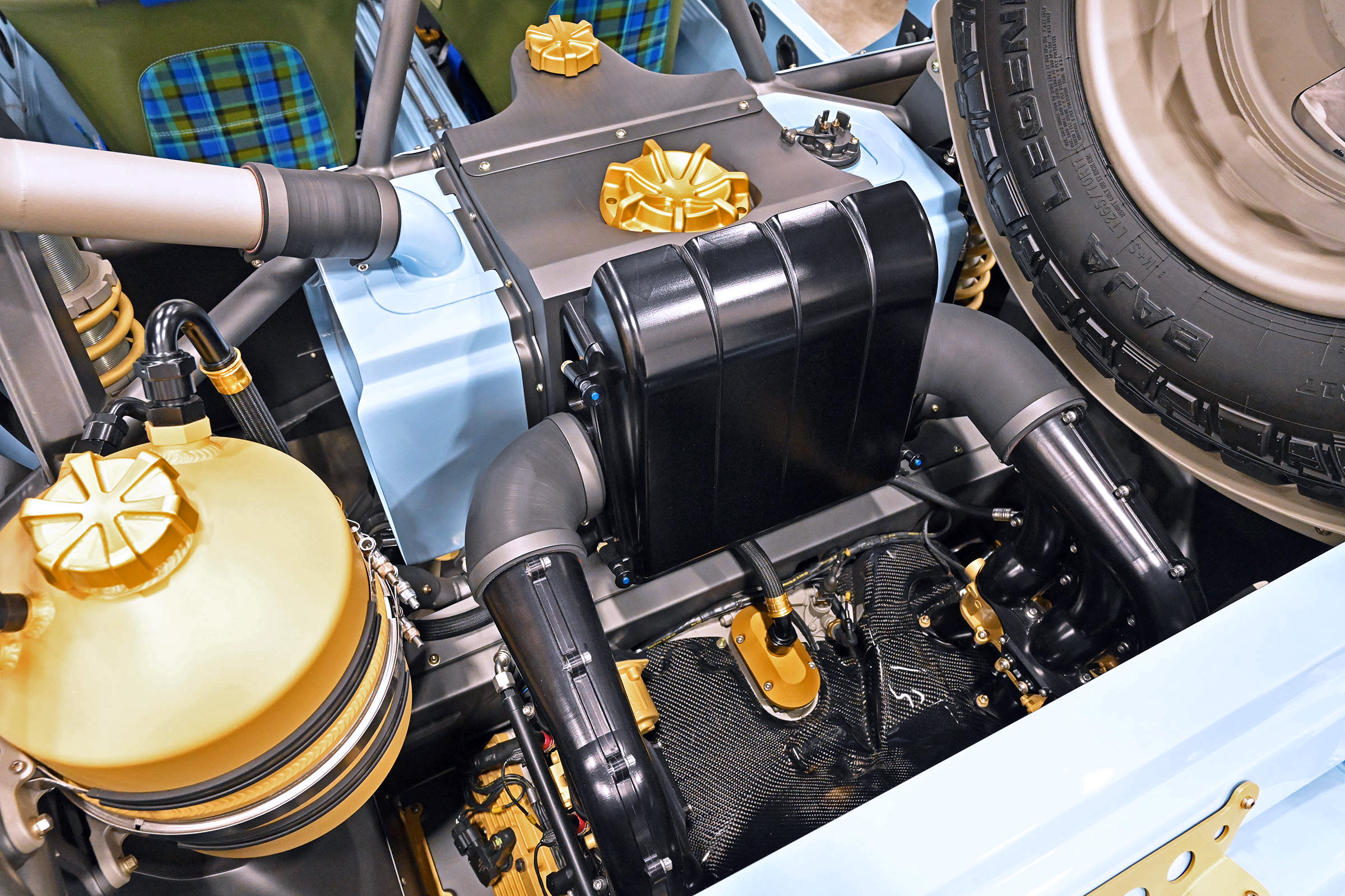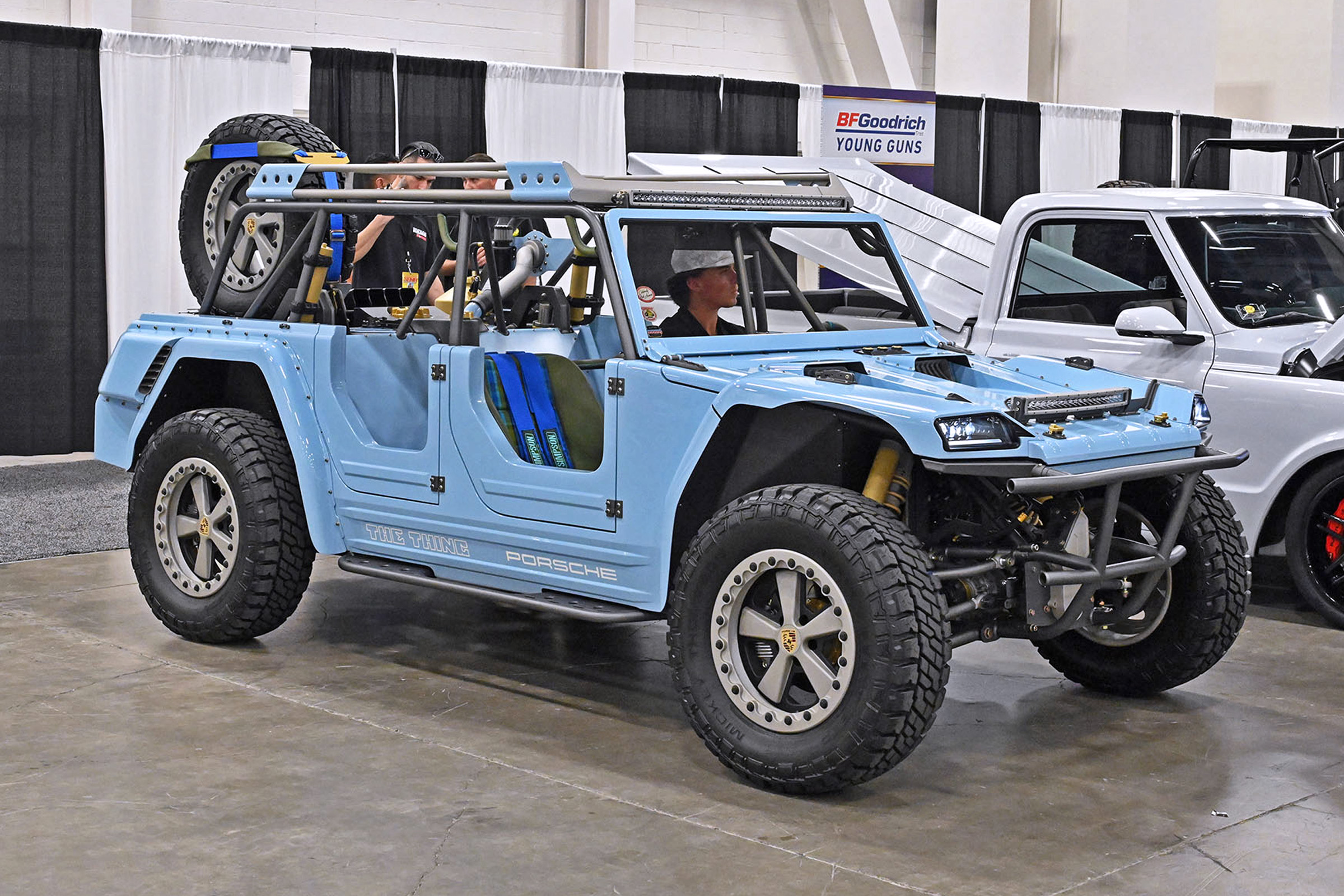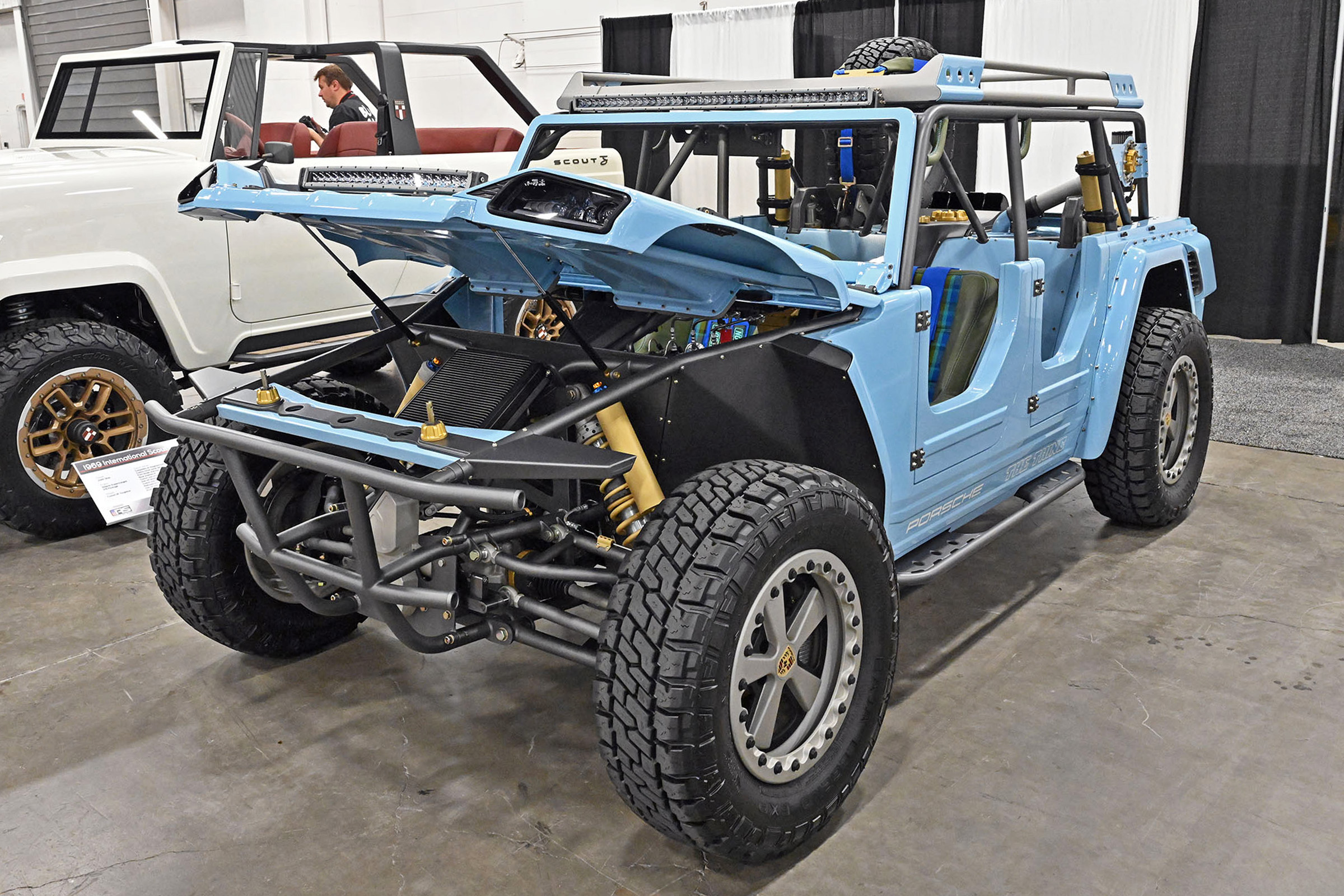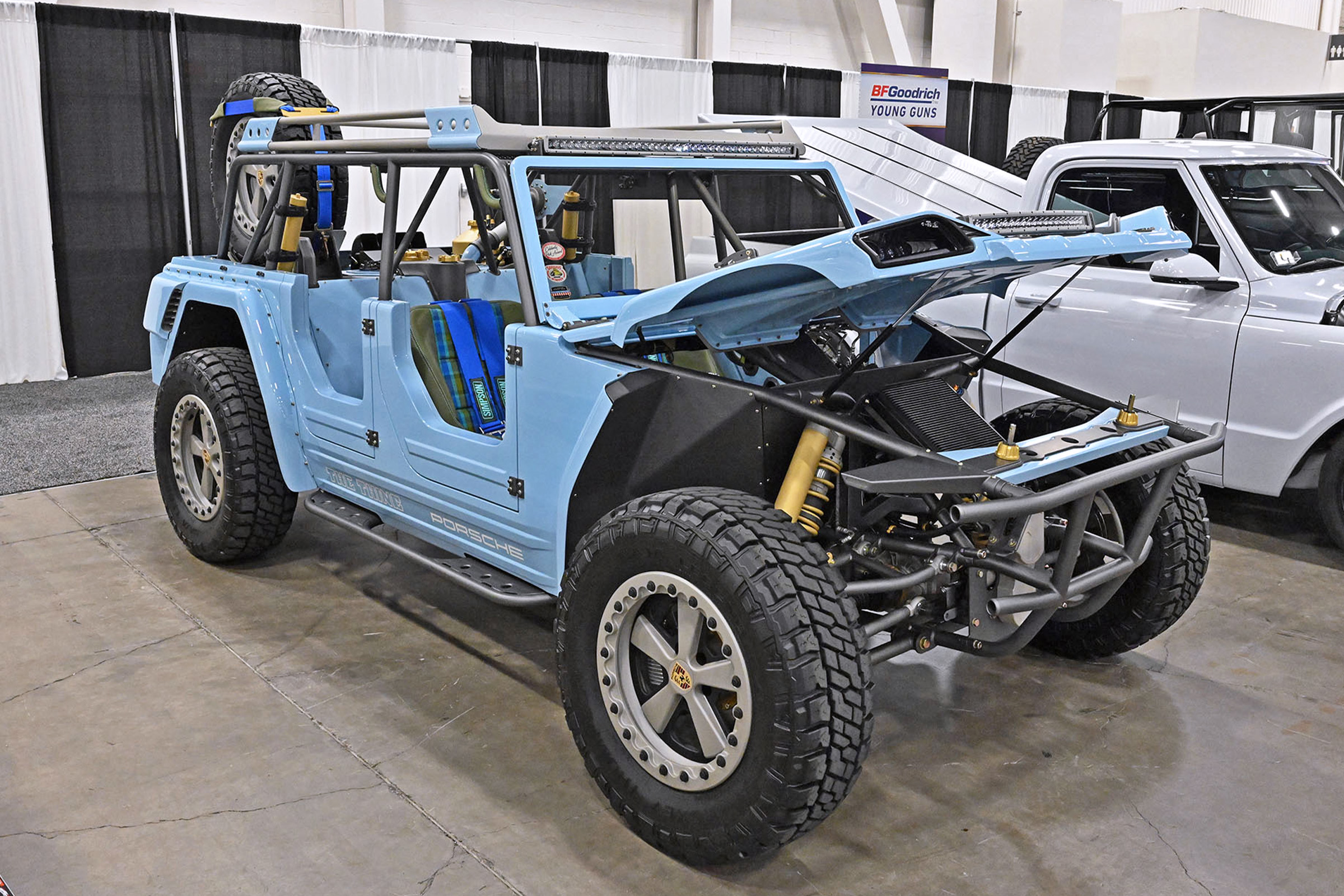 Ron Jones Garage has taken the humble 1973 VW Thing and transformed it into a rally-bred, Paris-Dakar–inspired powerhouse. Starting with nothing more than the original windshield frame, every other panel was hand-formed and CNC-machined onto a one-off chromoly long-travel tube chassis. Fox Factory coilovers give it its aggressive off-road stance, while over 350 machined components bring precision and craftsmanship to every corner of the build. The cabin is finished with a stunning interior by PJ’s Upholstery, blending comfort with Porsche-inspired flair.