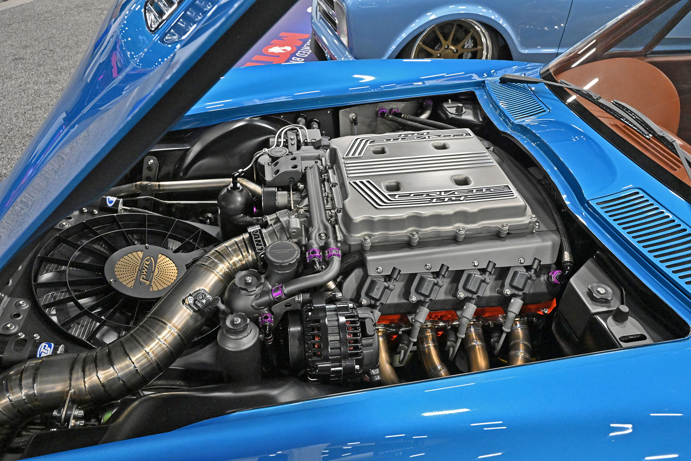Beneath the skin, a modified Art Morrison GT Sport chassis with Independent Rear Suspension, Detroit True-Trac posi, and JRI custom dampers keeps all 650 hp / 650 lb-ft in check, while Forgeline RS6 wheels and Michelin Pilot Sport Cup 2 tires deliver grip and precision. Inside, BUX Customs leather, Dakota Digital HDX instrumentation, and integrated modern electronics bring classic style into the 21st century. Over 10,000 labor hours went into this build, making Serious66 not just a restomod, but a masterpiece of engineering, craftsmanship, and execution—purpose-built to dominate the 2025 SEMA Battle of the Builders.