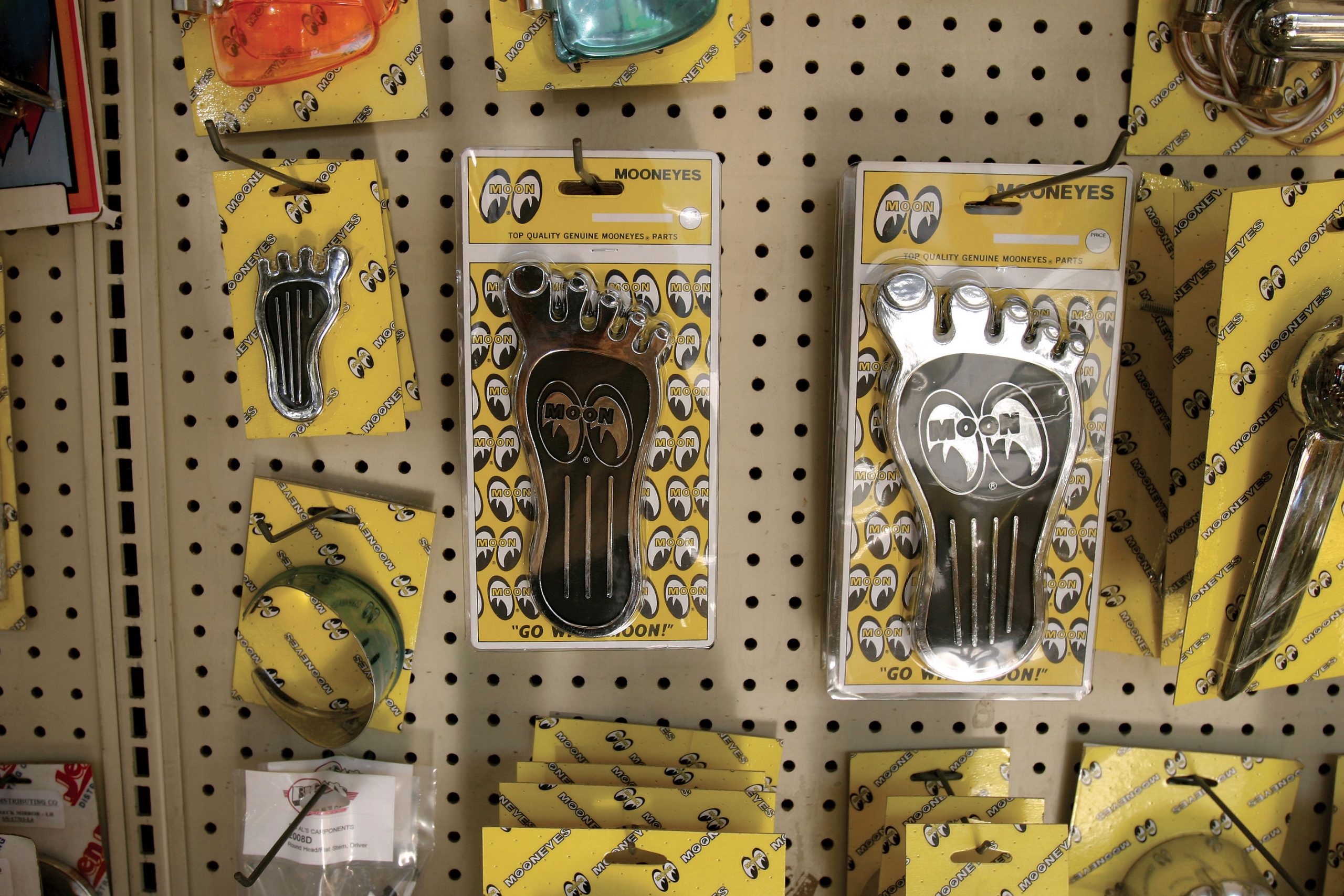 The three-garage-style buildings and the abundant amount of innovation that make up Mooneyes continue to make this place legendary. Just walking around, you can see where Carroll Shelby built his first Cobra. You can also see the two-tone pickup Dean Moon used to drive. And quietly standing in the corner, you can see a life-size fiberglass sculpture of Ed “Big Daddy” Roth keeping his eye on the place, making sure everyone leaves with one of his classic weirdo t-shirts. Back up at the parts counter, you’ll find the next generation of customizers, rodders and builders. So if you haven’t visited the Mooneyes facility, gas up the truck, grab your dad and make a day of it. Resting on the outskirts of Los Angeles just off Interstate 5 in Sante Fe Springs is the bright yellow palace of speed. You can’t miss it! For more information, visit Mooneyes on the web at www.mooneyes.com.