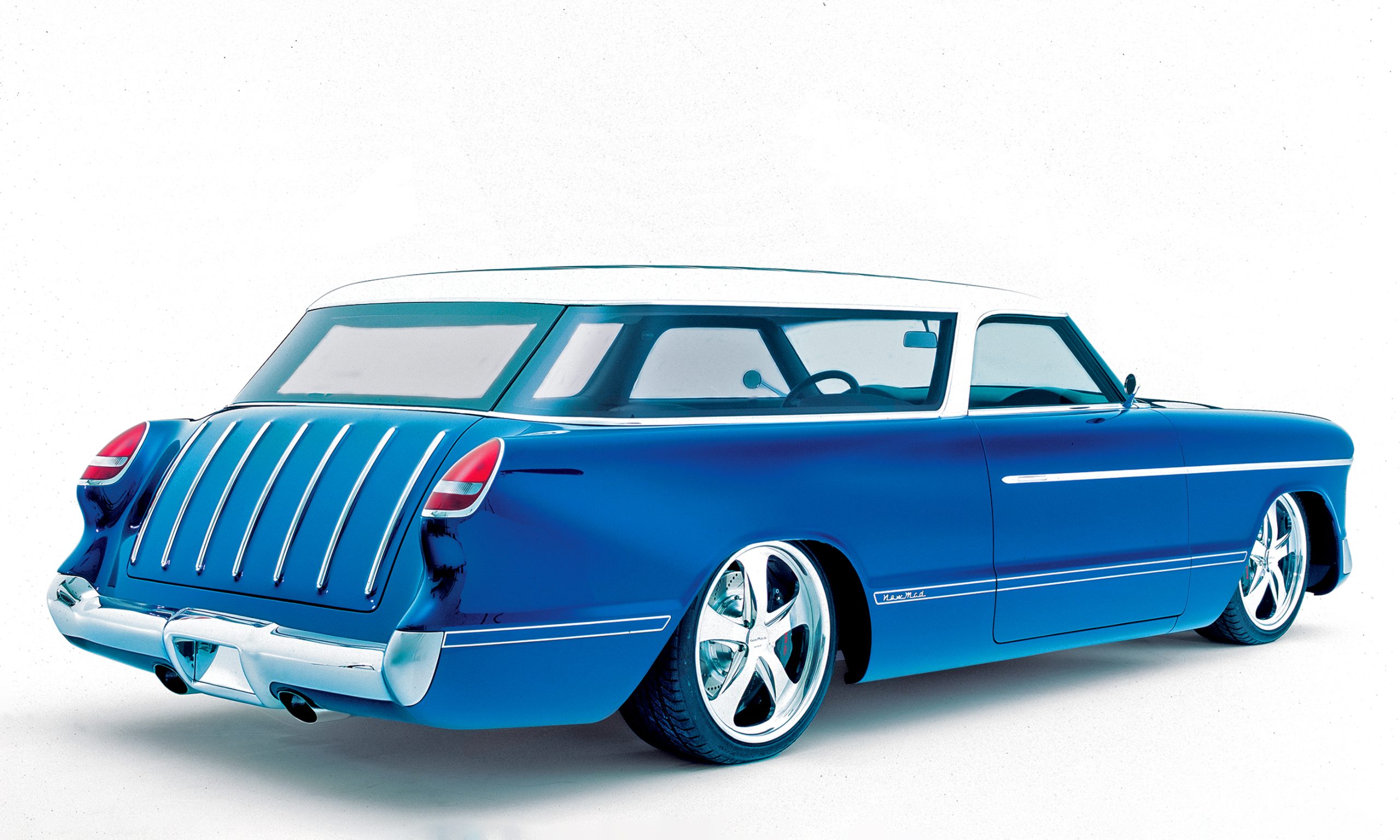 One of the more memorable customs that he created was “Realmad,” a concept car loosely resembling a ’55 Chevy Nomad. It received national attention and ink in many publications. This awe-inspiring car appeared on several calendars and was used as a featured vehicle in the company’s advertising campaign. It is not known if the salmon and black Nomad was the inspiration for this new concept Nomad, and it makes little sense to ask, because NewMad will certainly be one of the premier customs of the year, and perhaps of all time. It will forever go down in history as one of the scratch-built super rods that have made a difference.