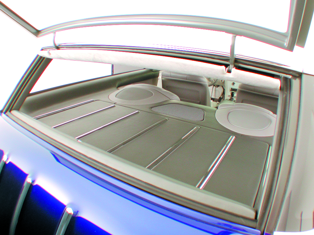 NewMad is filled with all the creature comforts expected today in a top-end 2001 luxury car. They include power door locks, power windows, power lift gate, power four-wheel disc brakes, power steering, cruise control, tilt steering column, tinted glass, air-ride suspension, Vintage Air climate control, remote-opening rear hatch and power seats. The sound system is impressive, too, with a Clarion CRX9255 head, CDC635 six-disc CD changer, Sound Stream speakers and a Rubicon 550-watt 5/3-channel amp.