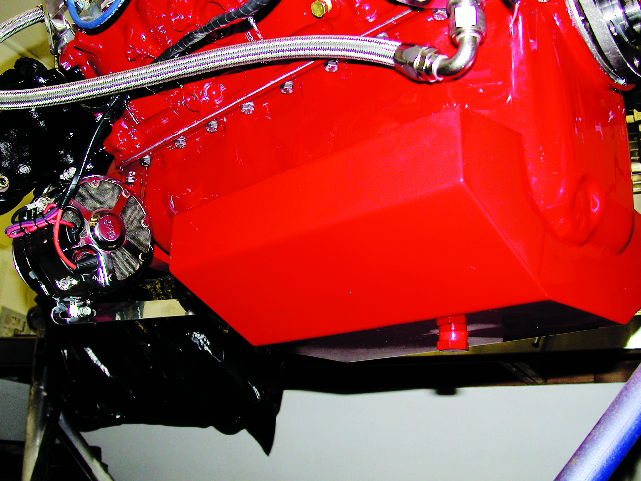 Oil control is supplied by a Paul Pfaff 14-quart offshore pan and a Melling high-volume blueprinted oil pump. Spark is provided by an MSD 6M-2 and a billet distributor. Autotronic Fuel Injection Advanced Controls provide the management system.