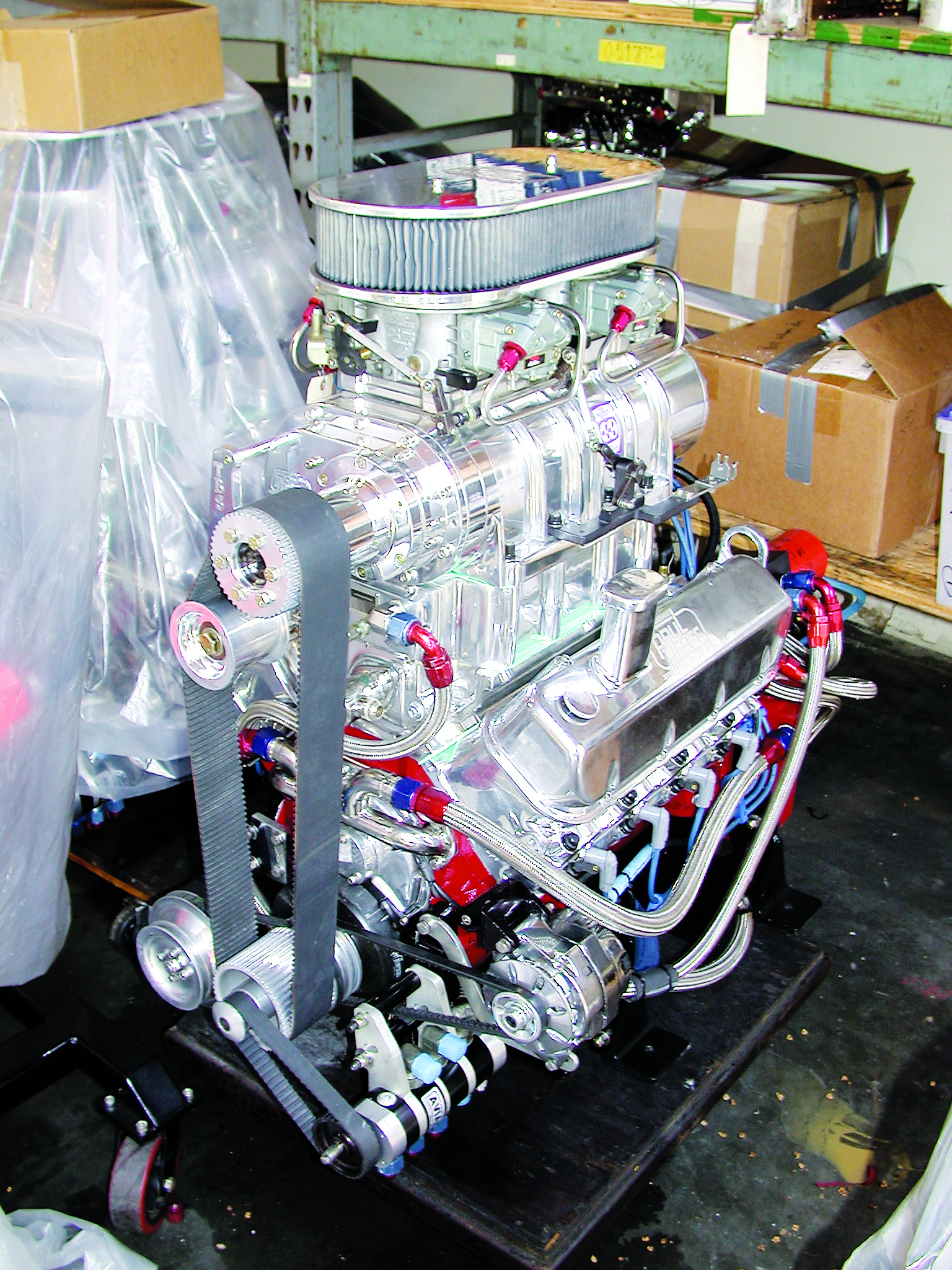 A combination that is starting to take hold is the 850HP EFI using a single 3.3 Whipple supercharger. Built on the same bottom end that produces 1,000 hp in a quad-rotor configuration, the 850 is way overbuilt for the horsepower and therefore does not run on the ragged edge at all. The Pfaff engine starts with a 565ci Dart Bib “M” blueprinted block that has been stress-relieved on Pfaffʼs Meta-Lax machine. This machine vibrates and molecularly restructures the metal on blocks, heads, cranks, rods, valve springs and more. Starting with “seasoned” parts gives you a jump-start on reliability before the engine is even built.