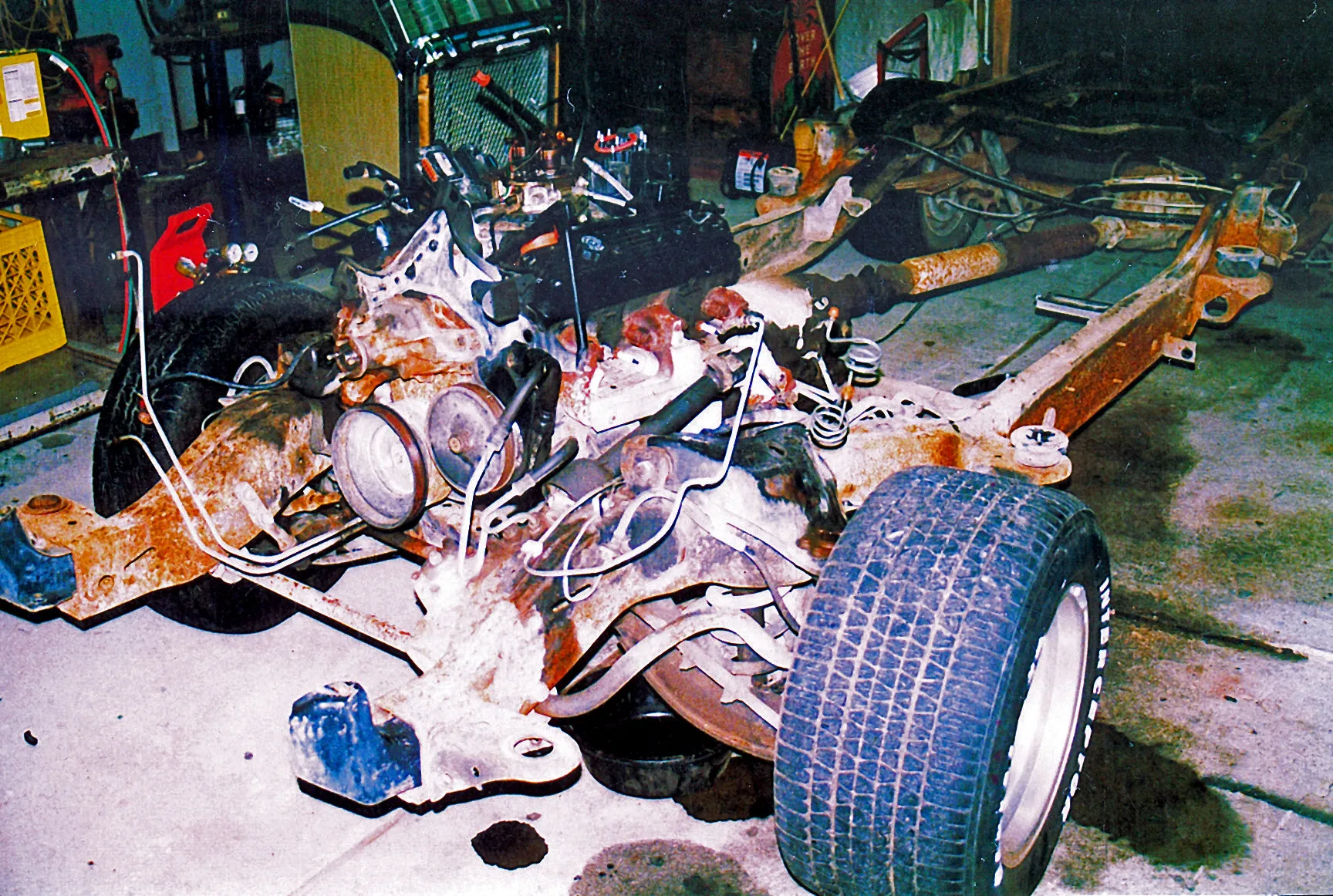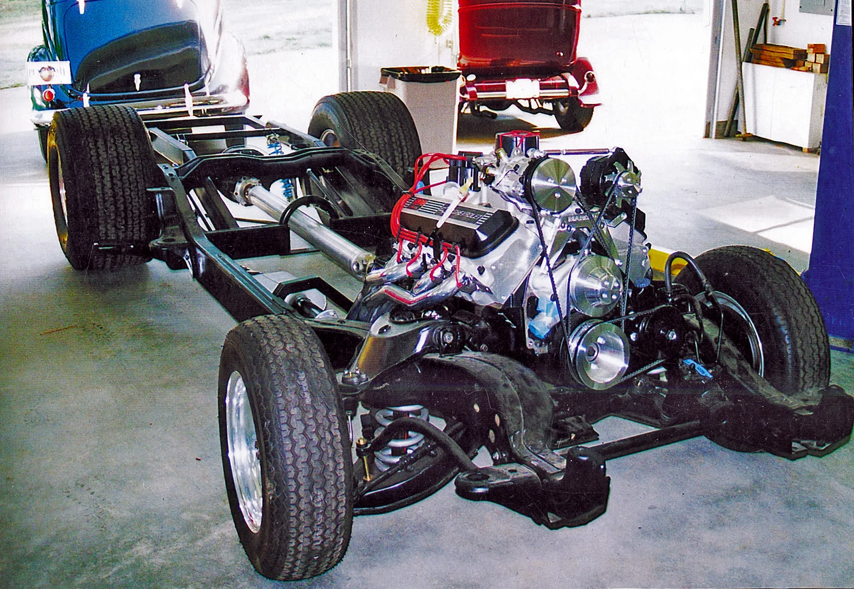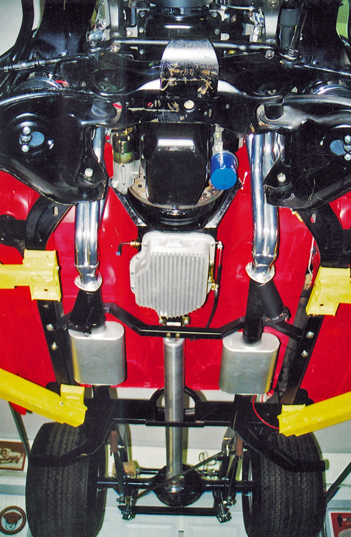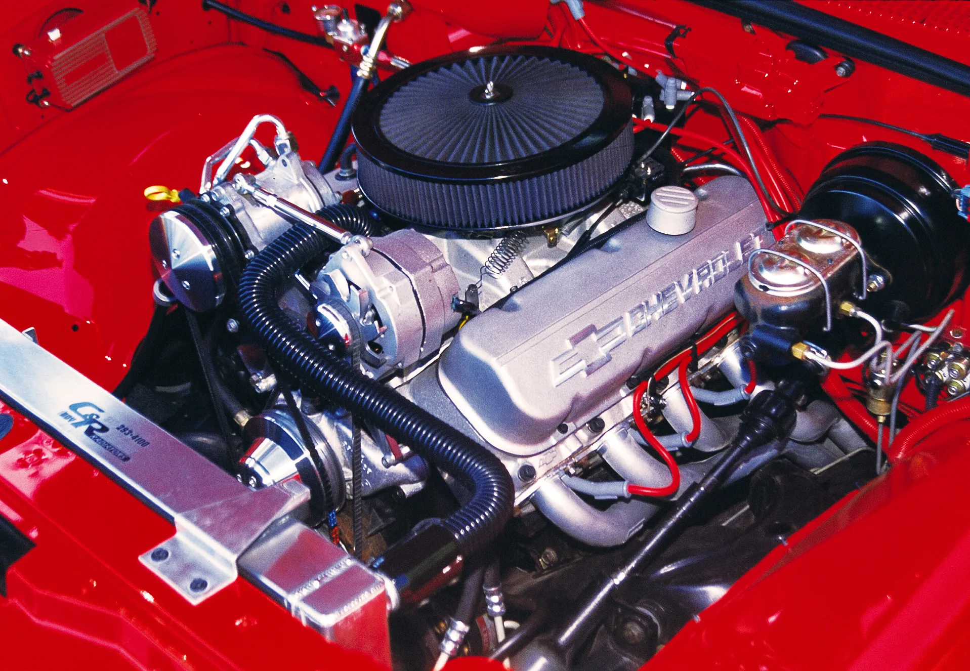 The 502/502 Chevy crate motor received Hedman headers, Alan Grove brackets, March pulleys, a Holley Avenger carb, Energy Suspension mounts, MSD ignition, Cool Flex hoses and a K&N air cleaner. The aluminum valve covers came from Chevy Performance Parts. A C&R Racing aluminum radiator cools the engine. All this was coupled to a Coan Turbo 400 tranny with a Cheetah SCS shifter. To make sure all the power made its way to the rear tires, Tom had Inland Empire build a 4-inch aluminum driveshaft.