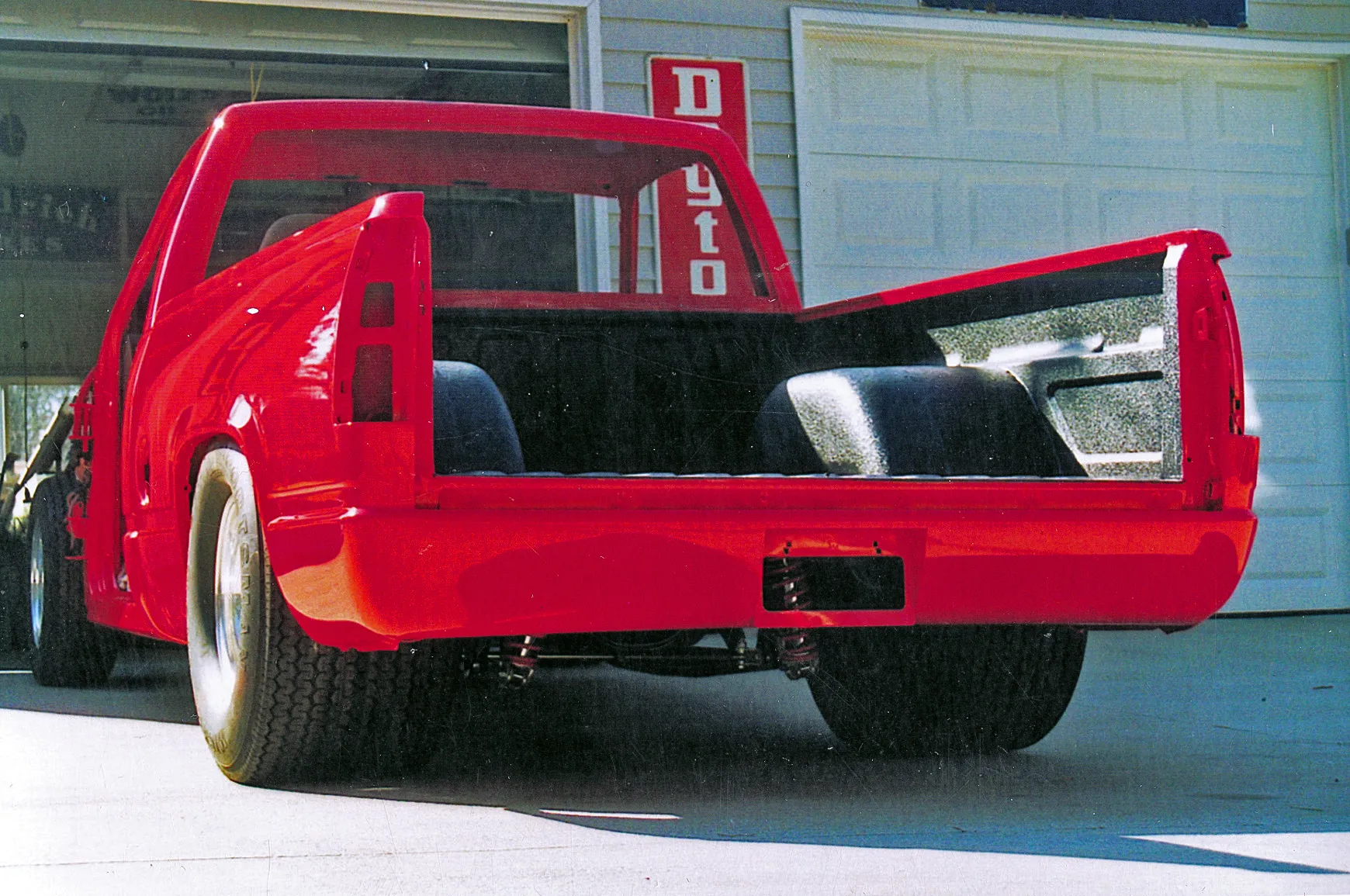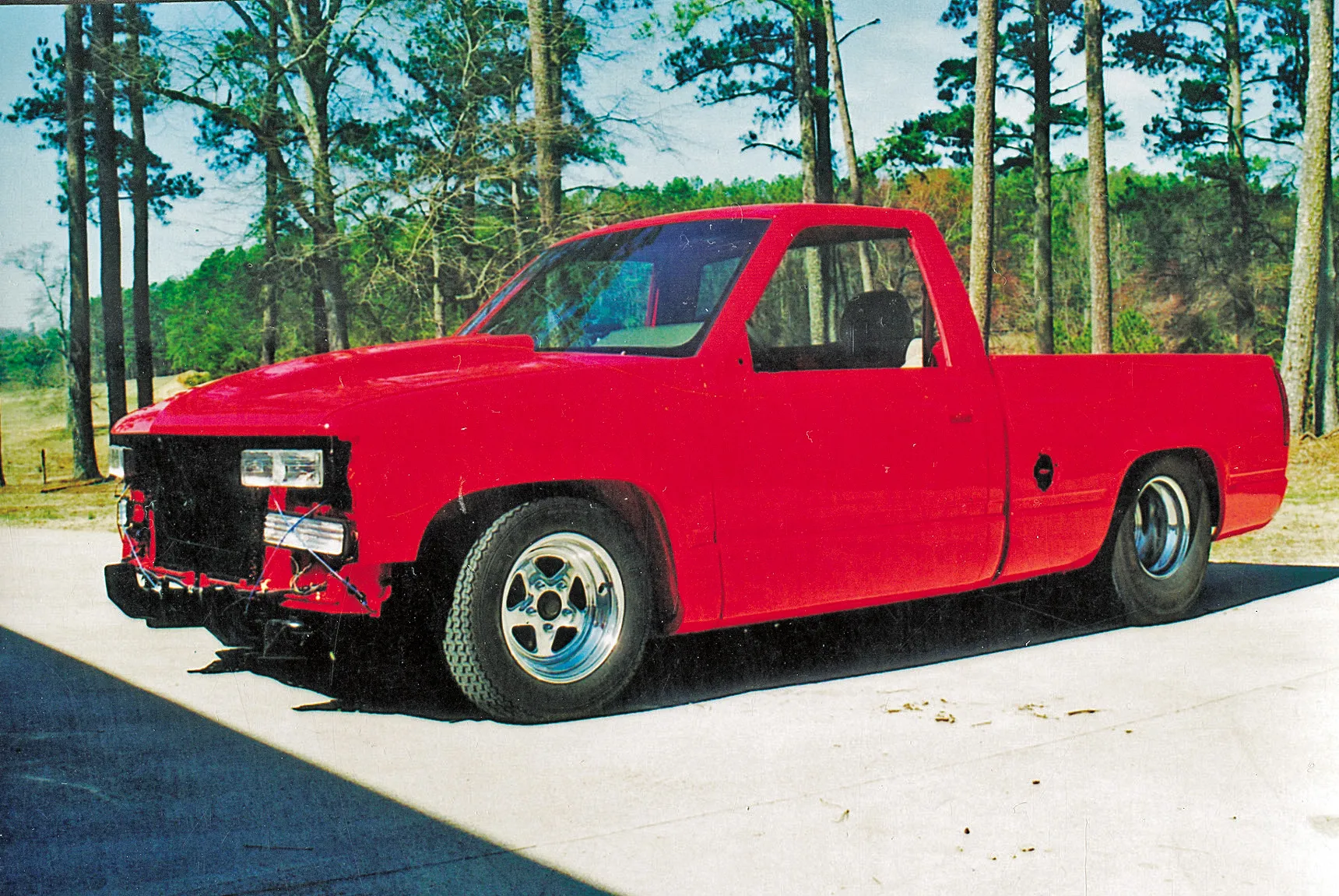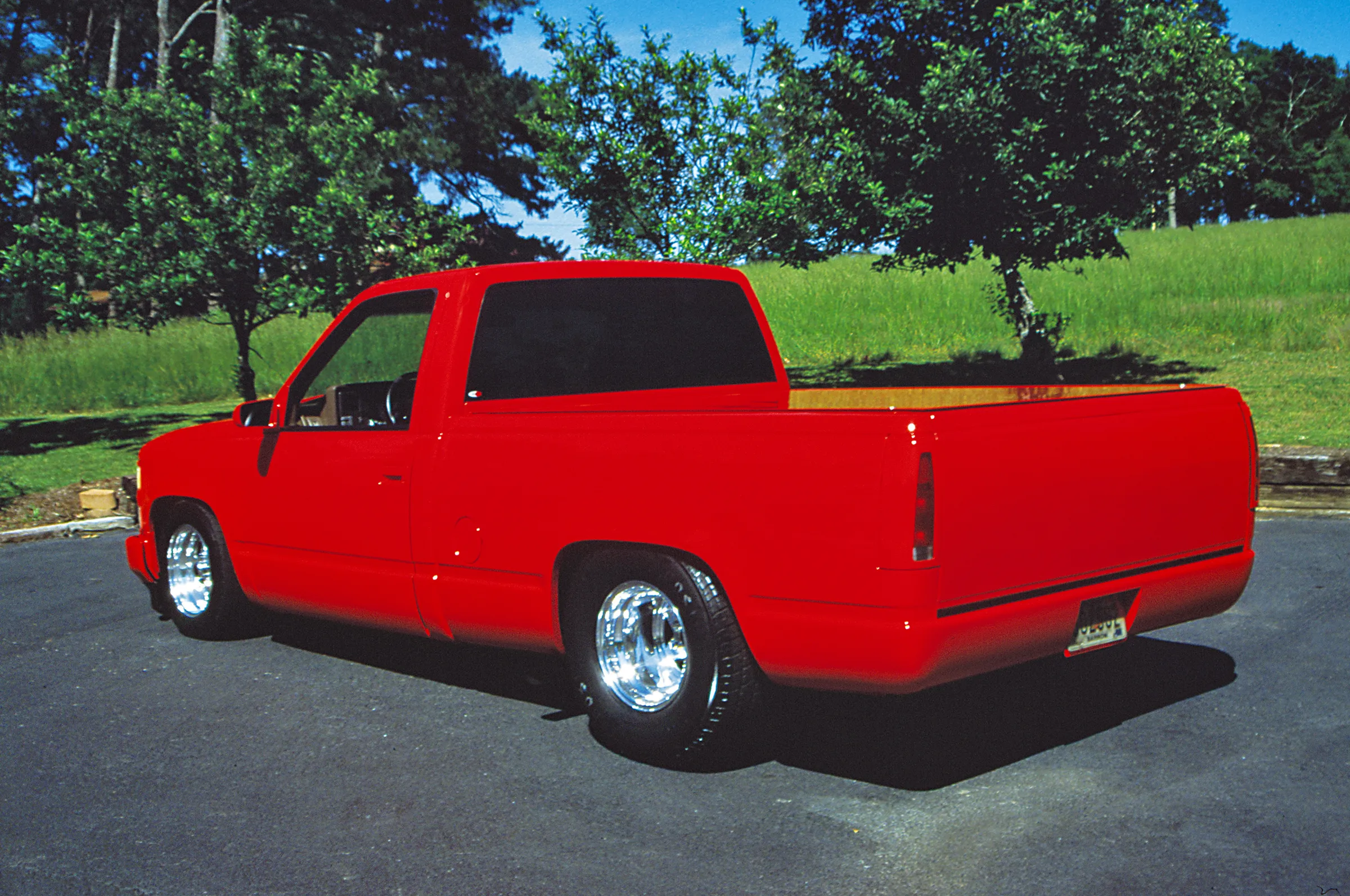 The Longs kept the body modifications to a minimum. All the exterior trim was removed and they added a Goodmark cowl induction hood, rear roll pan and a Checker Products bed cover. A 20-gallon fuel cell was mounted in the bed between the tubbed rear fender wells. Tom and Matt both worked the body smooth before Russell Hardeman applied the Viper Red PPG paint. Keeping the aggressive theme going are Weld Racing Pro Star wheels with BFGoodrich tires up front and Hoosier Radials out back.