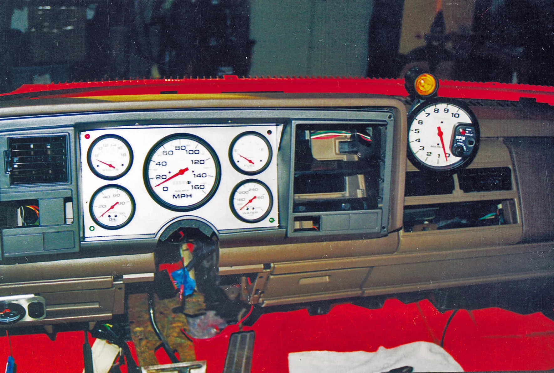 Inside Tom and Matt used late-model Tahoe seats. Prior to installing the Auto Custom Carpets, they applied Dynamat Xtreme insulation and Extremeliner for superior insulation and sound deadening. The air conditioning came from Southern Air and the Auto Meter Phantom gauges were mounted into a custom gauge cluster, along with a dash-mounted tach in full view of the driver. The stock column received a Grant Evolution GT steering wheel. Matt chose a Sony stereo coupled to a Rockford bass amp for radical sounds while riding down the road.