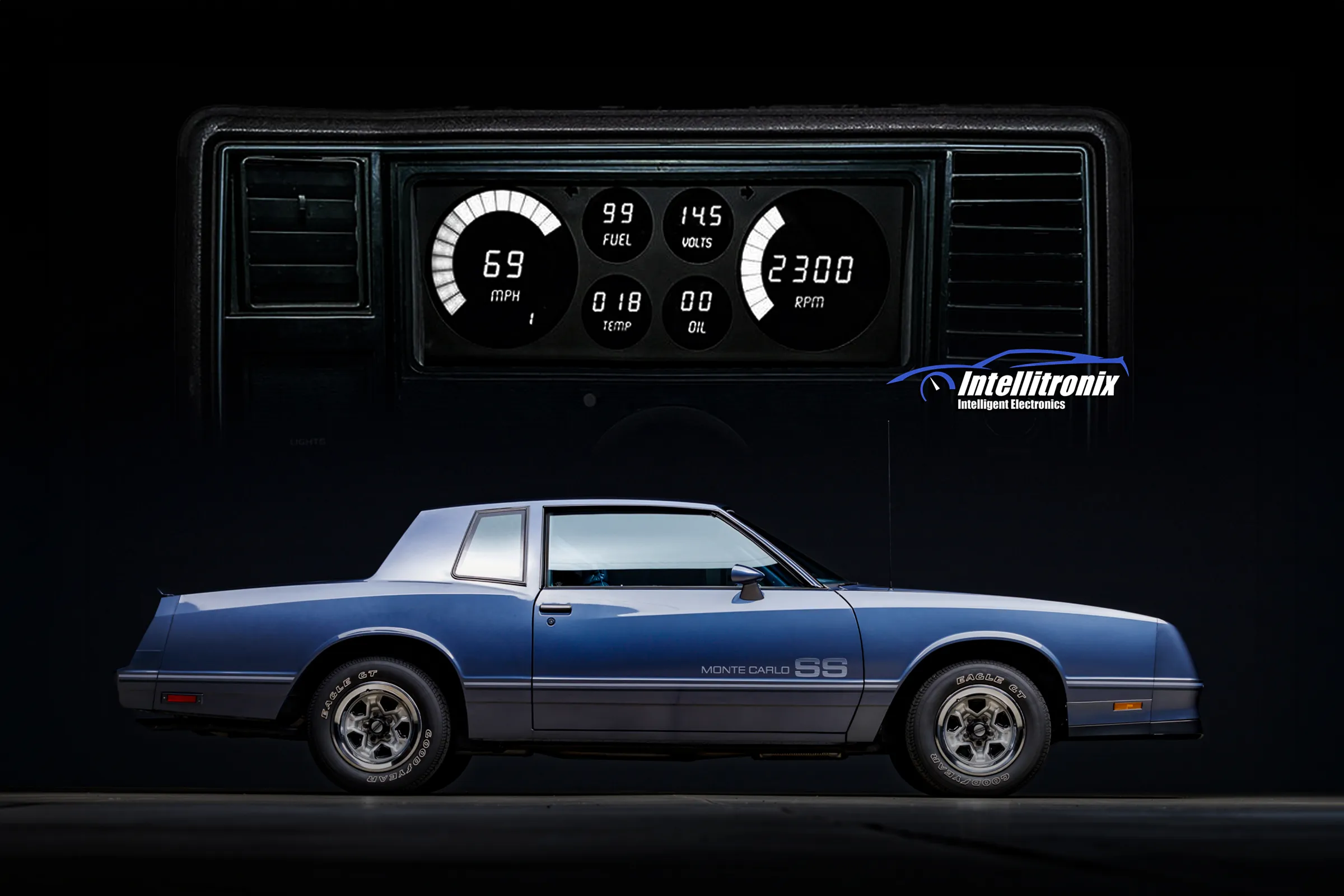 The Intellitronix DP9002 Digital Gauge Cluster brings a fully modernized readout to classic GM A-body interiors without losing factory fitment or function. Designed for 1978–1988 Monte Carlo and El Camino applications, it delivers a high-contrast LED display packed into a direct-fit layout.