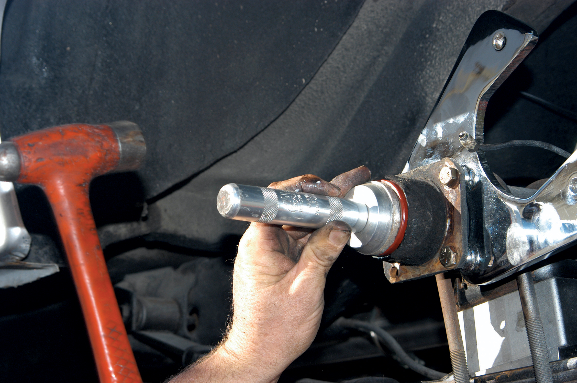 They installed a nut and washer on the other side and then torqued it down with an impact gun and a 9/16-inch socket.