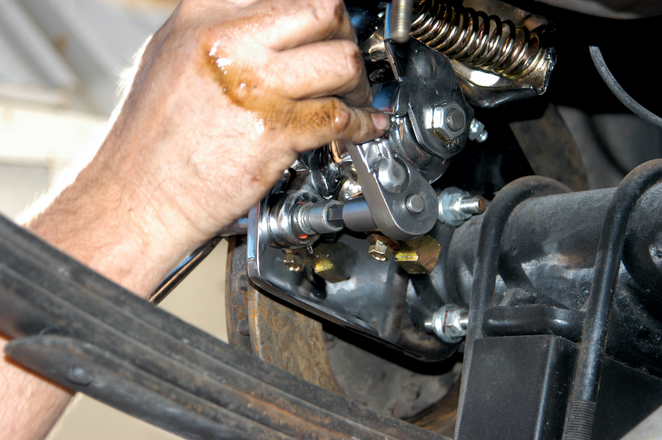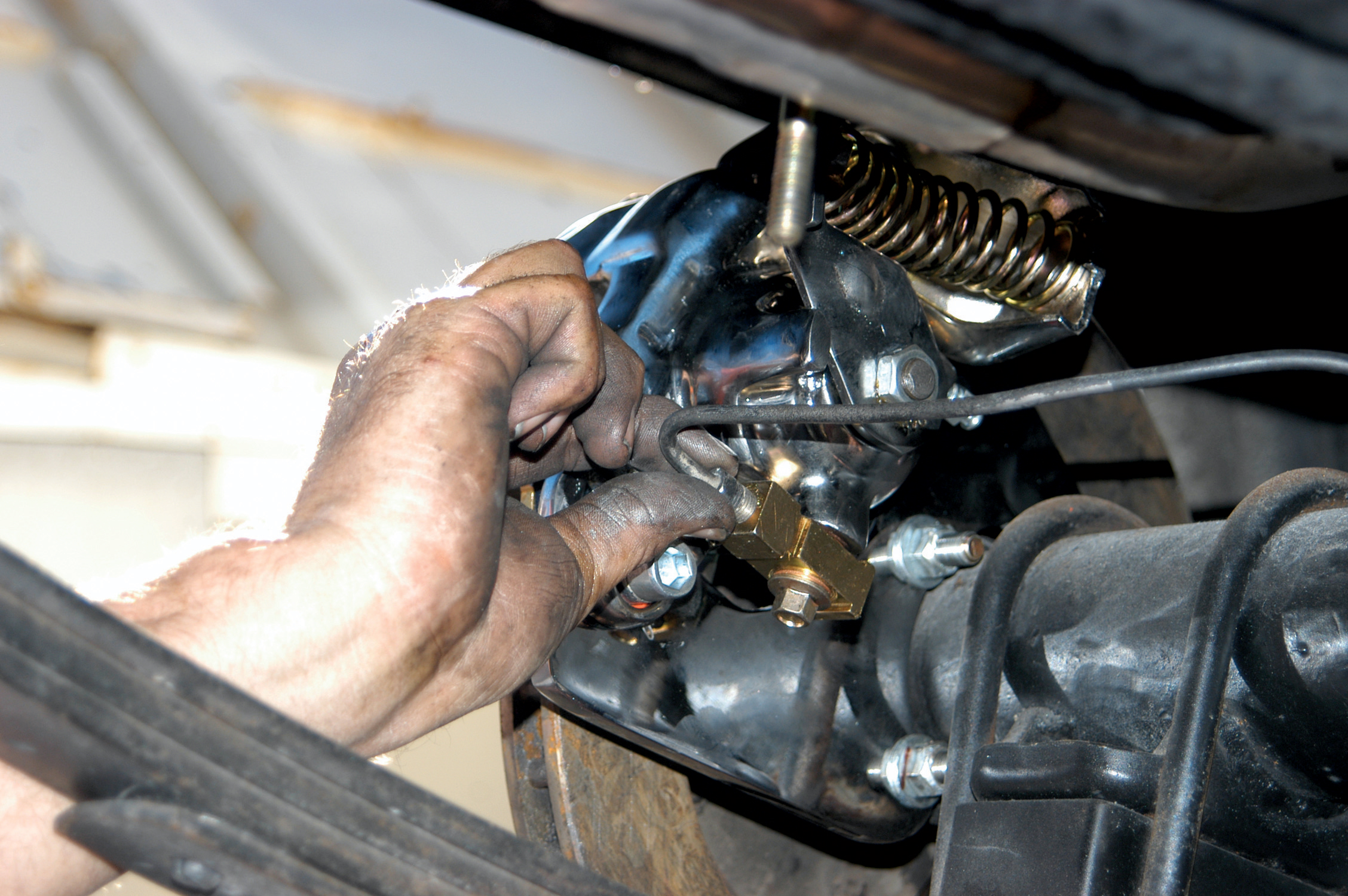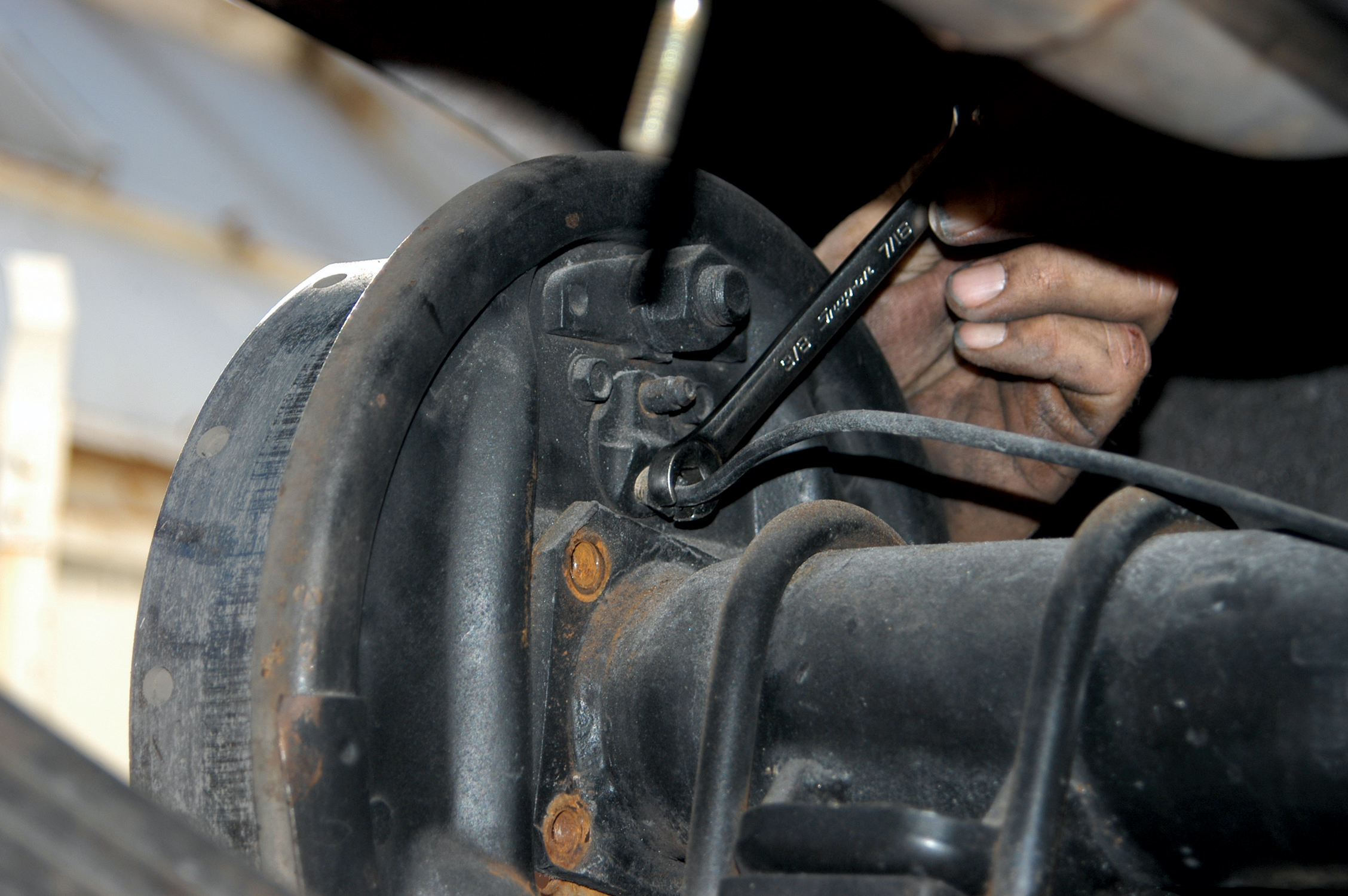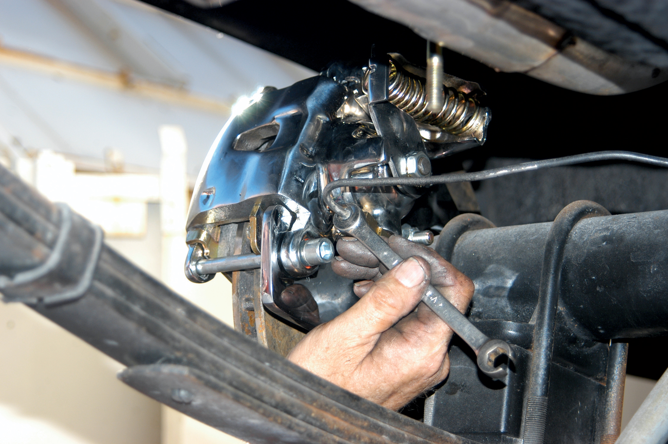 They removed the brake line with a line wrench. The line wrench should be used to avoid stripping the brake-line fitting.