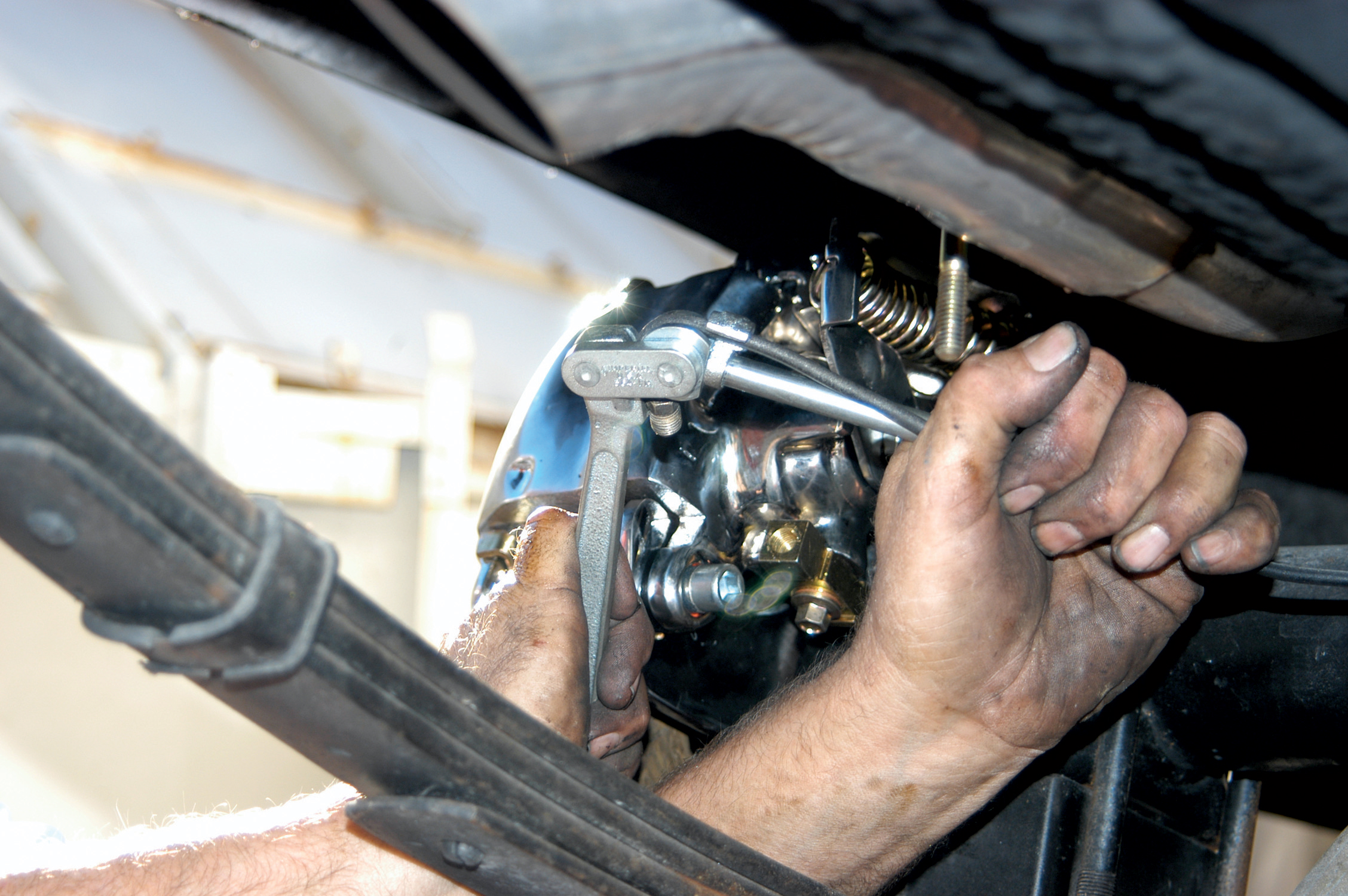 Here the bolts are being tightened with a socket wrench equipped with an Allen-head socket.