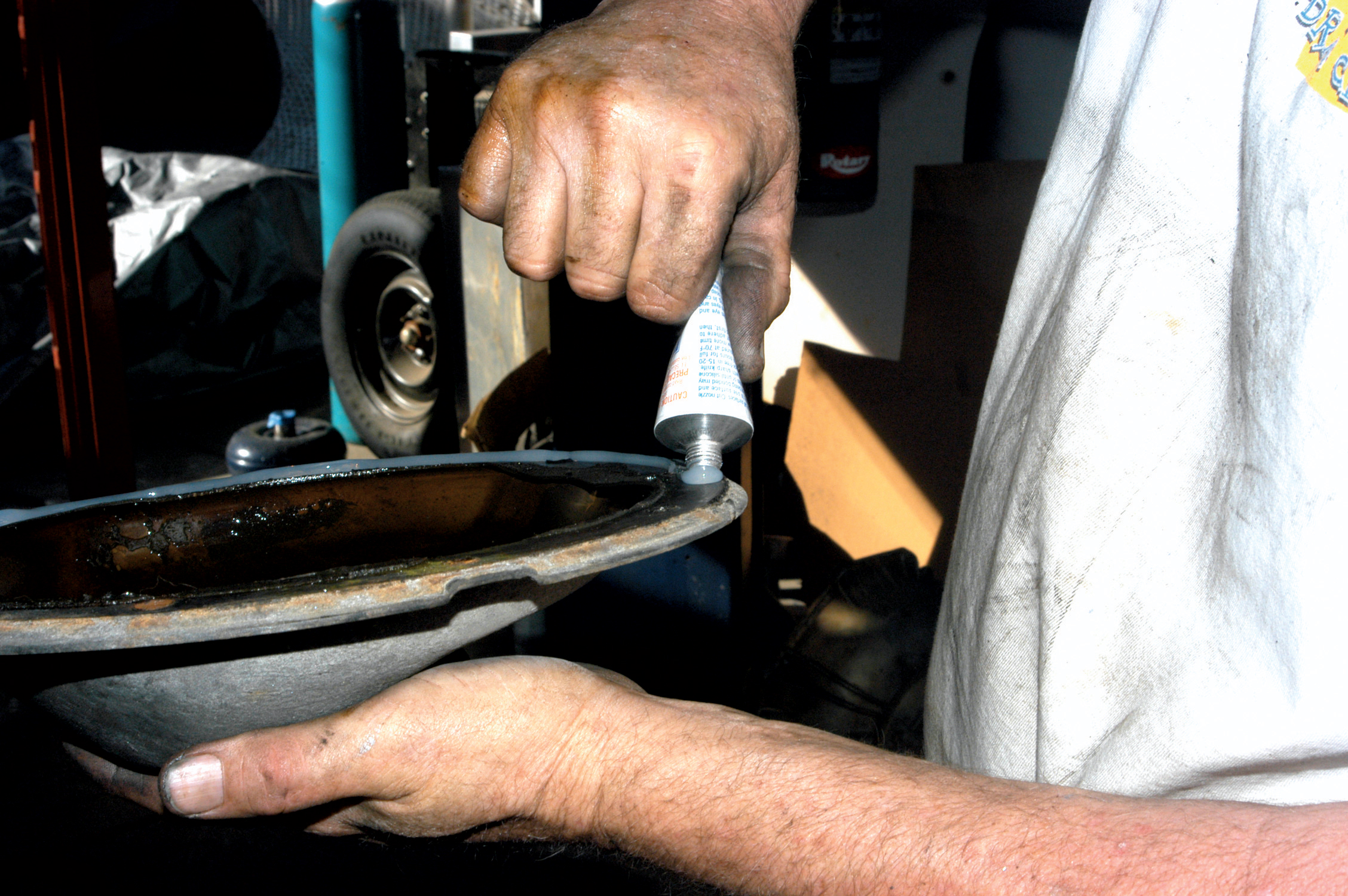 The rearend cover mounting lip was coated with silicone before they installed it.