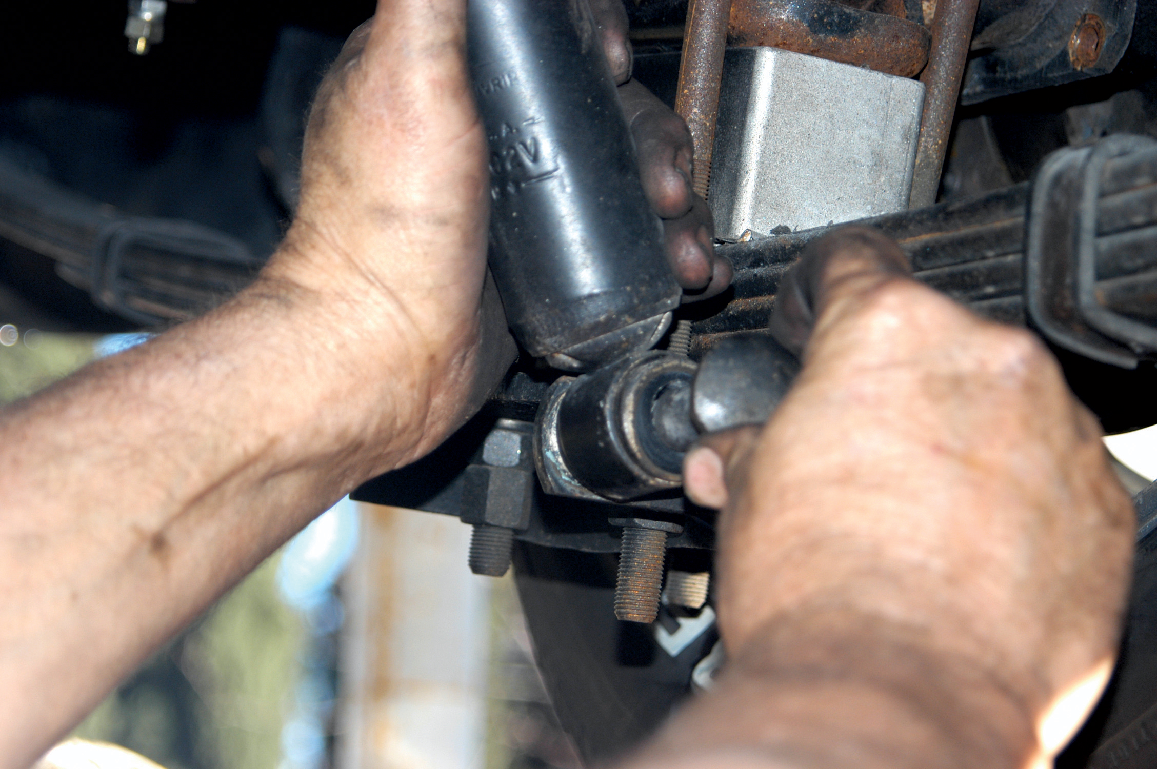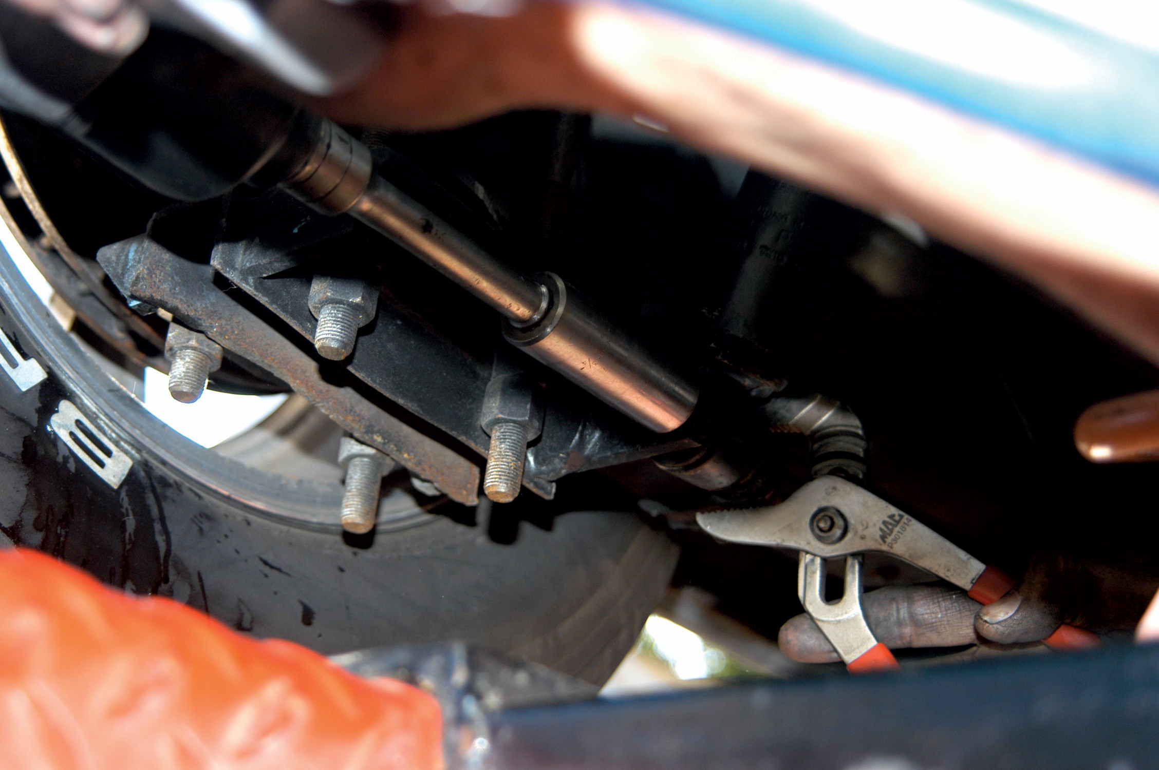 The shocks also had to be connected, so they installed this special shock bolt.