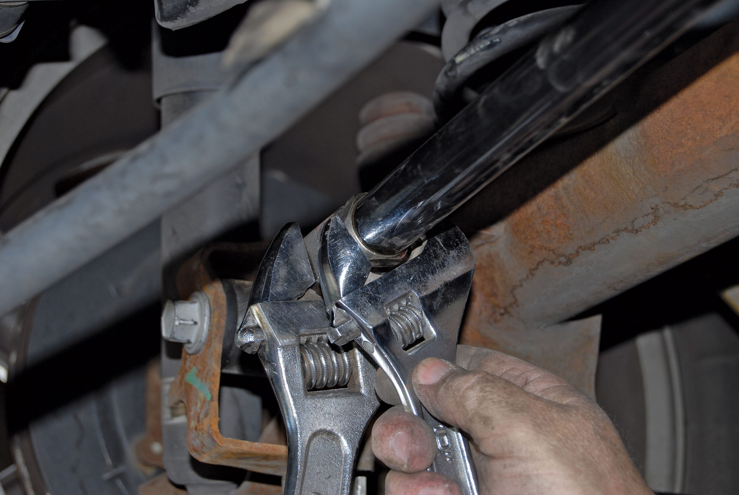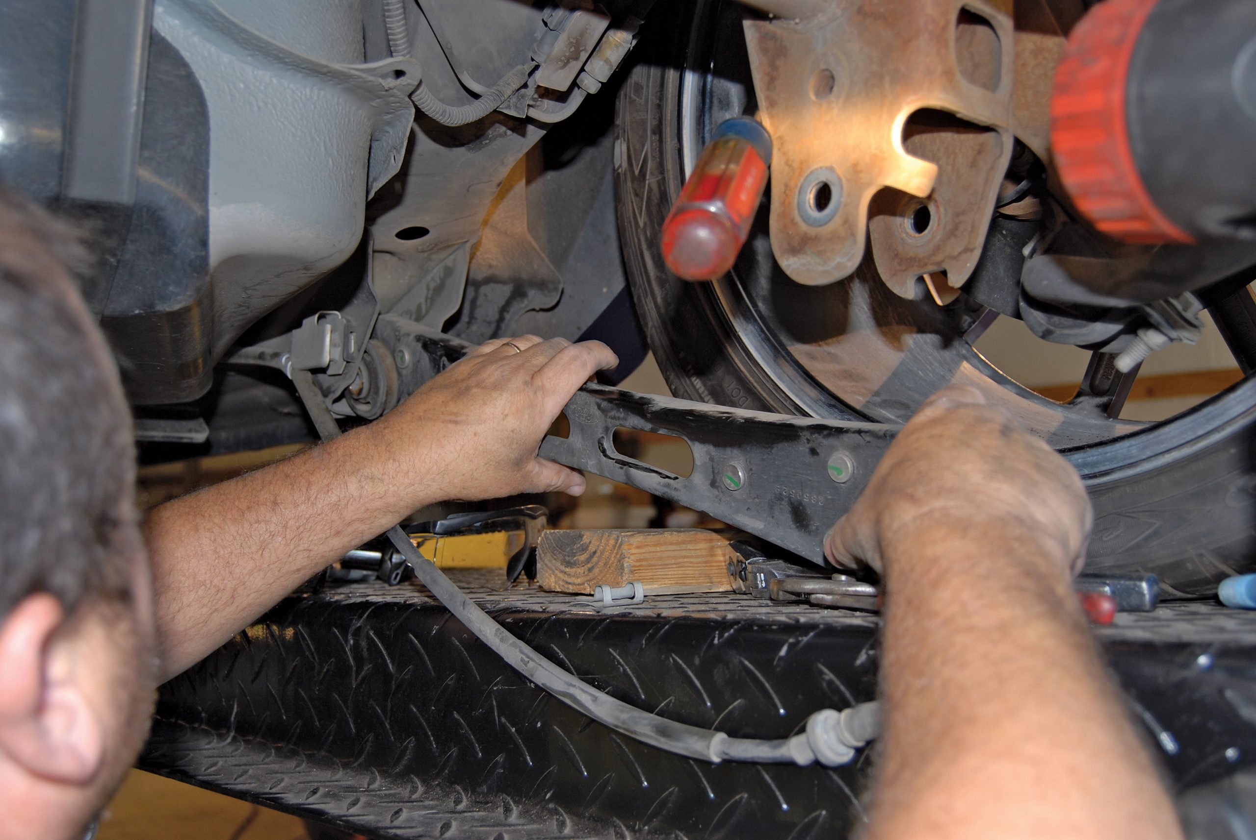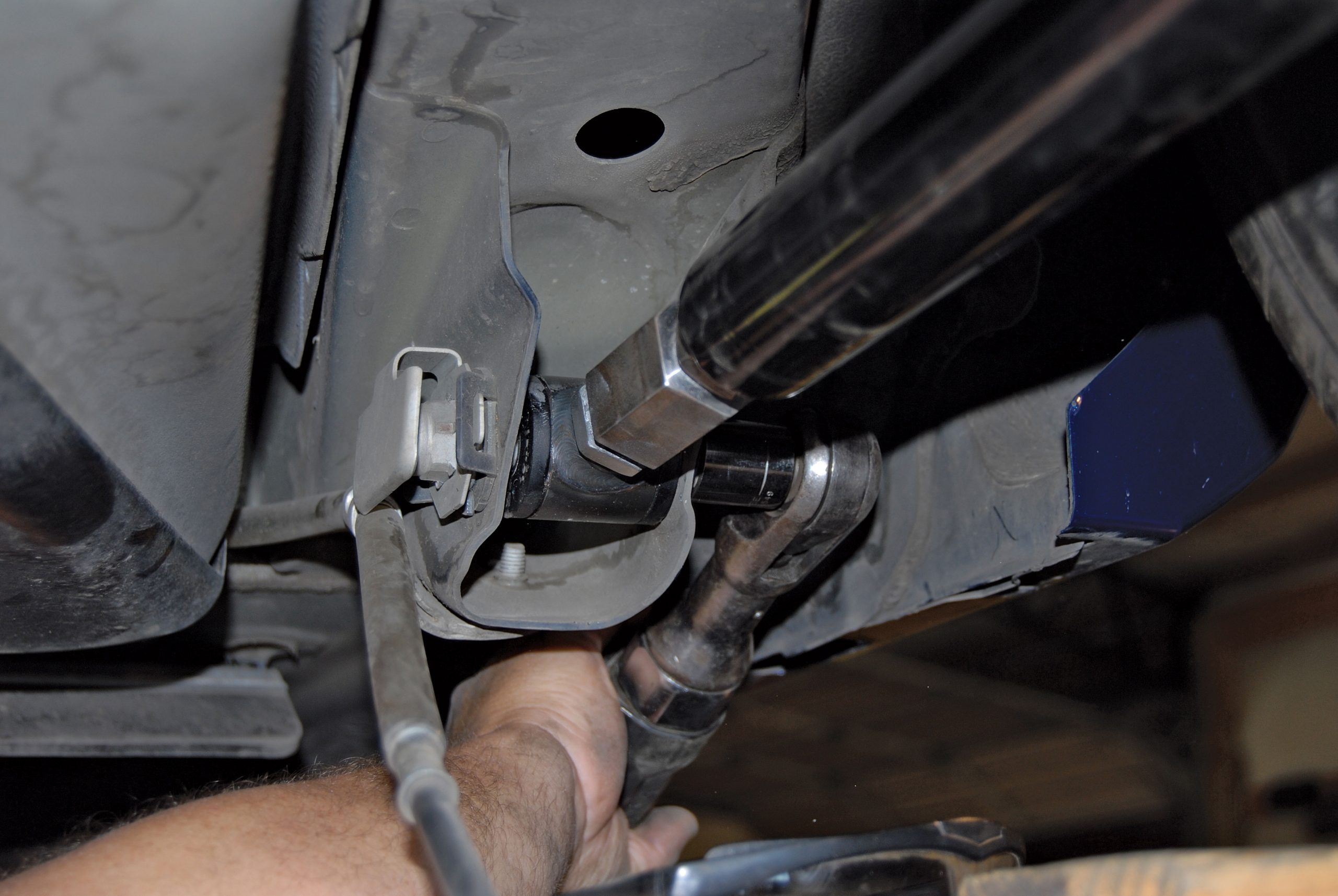 Kamhi responded by sending us a variety of Control Freak products for the S197 platform. These parts included a tubular-steel strut tower brace that installs in under 5 minutes, yet reinforces the Mustang’s body structure to prevent unwanted torsional twist (flex) that will literally pull your tires out of alignment, thus reducing traction. This installation would hardly be exhausting, so the company also sent along an adjustable Panhard bar and matching lower control arms.