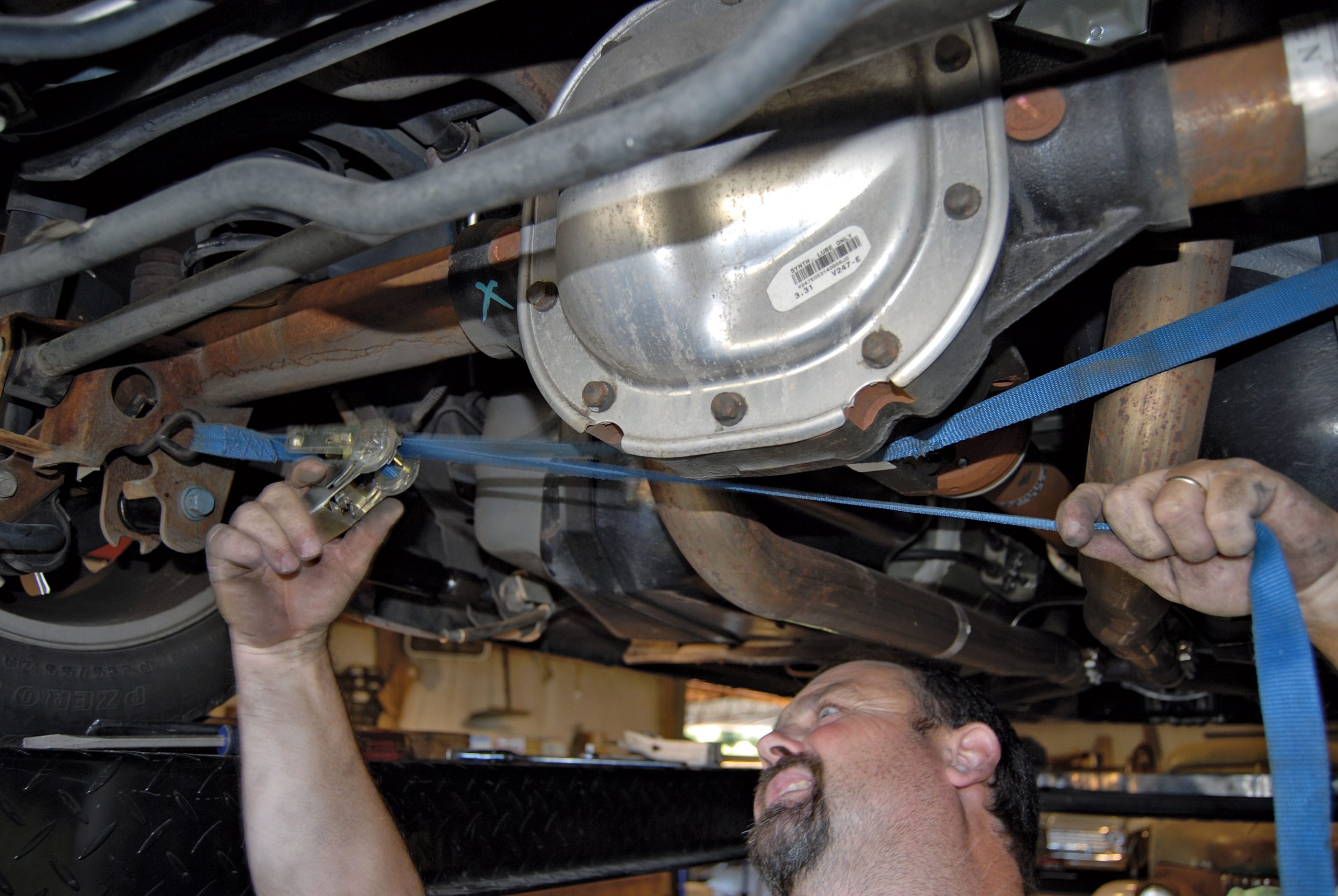The adjustability built into the Panhard bar makes it easy to re-center the axle under a lowered car (lowering springs will pull the axle to one side, underneath the vehicle), while the control arms allow the user to change pinion angle in order to pick up a bit more traction at the track.